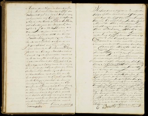 Heden den Negen en twintigsten Julij Achttien Honderd Elf des vramiddags ten twee uren, ver„ scheen voor mij Gerrit ten Sande Adjunct Maire der Stad Amsterdam als Ambtenaar der Burgerlijken Stand, Jan van Lanten oud twee endertig jaren wonende in de Negelanstierstraat N 118 van beroep Bookdrukkersknegt, zynde Vader van de natemeldene overledene, en Jasper Schol oud twee en Zeventig Jaren wonende in De Pansemerdwarg straat, van beroep Boekdrukkers, knegt zijnde Groot vader maternel van de natemelde overledene, dewelke hebben verklaard, det Elisabeth van Santen oud zeven maanden, wonen„ de ten huize van de Eerste Getuige, hunnen dochter en klyndochter zynde geboren te Amsterdam, zynde dochter van de Eerste getuigen, en van Engelina Schol zonder beroep, is overleden den Zeven en twintigsten Iuly des morgens ten Elf wien finde Woning van de boven gemel de haren Vader Na bovengemelde verklaring heb ik deze acte gesteld, en is dezelve door mij na myne voor„ lezing met de Eerste getuige geteekend alzo de twede Getuige verklaarde niet te kunnen schrijven. Gerrit ten Sande Janvanden Een i Heden den Negen en Twintigsten Julij Agttien honderd en Elf des nade middags ten half vier uuren Verscheen door mij Gerrit ten Sande Adjunct Mair der Stad Amsterdam als Ambtenaar van den Burgerlijken stand FredrioHeeber oud Zeven en Veertig Jaaren Woonende in de Lange Keizers dwars straat N.o 4 2 Canton 2 an beroep Oppasser inde vantijn op de Nieuw markt, Zijnde weger van de natemeldene overledene en Cornelis Bresto oud Een en vijftig Jaaren Woonende inde Serries Steeg No 37 van beroep kleere maters knecht, Zijnde baaran en berende van de natemeldene overleden dewelke hebben Verklaard, dat Hen drik Netel en bous oud agten veertig Jaaren Waonende in de Servetsteeg N=o 33 van beroep Gouwerman onden Dans hunnen zwager en gebuug Zijnde getrouwd met Johanna de Rijp, zynde geboren te Amsterdam zijnde zoon van Jan Netelen bos ge„ waand hebbende inde Kleine Kattenburgen srant van Beroep Paruinmaker en van Heintje Joolemans gewoond hebbende en het Besseshuis op den amstel van bewo geene is overledenden vijf en twintigsten dezer de Savonds ten half agt uurn in zyne bovengemelde woning, Na boven gemelde verklamy het ik den acte gesteld en is dezelve door mij noar myne voorlezing met de tweede getuuiger getekend/ De claaseerende de Eerste etuigen niet te kunnen schrijven. Gerrit ten Sande 6 Dresto C