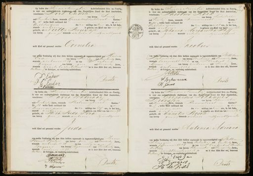 Op heden den Tienden November Achttienhonderd Drie-en-Veertig, is voor ons ondergeteekende Ambtenaar van den Burgerlijken Stand der Stad Amsterdam, verschenen: Dirk Onden van beroep Smid oud zevenentwintig Jaren, wonende Groote Wittenbstraat Kanton 1 No. 8 welke heeft verklaard dat op den Achtsten dezer des na middags ten vier ure, in het huis staande als boven is geboren een Kind van hetvrouwelyk geslacht, ui Neeltje Bruijnje van beroep gun wonende als bovenzijne echtgenooten welk kind aal getaamd worden Cornelia van Welke Verklaring wij deze Akte hebben opgemaakt in tegenwoordigheid van Hendrik Ender van beroep smid oud Drientwintig Jaren, wonende, als boven N 79 en van Pieters kroeve van beroep gen oud teendertig Jaren, wonende Groote kastenbstraat en is deze Akte door ons, benevens denvader de Getuigen, na voorlezing onderteekend. P Ender Deurz ZC Ender B Op heden den Tienden November Achttienhonderd Drie-en-Veertig,n is voor ons ondergeteekende Ambtenaar van den Burgerlijken Stand der Stad Amsterdam, verschenen: Jacodus Koek van beroep suikerbakker oud Veertig Jaren, wonende nieuwmarkt Kanton No. 91, welke heeft verklaard dat op den Achtsten dezer des voor middags ten acht ure, in het huis, staande als boven is geboren een Kind van het mannelyke geslacht, uit Johanna Margaritha Paff van beroep gun wonende als boven zijn echtgenoot welk Kind zal genaand worden Jacobus (van welke Verklaring wij deze Akte hebben opgemaakt in tegenwoordigheid van Welhelmar tikerman van beroep vinkman oud zevendertig Jaren, wonende baangracht N 224. en van Hendrik Girive van beroep als boon oud zestig Jaren, wonende als boven N 223 en is deze Akte door ons, benevens devader de Getuigen, na voorlezing onderteekend. J Kock W Spykerman Deutz H Gerwe Op heden den Sienden November Achttienhonderd Drie-en-Veertig, is voor ons ondergeteekende Ambtenaar van den Burgerlijken Stand der Stad Amsterdam, verschenen: Savid Wagenaar — van beroep Vister oud zesentwinti Jaren, wonende Bataouersstraat Kanton 1 No. 38 welke heeft verklaard dat op den negenden dezer des na middags ten Elf ure, in het huis, staande als boven is geboren een Klnd van het hannelyk geslacht, uit Sara Tuda s izg van beroep gen wonende als boven zijne echtgenoot 0 welk Kind zal genaamd wordenuda van welke Verklaring wij deze Akte hebben opgemaakt in tegenwoordigheid van Jare aruch Borlijn van beroep geen oud vriendertig Jaren wonende als boven N 76 en van Jaan Wagnaar van beroep Tigarinmaker oud vierntwintig Jaren wonende alsboven N 7 en is deze Akte door ons, benevens den Vader de Getuigen, na voorlezing onderteekend. Cotagenaar IB Berlyn Deutz J Vagenaor Op heden den Tienden November Achttienhonderd Drie-en-Veertig, is voor ons ondergeteekende Ambtenaar van den Burgerlijken Stand der Stad Amsterdam, verschenen: Gerrardus Johannes Grlessen van beroep Schoomaker oud zevenenderti Jaren, wonende Rooierstraat Kanton 4 No. 2, welke heeft verklaard dat op den Zevender dezer des na middags ten voer ure, in het huis, staande arbovn is geboren een Kind van het vrouwelyk geslacht, uit Annetje Bosen 1 van beroep gen wonende als boven zijn ichtgenoote welk Kind zal genaamd worden Antonia Adriana van welke Verklaring wij deze Akte hebben opgemaakt in tegenwoordigheid van Willing Llurgers van beroep netselaar oud Eenenvuertig Jaren, wonende pipenmacktNr en van Hendriken Iacobus ditier van beroep schoonmaker oud zevendertig Jaren, wonende Goudsblomstraat N 30 en is deze Akte door ons, benevens den vaderde Getuigen, na voorlezing onderteekend. J. Onsen G W dingers Deutz H de Vries
