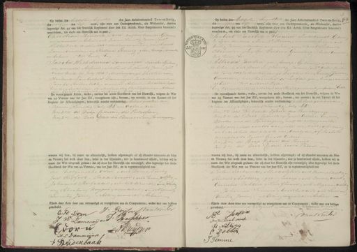 Op heden den Achtsten Augustus des Jaars Achttienhonderd Twee-en-Dertig, desmorgens ten Ees uren, zijn voor ons Ondergeteekende, als Wethouder, daartoe ingevolge Art. 95 van het Stedelijk Reglement door den Ed. Achtb. Heer Burgemeester benoemd: verschenen, ten einde een Huwelijk aan te gaan, Christian Hendrik Dorn, kantoor bediende, Geboren, en wonende, Achier, oud Zes en Twintig Jaren (ged=t Wester Kerk 18 Mei 1806) Meerderjaerge zoom van August Dorm, overleden, en Rosina Berwig. geen beroep, wonende eeAchier. - ter Eene; En. Jacoba Wilhelmina Dammeyer Naarster, Geboren en wonende Alhier,oud Twee en Twintig Jaren (ged.t oude kerk 27 July 1810/ Meerderjarige Dochten van Hendrik Lambertus Dammeyjer, zaakwaarnemen, en Jacoba Bredenbakk, wonende Alhier. - ter andere zyde En konsenteerden de Moeder des Bruidegoms, en ouders der, Bruid porssveel in dezen Echt De voorafgaande Acten, welke, nevens het zesde Hoofdstuk van het Huwelijk, volgens de Wet van 25 Ventose van het Jaar Elf, voorgelezen zijn, bestaan, ten eersten: in een Extract uit het Register der Afkondigingen, behoorlijk zonder verhindering Achier geschied den Negenen Twintig July LL en vyfden dezer ten 2en de Doop bedullen der Verloofden ten 3en de Dood Cedul des Vaders van den Bruidegory. waarna wij hun, bij name en afzonderlijk, hebben afgevraagd: of zij elkander aannamen als Man en Vrouw; het welk, door hun, ieder in het bijzonder, met ja beantwoord zijnde, hebben wij in naam der Wet uitspraak gedaan: dat zij door het Huwelijk zijn vereenigd; alles ingevolge het derde Hoofdstuk der Wet van a0 Ventose, van het Jaar Elf, en in tegenwoordigheid van der Echtgenootes vader, oud Drieen Veertig Jus Reyfort. stokkendrayer, oud Eenen vyftig. Johannes Hoefakker, winkelbediende, oud Vertig en Abraham Kuyper, winkelier, oud Negeenen Twintig Jaren. - Allen wonende Alhier. Zijnde deze Acte door ons vervaardigd en voorgelezen aan de Comparanten, welke met ons hebben geteekend. C: H: Don J: Reitort vanWinter J W. Doemmeijer S: Woefkker V0v10 L: Kuyper H: L Dammeyer ten Achtsten Augustus des Jaars londeid Twee-en-Dertig, des morgens ten Eeg uren, zijn voor ons Ondergeteekende, als Wethouder, daartoe ingevolge Art. 95 van het Stedelijk Reglement door den Ed Achtb. Heer Burgemeester benoemd: verschenen, ten einde een Huwelijk aan te gaan Siebert Jacobsz Blaauw Smidsknecht, Geboren te Zunderdorp Arrond= Hoore, wonende Alhier, oud dertig Jaren, Meerderjarige zoon van Jacob Pietersz 29 Blaauw, en Lysje Siebers Greveling. - beide Overled ten Eene; EnAllieda Jansen, geen beroep, Geboren en wonende eeAchier oud Drie en Twintig Jaren (ged:t Oude kerk 23 Juny 1809) Meerderjarige Dochter van Roelof Jansen Overleden. - en Kornelia de Liefde. geen beroep, wonende alhier. - ten andere zyde. En konsenteerde de Moeder der Bruidpersoneel in dezen Echt De voorafgaande Acten, welke, nevens het zesde Hoofdstuk van het Huwelijk, volgens de Wet van 25 Ventose van: het Jaar Elf, voorgelezen zijn, bestaan, ten eersten: in een Extract uit het Register der Afkondigingen, behoorlijk zonder verhindering cebehier geschied den de twee en Negeenen twintig July LL ten 2=en de Geboorte Cedul des Bruidegoms. ten 3e de Dood beduelle zyner Ouders: En ver klaarde ons de Bruidegom met de ondergemelde getuigen onder aanbod van eede den dood, ofschoon onbekendheid der plaats van Overlyden of laatste woonplaats zijner Groot Ouders. ten 4en de Doop Redue der Bruid ten 5en de Dood Eedue hoors Vaders: waarna wij hun, bij name en afzonderlijk, hebben afgevraagd: of zij elkander aannamen als Mar en Vrouw; het welk door hun, ieder in het bijzonder, met ja beantwoord zijnde, hebben wij in naam-der Wet uitspraak gedaan: dat zij door het Huwelijk zijn vereenigd; alles ingevolge het derde Hoofdstuk der Wet van 20 Ventose van het Jaar Elf, en in tegenwoordigheid van Pieter Roelvink, Melkslyter, oud zevenendertig Richard Nalting, geen beroep, oud Drieen veertig Cornelis Dobben, Turfheven, oud Negenen veertig en Johannes Temme, broodbakker, oud Twee en Dertig Jaren. — Allen wonende Alhier Zijnde deze Acte door ons vervaardigd en voorgelezen aan de Comparanten, welke met ons hebben geteekend, verklarende de Echtgenoot en Moeder der Echtgenoo te niet te Kannen schryven A Sansen van Wiuter Pieter Pöel vink. R Nolting C Dobber J Temme
