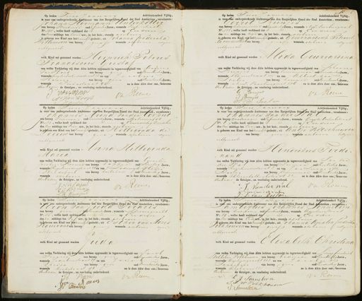 Op heden Twee January Achttienhonderd Vijftig, is Joor ons ondergeteekende, bntienaar van den Burgerijken Aand der Stad Amsterdam, verschenen: Johann Hermann uinterkotter van beroep wirkman oud vijfendertig Jaren, wonende Vinkenstraat No. 705, welke heeft verklaard dat op Een dizer des voor middags ten twee ure, in het huis, staande als boven ie geboren een Kind van het hannclijk geslacht, uit Johanna Federika Willemsen van beroep gun wonende als boven zyn echtgenoote welk Kind zal genaamd worden Heinrich Petrus Franciscus Gustat van welke Verklaring wij deze Akte hebben opgemaakt in tegenwoordigheid van Andries Jan Hoek van beroep grn oud DrienVeertig Jaren, wonende Cangeleidickidistraat 32 en van Jacobus Hansen van beroep geen oud zeventwintig Jaren, wonende Juiastraat 42 en is deze Akte door ons, behevens den Vader de Getuigen, na voorlezing onderteekend. J WMkN van Reene 6 A: Jan Hoers Op heden Twee January Achttienhonderd Vijftig, is voor ons ondergeteekende Ambtenaar van den Burgerlijken Stand der Stad Amsterdam, verschenen: Serrit Bunjes van beroep timmerman oud zegendertig Jaren, wonende N. Z. Voorburgwal No. 177, welke heeft verklaard dat op Een direg des na middags ten zegen ure, in het huis, staande als boven is geboren een Kind van het bouwelijk geslacht, uit Geurrardina Petronel la van der Hiel van beroepgun wonende abs boven zyn echtgenoote welk hindaal genaand worden Alida Geurrardina van welke Verklaring wij deze Akte hebben opgemaakt in tegenwoordigheid van Johannes Bunjes van beroep timmerman oud zevendertig Jaren, wonende blommstraat 115 en van Albert van Poelen van beroep kruyer oud Drienzeventig Jaren, wonende N.L. Voorburgwal 176 en is deze Akte door ons, benevens den Vader, de Getuigen, na voorlezing onderteekend. G Bunjes va Reeue J Bunges len Op heden Swee January Achttienhonderd Vijftig is voor ons ondergeteekende Aubtenaar van den Burgerlijken Stand der Stad Amsterdam, vetgekenen: Johannes Brend Van den Corput van beroep Voorman oud zevendertig Jaren, wonende Botermakkt No. S1, welke heeft verklaard dat op Eenendertig December des voor middags ten vier ure, in het huis, staande als boven is geboren een kind van het vouwelijk geslacht, uit Hillegonda de Leuw van beroep gun wonende als boven zine echtgenoote. welk Kind zal genaamd worden Anna Hillegonda Maria van welke Verklaring wij deze Akte hebben opgemaakt in tegenwoordigheid van Correlis Jacobus Bosman van beroep tapper oud Dertig Jaren, wonende Regulirsdirstraat 76 en van Lodiwyk Henrd Oerdepoel van beroep kortsier oud Enndertig Jaren, wonende als boven en is deze Akte door ons, benevens den Vader de Getuigen, na voorlezing onderteekend. J A vd Coepus va Reeue CJ Bozman LJH. Weedepoel Op heden TweeJanuary Achtienhonderd Vijttig, is voor ons ondergeteekende Ambtenaar van den Burgerlijken Stand der Stad Amsterdam, verschenen: ohannes Van der van beroep ijzerdraayer oud vijfendertig Jaren, wonende Groote Oostenbstraat No. 6welke heeft verklaard dat op ten dezer des voor middags ten Een ure, in het huis, staande als boven is geboren een Kind van het hannelijk geslacht, uit Antje Botschuijver van beroep gen wonende als boven zin echtgenoot helk Kind zal genaamd worden Hendrikus Ferdi- nand van welke Verklaring wij deze Akte hebben opgemaakt in tegenwoordigheid van Jan Jan der Wat van beroep zeeman oud zesnzestig Jaren, wonende Reguliersdirstraat 2 en van Jan Lucas van Rossen van beroep timmerman oud zevenveertig Jaren wonende kleirckattenbstraat 22 en is deze Akte door ons, benovens den Vader de Getuigen, na voorlezing onderteekend. va Reenn J Van der Wal Jan Landerwal J: van ossen Op heden Jwee January Achttienhonderd Vijftig, is joor ons ondergeteekende Ambtenaar van den Burgerlijken Stand der Stad Amsterdam, verschenen: Aron Van Luda Ferares van beroep grn oud vierendertig Jaren, wonende Schrozengracht No. 35, welke heeft verklaard dat op ten dezer des na middags ten vif ure, in het huis, staande als boven Bgeboren een Kind van dehannslijkgeslacht, uit tsther van Mozes Aguevand van beroep geen wonende als boven zijne echtgenoot welk Kind zal genaamd worden Euida van welke Verklaring wij deze Akte hebben opgemaakt in tegenwoordigheid van Jacob Firancs van beroep gen oud twinendertig Jaren, wonende Jadenbriestraat 89 en van Jaco Cheiva van beroep gen oud Drientwintig Jaren wonende Kerkstraat 98 en is deze Akte door ons, benevens den Vader de Getuigen, na voorlezing onderteekend. H: Viard Va Reeu Kouris PJ Verwee Op heden Swee January Achttienhonderd Vijftig, is voor ons ondergeteekende Kmstenaar van den Busgerlijken Stand der Stad Aasterdam, verschenen: amberius Johannes Jonnevorn van beroep kuiker oud zeventwinti Jaren, wonende Anjlursstraat No. 89, welke heeft verklaard dat op Een diaer des voor middags ten Een ure, in het huis, staande als boven As geboren een Kind van het vrouwelijk geslacht, uit Johanna Amalia frederikar Vorkhousen van beroep gen wonende als boven zyne echtgenoot welk Kind zal genaamd worden Elisabeth Christina van welke Verklaring wij deze Akte hebben opgemaakt in tegenwoordigheid van Temogfrudries Welhelm Volkhousen van beroep bediende oud zevenveertig Jaren, wonende Anpliersgracht 113 en van Jacobus Jonaiboog van beroep gen oud zesndertig Jaren, 2 wonende Als boven 135 en is deze Akte door ons, bouerens den vader de Getuigen, na voorlezing onderteekend. va Reinen „ L J Sonneborn S H W Polkhousen I: Sonneborn