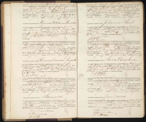 Op heden zesentwintig september Achttienhonderd Vier-en-Vidtig is voor ons (ondergeteekende Ambtenaar van den Burgerlijken Stand der Stad Amsterdam, verschenen Johannes de t lerk van beroep opperman oud drieendertig Jaren, wonende tiennstraat heften Aauct N0 No 17, welke heeft verklaard, dat op Vijfentwintig dezer des na middags ten drie ure, in het huis, staande als boven(is geboren een kind van het vrouwelijke geslacht, uit Wyhanda de Vlerk. van beroep geen wonende als boven: zyn Echtgenoot welk kind ae getaand worden Wijnanda Wilhelmina Christina van welke Verklaring wij deze Akte hebben opgemaakt in tegenwoordigheid van Gerrit Kwak van beroep sjouwer oud veertig Jaren, wonende als boven 17. en van Willem van Ree van beroep sjouwer oud dertig Jaren, wonende Houdsbloemgeracht 99. 108. en is deze Akte hoor ons, benevens den vader en Een de Betuigen, na voorlezing onderteekend. verklarende de twee getuigen niette kunnen schryven ohe de Henk Ni9 J HSZ Op heden Zes en twintig September is voor oud ondergeteekende Ateraar van den Burgerijken Stand der Stad Amsterdam, verschenen: Jean Pauli van Goudoever van beroep werkman oud achttendertig Jaren wonende Porte prinsengracht Burr W, No. 706, welke hecht verklaard dat t op vierentwintig dezer des namiddags ten vijf ure, in het huis, staande als brven 4s geboren een Kind van het mannelyke geslacht, uit Berendina Eshuis van beroep geen wonende als boven: zyne Echtgenoot welk Kind zal genaamd worden Johannes Paul. van welke verklaring wij Aeze Akte hebben opgemaakt in tegenwoordigheid van Josephus Scholze, van beroep schilder oud zesendertig Jaren, wonende bethamenderstraat, en van Pieter Hendricus sapper van beroep smid oud dertig Jaren wonendekoomsloot. en is deze Akte voor ons, benevens den Vaderen de Getuigen, na voorlezing onderteekend. oudoesen J:Jeo E Topper Op heden Zeventig September Achttienhonderd Vier-en-Vitig is voor ons ondergeteekende Aabtenaar van den Burgerlijken Stand der Stad Amsterdam, verschenen: Gustav Cart Mulder van beroep lopenmaker oud achtendertig Jaren, wonende nieuwendijk, Buurt L. No. 293 welke heeft verklaard dat op vijfentwintig dezer des voormiddags ten Een ure, in het huis, staande asboven . is geboren een Kind van het Vrouwelyke geslacht, uit Sara Bernardiena Anthonia Sraskamp van beroep geen wonende als boven: zijne Echtgenoot welk Kind zal genaamd worden termina Francina Augustu van welke Verklaring wij deze Akte hebben opgemaakt in tegenwoordigheid van Casper Dulleman van beroep varbier oud vierendertig Jaren, wonende haringpakkerijL 268, en van Hendrik Laucenp Sluytert van beroep billard maker oud negenentwintig Jaren, wonende nieuwendyk, L. 384. en is deze Akte door ons, benevens den vader en de Getuigen, na voorlezing onderteekend. G.b. Melddr C: Dulleman Plig J1 y toe Coll: Gerth Op heden Zesentwintig September Achtienhonderd Vier-en-Vijftig is voor ons ondergeteekende Ambtenaar van den Burgerlijken Stand der Stad Amsterdam, verschenen: an Alle Hotstra van beroep aanswreker oud drieendertig Jaren, wonende Anjelierstraat Buurt OO. No. 358, velke heeft verklaard dat op Vierentwintig dezer des na middags ten vij ure, in het huis, staande als bouu is geboren een kand van het vrouwelyke geslacht, uit Jacoba Mariar de Leeuw van beroep geen wonende als boven zyne Echtgenoot) welk Kind zal genaamd worden Anna Christina van welke Verklaring wij deze Akte hebben opgemaakt in tegenwoordigheid van Adrianus van beroep geen oud zesen zeventig Jaren Bakels wonende dirk V Husseltsterg 11603 en van Andriesvan den Hendel Aan beroep zykhuisknechoud Eenendertig Jaren wonende Keizersgracht. LL. 242. en is deze akte door mis, beneven den Vaderin de Getuigen, na voorlezing onderteekend. J: Ar Hofstra A. Bakels 29 Op heden Zesentwintig sentember Achtienhonderd Vier-en-vijtig is voor ons ondergeteekende Ambtenaar van Aen Burgerijken Stand te Hud Amsterdam, verschenen: imon Ladok Lhilips. van beroep wankelier Jant 9. No. 75, welk heef verklaard dat odenbreestraat oud tweeen veertig jaren, wonende op vijfentwintig dezer des na middags ten vif ure, in het huis, staande als boven is geboren een kind van het mannelijke geslacht, uit Branca Nikkelsburg van beroep geen wonende als boven: zyne Echtgenoot welk Kind zal genaamd worden Mlaurits. van welke Verklaring wij deze Akte hebben opgemaakt in tegenwoordigheid van Leon ardus on beroep geen oud achtenvijftig Jaren, Beukers wonende RozengrachtEl. 102. en van Heinrich walf van beroep geen oud drieenvijftig Jaren, wonendeSaurierstraat U. 641, en is deze Akte door ons, benerens den Vader en de Getuigen, na voorlezing onderteekend. Simm Zadok Philips. Pg L Benkers olft H van den Heu Op heden Zwenentwintig Centember Achttienhonderd Vieren-Vijftig, is voor ons ondergeteekende Ambtenaar van den Burgerlijken Stand der Stad Amsterdam, verschenen: Marten Bremer van beroep konendrager oud acht en twintig Jaren, wonende Sommerstraat. Buurt UU. No. 684., welke heeft verklaard dat op vier entwintig dezer des namiddags ten tien ure, in het huis, staande als boven is geboren een kind van het mannelyke geslacht, uit Neeltje van de Linde van beroep geen wonende alsboven zyne Echtgenoot welk Kind zal genaamd worden Jan Dadid. van welke Verklaring wij deze Akte hebben opgemaakt in tegenwoordigheid van Willem Hendrik vander Mannem van beroep horen drager oud Eenendertig Jaren, wonende prinseneiland NV. 238 en van Tomas Breemer van beroep als boven oud zesendertig Jaren wonende Lindengracht 99.149, en is deze Akte door ons, benevens ten vader in de Getuigen, na voorlezing onderteekend. M Breemer W H van der Manouen Rig F Breeurer