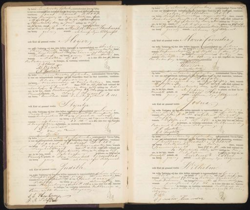 Op heden Zes en twintig september Achttienhonderd Vier-en-Vijftig, is voor ons ondergeteekende Ambtenaar van den Burgerlijken Stand der Stad Asterdam. verschenen: Jonas Barind Knoop van beroep kruijer oud negenentwintig Jaren, wonende Marken Buurt S. No. 190, welke heeft verklaard dat op vijfentwintig dezer des voor middags ten vijf ure, ku het huis, staande als boven, is geboren een Kind van het munnelijke geslacht, uit Elisabeth Meijer Hamburgh van beroep geen wonende als boven zine Echtgenoot. welk Kind zal genaamd worden Meijer van welke Verklaring wij deze akte hebben opgemaakt in tegenwoordigheid van Abraham Elias Barentz van beroep geen oud zevenenveertig Jaren, wonende langehoutstraat B01 en van Coenraad Assei Houtman van beroep geen oud Eenenveertig Jaren, wonende Markin S. 45. en is deze Akte door dis bherens den vader en de Getuigen, Na voorlezing onderteekend. J B Khoop W AE. Buren vd Op heden ses en twintig september Ach is voor ons ondergeteekende Ambtenaar van ten Burgerijken Stand der Sad Amsterdam, verschen ieter Wilhelm hool van beroep stadsschuitenmaker oud negenendertig Jaren, wonende Oostenburger Voorstraat, Buurt I. No. 191, wante heeft verklaard da Vijf en twintig dezer des voor middags ten negen ure, in het huis, staandeals boven is geboren een hunt van het vrouwelyke geslacht, uit Gerhardina Susanna Maria Josina Beeler van beroep geen wonende als boven: zyn Echtgenoot. welk Kind zal genaamd worden Maria Cornelia van welke Verklaring wij deze Akte hebben opgemaakt in tegenwoordigheid van petus Werse van beroep vroedmeester oud zevenendertig Jaren, wonende klareniervourgwal C. en van Willim der 52 kinderen van beroep Commissionnair oud dertig Jaren, wonende Kirkstraat 4a. 676 en is deze Afte door ons, benevens den vader an de Getuigen, na voorlezing onderteekend. Rvroos. A. Weise W. der Kindere CA Op heden Zesentwintig september Achtienhonderd Vieren-Vijtig is voor ons ondergeteekende Ambtenaar van den Burgerlijken Stand der Stad Amsterdam, verschenen: Alida Dundam van beroep vroedvrouw oud vierenzestig Jaren, wonende Loogersgracht Buurt HH. No. 237, welke heeft verklaard dat en haar byzyen bp vierentwintig dezer des na middags ten acht ure, in het huis, staande overtoomsche sweg KK 126 is geboren een Kind van het vrouwelyk geslacht, uit Sara Sijwel van beroep dienstbode wonende handboogstraat D. 301. welk Kind zal genaamd worden Stijntje van welke Verklaring wij deze Akte hebben opgemaakt in tegenwoordigheid van Louis Van der Wul van beroep kantoorknecht oud drieen dertig Jaren, wonende buitengasthuis KK. 126 en van Carel de Lor van beroep als boven oud negenentwintig Jaren, wonende alp boven n. 126. en is deze akte door ond beregens de dangeefsteren de Getuigen, na voorlezing onderteekend J: A Duundam van de huil Reg Op heden Zesentwintig september Achttienhonderd Vier-en-Vijtig is voor ons ondergeteekende Ambtenaar Kansten Burgerijken Staad der Stad Amsterdam, verschenen Jesaya Partati van beroep koopman oud zesen twintig Jaren, wonende kerkstraat Buut W. No. 299, werte heeft verklaard dat op zesentwintig dezer des voor middags ten drie ure, in het huis, staande als hoan is geboren een kind van het mannelijke geslacht, uit Jansje Haag van beroep geen wonende als boven: zyne echtgenoot. welk Kind zal genaamd worden Josua. van welke Verklaring wij deze akte hebben opgemaakt in tegenwoordigheid van Jona Iraal sarfali van beroep geen oud vifendertig Jaren, wonende Kirkstraat W. 311. en van Gabriel tiaas sarfatis van beroep geen oud achtentwintig Jaren, wonende Kirkstraat W. 343. en is deze Akte door ons, beneven de Getuigen, na voorlezing onderteekend. Verklarende de Vader niet te kunnen schryven J: J: Sasphatij. RG G.I. Sarphats. /9 Op heden Zesentwintig september Achtienhonderd Vier-en-Vijtig is voor ons ondergeteekende Ambtenaar van den Burgerijken Stand der Stad Amoterdam, verschenen: Jesarus Andries Hiier van beroep koopman, oud tweeendertig Jaren, wonende Langehoutstraat Buurt P No. 324, welke heeft verklaard dan p vijfentwintig dezer des na middags ten vijf ure, in het huis, staande glsboven is geboren een kang van het Vrouwelyke geslacht, uit Eva Leendert Groenstad van beroep geen wonende als boven: zine Echtgenoot. welk Kind zal genaamd worden Gudith. van welke Verklaring wij deze Akte hebben opgemaakt in tegenwoordigheid aan Livie Lion Vleenpariger van beroep geen oud Eenen veertig Jaren, wonende Langehoptstraat P. 292. en van Gerrit Aaran schifter van beroep geen oud zesenviftig Jaren, wonende looyenburger gracht P. 136 en is deze Akte door ons, benevens de Getuigen, na voorlezing onderteekend. Verklarende de Kader niette kunnen schryven. L. L. Vleeschdruger Ig J: A: S Seffr Op heden Zesentwintig september Achtienhonderd Vieren-Vijtig is voor ons ondergeteekende Ambtenaar van den Burgerlijken Stand der Stad Amsterdam, verschenen: Christiaan Hendrik Akland. van beroep tabakswerker oud dertig Jaren, wonende Brouwersgracht Buurt 99. No. 22., welke heeft verklaard dat op vijfentwintig dezer des voor middags ten Vier ure, in het huis, staande Valiboven is geboren een Kind van het mannelyke geslacht, uit Geertruijd Eskens. van beroep gien wonende als boven: zijne Echtgenoot welk Kind zal genaamd worden Wilhelm. van welke Verklaring wij deze Akte hebben opgemaakt in tegenwoordigheid van George Blok van beroep bartier oud vijfendertig Jaren, wonende palmstraat 99.825 en van Antonie Gysbert vander Kammen van beroep schoenmaker oud drieenveertig Jaren, wonende palimstraat 99. 806. en is deze Alte door ons, beneven de Getuigen, na voorlezing onderteekend. verklarende de Vader thans niet in staat te zyn: zyne, naam te kunnen schrijven GGlok Pij N 9 van Zer Hammen