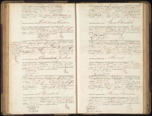 Op heden Zestien October Achttienhonderd Vier-enVijfttig, is voor ons ondergeteekende Ambtenaar van den Burgerlijken Stand der StadAtasterdam, verschenen: Gerardus Antonie van der VElden van beroep kovendrager oud tweeendertig Jaren, wonende suikerbakkerssteen Buurt H. No. 534,, welke heeft verklaard dat op veertien dezer des na middags ten acht ure, in het huis, staande — als boven is geboren een Kind van het vrouwelijke geslacht, uit Wilhelmina Christina Hettelingh. van beroep gien wonende als boven: zijne Echtgepoot welk Kind zal genaamd worden Wilhelmina Christina van welke Verklaring wij deze Akte hebben opgemaakt in tegenwoordigheid van Coenraad Hermanus van der Velden van beroep smid oud achtentwintig Jaren, wonende kleine wittenbgerstrant en van Jansteenkart ti van beroep kleeremaker oud Enen dertig Jaren, wonende Wittenburgergracht I. 572 en is dezel Akte door ons, benevens den vaderen de Getuigen, na voorlezing onderteekend. G A vd velite C:H. VD velden 1419 Op heden Zestien October Achttienhonderd Vier-en-Vijttig is voor ons ondergeteekende Ambtenaar van den Burgerlijken Stand der Stad-Amsterdam verschenen: Johann Gotthelf Muller van beroep broodbikker oud drieendertig Jaren, wonende Rozengracht Buurt EC No. 179., welke heeft verklaard dat op veertien dezer des voormiddags ten vier ure, in het huis, staande als boven is geboren een Kind van het vrouwelijke geslacht, uit Cornelia Mulder van beroep geen wonende als boven: zijne Ehtgenoot welk Kind zal genaamd worden Anna Elisabeth van welke Verklaring wij deze Akte hebben opgemaakt in tegenwoordigheid van Hendrik van Hoevelaken van beroep geen oud drie enzestig Jaren, wonende Rozengracht E 2179e van Gottlieb Winster van beroep varkenslagter oud veertig Jaren, wonende 2e Rozendestraat El 172 ten is deze Akte door ons, benevens den vader in de Getuigen, na voorlezing onderteekend J:G: Maller H: van Hoevelaken PHG rster goedgekeurd de doorhaling van twee woorden een naam en twee letter van twee andere woorden en de inplaatsstelling een naam en eene letten. J: Geerling. P. Ar derzon M He 1u19 „ Op heden Zestien October Achttienhonderd Vier-en-vitig, is voor ons (ondergeteekende Ambtenaar van den Burgerlijken Stand der Stad Amsterdam, verschenen: Jacob Geerling van beroep zeeman oud Eenendertig Jaren, wonende tters Elanafteaatn Kadijk Buurt G 410. 691, welke heeft verklaard dat den op vijftiendezer des voormiddags ten Alf in het huis, staande Salsboven geboren een Kind van het vinnelijke. teotwolik geslacht, uit Helena Maria Boogaard, van beroep geen wonende als boven: zyneEchtgenoot welk kind aal genaamd worden Elisabeth Jacobus. van welke Verklaring wij deze Akte hebben opgemaakt in tegenwoordigheid van Johannes Anderzen van beroep zisman oud drieendertig Jaren, wonende Kidderstraat N19fen van Monstz Fles, van beroep zeeman oud veertig Jaren, wonende foiliedustraat U 339 en is deze Akte door ons, benevens den vader en de Getuigen, na voorlezing onderteekend J: Georling 9119 Andersen. M H Op heden Zestien betalin Achttienhonderd zier-en-Vijtig is voor ons ondergeteekende Ambtenaar van den Burgerijken Stand der Stad Amsterdam verschenen: Jacob van Mozes dasilva Curiel van beroep geen oud tweeendertig Jaren, wonende Ratavierstraat Buurt R. No. 229, welke heeft verklaard dat op veertien dezer des na middags ten twee ure, in het huis, staande als hoven is geboren ten kind van het mannelijke geslacht, uit Hanna van Daniël Baruch van beroep gien wonende als boven: zijne Echtgenoot welk kind aal getaamd vorden Mozes. van welke Verklaring wij deze Akte hebben opgemaakt in tegenwoordigheid van Haim Hazer Tezaro van beroep geen oud vierentwintigaren, wonende Kerkstraat W en van Sammel Pekaro van beroep gien oud veertig Jaren, wonende kerkstraat W. 316 en is deze Akte door one, benevens den vader en de Getuigen, na voorlezing onderteekend. Jb. da Silva Griël. 19 . Perap L Veraw Op heden zestien October Achttehhonderd Vier-en-Viftig is voor ons oudergeteekende Ambtenaar van den Burgerlijken Stand der Stad. Amsterdam, verschenen: odewijk Johan Gehring van beroep o Smijd oud drieendertig Jaren, wonende Elandstraat Buurt GG. f. 69., velke heeft verklaard dat op veertiendezer des voormiddags ten Een ure, in het huis, staande als bovenl geboren een Kind van het vrouwelijke geslacht, uit Elisabeth Wille. van beroep geen wonende als boven: zyne Echtgenoot welk kisdlad geraond voden Elisabeth. van welke Verklaring wij deze Akte hebben opgemaakt in tegenwoordigheid van Petrus Willem, van beroep smid oud zesentwintig Jaren, wonende Lanrierstraat 7f 598 en van pieter Klok van beroep werkman oud drieendertig Jaren, wonende, baangracht GG 392, en is deze Akte door ons, benevens den vader en de Getuigen, na voorlezing onderteekend. 5 J Gehring 749 T Wijlk. P. Klok Se Op heden Zestien Oitaler Achtienhonderd Vier-en-Vijtig, is voor ons ondergeteekende Ambtenaar van den Burgerlijken Stand der Stad Amsterdam, verschenen: Gerardus Hoerman van beroep hovenier oud achtendertig Jaren, wonende Loogebleekerspad Buurt KK. No. 500. talke heeft verklaard dat — op vijftien dezer des voormiddags ten Vier ure, in het huis, staandeals boven is geboren den kind van hen vrouwelyke geslacht, uit Maria Becker Bellinghof van beroep gien wonende als boven: zijne Echtgepoot .0 welk Kind zal genaamd worden Maria Theresia van welke Verklaring wij deze Akte hebben opgemaakt in tegenwoordigheid van Hendrik sillen, , van beroep stoelenmaker oud Eenenvijftig Jaren, wonende Damrak H 132. en van Johannes frahciocus Baartscheer van beroep Commistionnavoud twee enveertig Jaren wonende nieuwe Liliestraat MM 198,en is deze Aktefdoor ons, berevens den vaderen de Getuigen, na voorlezing onderteekend. G Koenman 4M9 HHillen H Baartschus