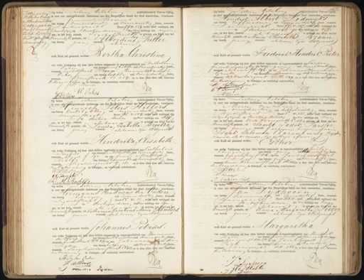 Ditkindisdoor Wilhelm Ochset en Almdinakelder; bij akte, in dato heden Voor het hunneerken Zie Erk: Regro 1f.o 19 Amstd:r 26 Aug.s 1860. O „Zevenenvyftig Vi dOp heden Zestien Octaler Achttienhonderd Vier-en-Vijfttig is voor ons ondergeteekende Ambtenaar van den Burgerlijken Stand der Stad Amsterdam, verschenen der femmetje Baarens van beroep vroedvrouw oud vierendeertig Jaren, wonende den zindengracht Buurt 99 No. 254, welke heeft verklaard, da kend in haar bijzijn op veertien dezer, des voor middags ten negen 19 ure, in het huis, staande Sigckelstraat, is geboren een Kand van het 309. 80 vrouwelyke geslacht, uit van beroep geen wonende berdina Keller als boven welk Kind zal genaamd worden Bertha Christina van welke Verklaring wij deze Akte hebben opgemaakt in tegenwoordigheid van Wilhelim achten van beroep voodbakker oud vierentwintig Jaren wonende tigctelstraat Bogen van Heinrich Daniel Ochsen van beroep bakker oud tweeendertig Jaren wonende Rozenstraat El 254. en is deze Akte door ofs, beneven de aangeefster in de Getuigen, na voorlezing onderteekend. J: Barin J HG W Octsb Op heden Zestien October Vier-en-Vijf J A e h Hendrik Aibert Lodewijks van beroep raffinadeur oud zevenendertig Jaren, wonende aariergracht, Buurt ƒ No. 287, welke heeft verklaard dat dertien dezer des na middags ten vijf ure, in het huis, staande als bover is geboren een Kind van het mannelyke geslacht, uit Maria Elisabeth Braun van beroep geen wonende als boven: zijne Echtgenoot welk Kind zal genaamd worden Frederik Hendrik Pieter van welke Verklaring wij deze Akte hebben opgemaakt in tegenwoordigheid van Casper Frederik Lodewijks, van beroep geen oud drieentwintig Jaren, wonende als bovenff 296. en van Johannes Hermanus Groote van beroep ommissionnair oud achtentwintig Jaren, wonende Nz voorburgwal H. 549. en is deze Akte door ond berleven den vader de Getuigen, na voorlezing onderteekend ALodewyhs z P9 C T Luvenyks. Op heden Zestien October Achttienhonderd Vier-en-Vijtig is voor ond opdergeteekende Ambtenaar van den Aurferijken Stand der Had Aasterdam, verschenen Linrich Peters Fillers van beroep koeksbikker oud negenendertig Jaren, wonende Weesperstraat Buurt W. No. 554, welke heeft verklaard da op dertien dezer des voor middags ten Elf ure, in het huis, staande afsboven 00 i geboren een Kind van het vrouwelyke geslacht, u Louiza Isabella Broeker van beroep geen wonende als boven: zijne Echtgenoot. welk Kind zal genaamd worden Hendrika Elisabeth van welke Verklaring wij deze Akte hebben opgemaakt in tegenwoordigheid van CarlGerkard Lugfeld van beroep van het bakker oud tweeendertig Jaren wonende Singel f 291. en van frans Muller Rohlfs van beroep kleeremaker oud tweeenveertig Jaren wonende, Reguliersgracht Y 181, en is deze Akde door ans, beneven den vader en de Getuigen, na voorleiing onderteekend HF Hiller. C G: Kregseld 12l