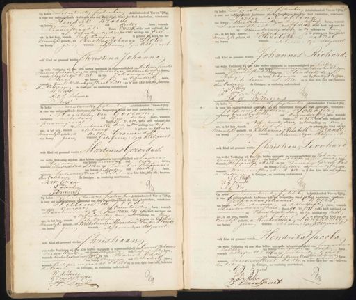Op heden Zes en twintig september Achtttien is voor ons ondergetekende Ambtenaar van den Burgerlijken Stand der Stad Amsterdam, verschenen ieter Notting van beroep steen kolenwerker oud zeveneenderttig Jaren, wonende Laurierstraat Buurt f. No. 164 welke heeft verklaard dat op vierentwintig dezer des na middags ten twee ure, in het huis, staande als boven is geboren een Kind van het mannelyke geslacht, uit Elizabeth P vakzel. van beroep wonende als boven: zijne echtgenoot welk Kind zal genaamd worden Johannes Richard. van welke Verklaring wij dete Akte hebben opgemaakt in tegenwoordigheid van Pieter Trakzel „ van beroep timmerman oud tweeentachtig Jaren wonende stJacobdustraat & 349 en van Hendrik de Bruin van beroep behanger oud vifenvijftig Jaren, wonende als boven S. 1350. en is deze Akte door ons, benevens den vader en de Getuigen; na voorlezing onderteekend. Noltars F: Birksel R9 entwint leptemt Achtienhonderd Vierenvijtig is voor ons ondergetekende Ambtenaar van den Burgerijken Stand der Stad Amsterdam, verschenen: Mlaarten van Jorcum van beroep mitselaar oud negenendertig Jaren, wonende prinsengracht, Buur Z. No. 430, welke heeft verklaard, dat op zesentwintig dezer des voormiddags ten vif ure, in het huis, staande als boven is geboren een kind van het mannelyke geslacht, uit Aaltje Groenendijk van beroep geen wonende als boven: zine Echtgenoot welk kindaal geraand voden Martinus Gerardus. van welke Verklaring wij deze Akte hebben opgemeaakt in tegenwoordigheid van Saurens Planken van beroep bediende oud vyftig Jaren, wonende sexelschekade L. 214. en van Jacobus J Simonis van beroep bediende oud dertig Jaren, wonende Egelantierstraat NN en is deze Akte noor ons, benevens den vaderen de Getuigen, na voorlezing onderteekend. M van Gorcum L Stansen G Op heden zesentwintigtember Achttienhonderd Vier-en-Vijtig is voor nis ondergeteekende Ambtenhar van ten Burgerijken Stand ter Dad Amsterdam, verschenen Johaann, Christian Schater van beroep broodbakker oud drieenderttig Jaren, wonende Amstel Buurt Z No. 377, welke heeft verklaard dat op vijfentwintig dezer des voormiddags ten vier ure, in het huis, staande als boveni geboren den Kind van het mannelyke geslacht, uit Katharina Elisabeth Brandt van beroep geen wonende als boven zijne Echtgenoot welk Kind zal getaamd worden Christian Leonhard van welke Verklaring wij deze Akte hebben opgemaakt in tegenwoordigheid van Johann George Brandt van beroep vroodbakker oud zesenveertig Jaren, wonende Olofspaarteen M 428. en van Siman Gerrit Wos van beroep schilder oud twee en viftig Jaren wonende Warmaesstraat M 412 en ip deze Akte door ons, berlven den vader en de Getuigen, na voorlezing onderteekend. J: C: Shöler J. G: Brandt Reeg P: G. Vos Op heden Zesentwintig sentember gehtienhonderd Vierenvijtig is voor ons ondergeetende Asteraar van den Burgerijken Sand der Sad, Amsterdam, verschenen: al Willem de oud vierentwintig Jaren, wonende van beroep kuipers Haarlemmerdijk Buurt U4 No. 249, welke heeft verklaard dat op vyf en twintig dezer des voormiddags ten tien ure, in het huis, staande als boven is geboren een kindvan het mannelyke geslacht, uit Wilhelmina Gerardina Van der Voude van beroep geen wonende als boven zine Echtgenoot welk Kind zal genaamd worden Christiaan van welke Verklaring wij deze akte hebben opgemaakt in tegenwoordigheid van Gerrit Johannes vander Wonde van beroep schipper oud achtenveertig Jaren, wonende buitenbaatammerstraat en van Henrich Dade U. 134 van beroep koopman oud achtendertig Jaren, wonende Korte prinsengracht s I. 1o1 en is deze Akte door ons, beevens den vaderen de Getuigen, na voorlezing onderteekend W: de Soode G J van der Woude lGg H.Dads Op heden Zesentwintig sentember Achtehhonderd Vier-en-vidtig is voor ous ondergeteekende Ambtenaar van dan Burgerijken Stand Jer bd Amsterdam, verschenen: Gerpardus Johannes iers van beroep steenhanwer oud achtentwintig Jaren, wonende ioorderdwarsstraat, Buurt Aa, No. 561, welke heeft verklaard, dat op Vierentwintig dezer des na middags ten acht ure, in het huis, staande als boven is geboren een Kind van he vrouwelyke geslacht, uit Huiberdina Langhamer van beroep geen wonende als boven zijne Echtgenoot. welk Kind zal genaamd vonen Hendrika Jacoba, van welke Verklaring wij deze Akte hebben opgemaakt in tegenwoordigheid van Leonardu van beroep vienhouneg oud dertig Jaren, Dekker wonende achtergracht L. 777, en van Pieter van Gaart van beroep shakwwer kon twee en twintig en gehuwd Vaen wonende noorderdwstraat 4d.560. en is deze Akte door ops, benevens den vader en de Getuigen, na voorlezing onderteekend. GJ. E„gers E/ L Dekeker J: Van Gert