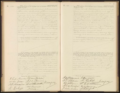 No. 130 Heden Zes Maart negentienhonderd twaalf zijn voor mij Ambtenaar van den burgerlijken stand van Amsterdam verschenen, ten einde een huwelijk aan te gaan: Everhardus Ludovicus Johannes- Munier stukadoor, geboren en wonen de alhier, oud vierentwintig jaren meer derjarige zoon van Ludovicus Johannes Munier, stukadoor en Leentje Lohuys- zonder beroep, beiden wonende alhier, en Naatje van Gulden zonder beroep gebo„ ren te Nieuwer-Amstel wonende alhier oud vijfentwintig jaren, meerderjarige doch„ ter van Carel George van Gulden metselaar en Geertruida Catharina Petri, zonder beroep beiden wonende alhier. Beider ouders verklaarden, voor mij tegen woordig toe te stemmen in dezen echte De beide afkondigingen tot dit huwelijk zijn onverhinderd geschied, alhier den vijf en twintigsten Februari laatstleden en den derden dezer Ik heb bruidegom en bruid afgevraagd of zij elkander nemen tot echtgenooten en getrouwelijk alle de plichten zullen vervullen, welke door de wet aan den huwelijken staat verbonden zijn. Nadat deze vragen door hen bevestigend beantwoord werden, heb ik, in naam der wet, uitspraak gedaan, dat zij door het huwelijk aan elkander zijn verbonden. Als getuigen waren tegenwoordig: Johannes Jacobus Carel Munier, broeder des echtgenoots, stukadoor oud negen en veertig jaren, Johannes Willem Panbakker, werkman, oud vijf en zestig jaren Hendrik Antonie Siemerink, werkman, oud zeventig jaren en Johannes Pelt kellner, oud drie en vijftig jaren, allen wonende alhier De moeder der echtgenoote verklaarde niet te kunnen naamteekenen, als hebbende geen schrijven geleerd. Waarvan akte, welke overeenkomstig de wet is voorgelezen. No. 131 Heden Zes Maart negentienhonderd twaalf zijn voor mij Ambtenaar van den burgerlijken stand van Amsterdam verschenen, ten einde een huwelijk aan te gaan: Pieter Dirk Witteveen marinier, ge boren en wonende alhier, oud vijf en twintig jaren, meerderjarige zoon van Willem Jacob Witteveen, werkman en Maria Elisabeth van der Smissen, zon„ der beroep, beiden wonende alhier, en Anna Cornelia Schotman, zonder beroep, geboren te Haarlemmermeer, wo- nende alhier, oud eenentwintig jaren; meerderjarige dochter van Jean Schotman grondwerker en Cornelia Capoen, zonder beroep, beiden wonende alhier. Beider ouders verklaarden, voor mij tegen woordig, toe te stemmen in dezen echt De beide afkondigingen tot dit huwelijk zijn onverhinderd geschied, alhier den vijf en twintigsten Februari laatstleden en den derden dezer Ik heb bruidegom en, bruid afgevraagd of zij elkander nemen tot echtgenooten en getrouwelijk alle de plichten zullen vervullen, welke door de wet aan den huwelijken staat verbonden zijn. Nadat deze vragen door hen bevestigend beantwoord werden, heb ik, in naam der wet, uitspraak gedaan, dat zij door het huwelijk aan elkander zijn verbonden. Als getuigen waren tegenwoordig: Machiel Content, verlof houder oud twee en zestig jaren, Karel Hen drik Witteveen, broeder des echtgenoots tram conducteur, oud drie en twintig jaren, Wil lem van Kampen, marinier, oud vijf en twintig jaren en Johan Koenraad Lange, veld, marinuer oud vier en twintig jaren allen wonende alhier. Waarvan akte, welke overeenkomstig de wet is " orgelezen. E L J Munier Cls van Gulden N Van Gulden JJ C Muneer SJ Minnier Cid ennbakken tWofadi H.Siemerm L Lohuijd J. Pelt Oorgelezen. P. Z Witterien brlu poen A: E. Schotman M Couten Oatoghater 1 WJ Witten- A K. H. Wetteree M E vd Smissen W vy Kamp J Schotman J. H: Langeveld