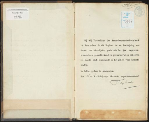 Stadsarchief Amsterdam, archieftoegang 5009, Archief van de Burgerlijke stand, inventarisnummer 3912, Overlijdens, Akten, Registers van overlijdensakten, 1901, deel 1