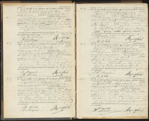 No. 7 Op heden twee Januari negentienhonderd een, zijn voor ons Ambtenaar van den burgerlijken stand der gemeente Amsterdam, verschenen: lasper Ladewijk van de Kamp, van beroep se hoenma ker oud twee en dertig jaren, wonende alhier en Frederik van de Kamp. van beroep kuizer oud acht en dertig jaren, wonende alhier , die ons hebben verklaard, dat op den negen en twintigsten December laatstlegen des na middags ten negen„ ure in het huis Nieuwe Keizersgracht 72.,, is overleden geboren een lenel van het mannelijk gerlacht uit Maria ven beroep Thergsia Bauman wonende echtgenoote van Casper oud Lodewijk van de Kamp, van geboren beroep schoenmaker wonende alhier, welk kind als levenloos wordt aangegeven En hebben wij hiervan opgemaakt deze akte die na voorlezing door de aangevers en ons is onderteekend goedgekeurd de doorhaling van resgedrukte woorden in den akte C.Z. Van de Kumf. Henirsschal F Met Kamp No. 13 Op heden twee Januari negentienhonderd een, zijn voor ons Ambtehaar van den burgerlijken stand der gemeente Amsterdam, verschenen: Johannes Herman Eroeze van beroep geen oud acht en zeventig Jaren, wonende alhier en Duneel Johan Erb van beroep geen oud drieen zestig jaren, wonende alhier , die Ons hebben verklaard, dat op den negen en twintigsten December laatstleden des voor middags ten halfocht ure in het huis Amstel 51, is overleden Jan Jacobus Geijlswijk van beroep geen, wonende alhier oud vijf en tachtig jaren, geboren alhier, weduwnaar van Magdalina Willink, zoon van Marten Geijlswijk en Duistina Johanna van Delden ronder beroep beiden worende alhi En hebben wij hiervan opgemaakt deze akte, die na voorlezing door de aangeverse ons is onderteekend, goedgekeurd de doorhaling van vyf geschreven woorden in deze akte J. A Groes HEnnaschut De J. Grb No. 9 negentienhonderd een, Op heden twee Januari zijn, voor ons Ambtendar van den burgerlijken stand der gemeente Amsterdam, verschenen: Anton Mariarole van beroep aansprester oud ach en twintig jaren, wonende alhier. en Henricus Teelen van beroep aanspreker oud zes en vijftig jaren, wonende alhier. die ons hebben verklaard, dat op den dertigsten December laatstlestendes voor middags ten negen ure in hethuis tweede Laurierdwarsstraat 1, zs overleden Maria Frederica Bernard van beroep gelen, wonende alhier oud drie en zestig jaren, geboren te 's Gravenhage weduwe van Jacobus Gerardus Johannes Bonarius dochter van Willem George Frederik Bernard en Maria Adriana Bruggemans En hebben wij hiervan opgemaakt deze akte, die na voorlezing door de aangevers en ons is onderteekend. Bondrkschi A. Margaroli. H Peelen No. 15 Op heden twee Januari negentienhonderd een, zijn voor ons Ambtenaar van den burgerlijken stand der gemeente Amsterdam, verschenen: Johannes Herman lroete van beroep geen oud acht en zeventig Jaren, wonende alhier en Daniel Johan Erf van beroep geen oud drie en zestig Jjaren, wonende alhier , die ons hebben verklaard, dat op den dertigsten December laatstleder, des voor middags ten halftien ure in het huis Amstel 51. is overleden Pieter Jacobus van Moock.— van beroepgeen, wonende alhier oud vijf en zeventig jaren, geboren alhier, weduwnaar van Maria Elisabeth van Akerlaken zoon van Pieter Jacob van Moock en Alida Kasteel En hebben wij hiervan opgemaakt dere afte, die na voorlezing door de aangevers en ons is onderteekend. J H Crese Hendrikhus D: CJ Erb No. 11 Op heden twee Januari negentienhonderd een, zijn voor ons Ambtenaar van den burgerlijken stand der gemeente Amsterdam, verschenen: Henricus Teilen van beroep a anapreker oud zes en viftig jaren, wonende alhier en Anton Margarole van beroep aanspreker oud acht en twintig jaren, wonende alhier , die ons hebben verklaard, dat op den een en dertigsten December laatste des voor middags ten vyf ure in het huis tweede Oosterparkstraat 199, is overleden Catharina Josepha Petronella Maria Wanders van beroep geen, wonende alhier oud vier maanden, geboren alhier dochter van Petrus Antonius Warders kleermaker en Catharina Johanna Maria Bosch ronde beroep beiden wonende alhier En hebben wij hiervan opgemaakt deze akte, die na voorlezing door de aangevers en ons is onderteekend. Nardrisschal H Seelen A: Margaroli No. 17 Op heden twee Januari negentienhonderd een zijn voor ons Ambtenaar Jan den burgerlijken stand der gemeente Amsterdam, verschenen: Wessel de Rijk van beroep aanareker oud tweeenwijftig jaren, wonende alhier en Johannes Antonius Boom van beroep aanaprekar oud drie en twintig jaren, wonende alhier „„, die ons hebben verklaard, dat op den een en dertigsten December laatsthedn des voor middags ten drie ure in het huis der de Hugo de Grootstraat 9, is overleden Daniel Dollee van beroep geen, wonende alhier oud drie jaren, geboren alhier, zoon van Martinus Dollee diamantbewerker en Ida Wilhelmina Johanna Visser, wonende de vader alhier En hebben wij hiervan opgemaakt deze akte, die na voorlezing door de aangevers in ons is onderteekend. W. de Rijk Hondrschut JBoom