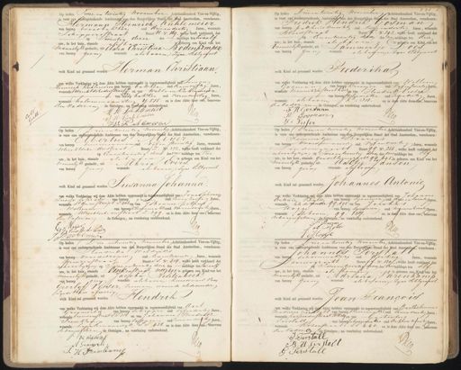 d Op heden Twee en twintig November Achttienhonderd Vier-en-Vijftig, is voor ons oudergeteekende Ambtenaar van den Burgerijken Stand der Dad Amsterdam, verschenen: Hiermann Heinrich. Kuhlemeier van beroep broodbakker oud drieen dertig Jaren, wonende Schippersstraat Buurt U No. 169, walte heeft verklaard, dat op Twintig dezer des middags ten twaalf ure, in het huis, staande als tagen is geboren een kind van het mannelyke geslacht, uit Aara Christina Bodenkemper van beroep geen wonende als boven: zijne Echtgesoot welk Kind zal genaamd worden Herman Christiaan, van welke Verklaring wij deze Akte hebben opgemaakt in tegenwoordigheid van Simon Henrich Kahlemeier van beroep bakker oud Eenenviftig Jaren, wonende Utrechtschederstraat2 en van Willem Kuhterheier van beroep bakker oud vierenveertig Jaren, wonende halven maansteeg Y515. en is deze Akte door ops, benevens den vader en de Getuigen, na goerlezing onderteekend. H H Spaklemeet 1119 S. H. Juik Ameier Op heden Drieentwintig November Fredrik Hendrik Gosman van beroep pakhuisknecht, oud tweeendertig Jaren, wonende Bloedstraat Buurt 4. No. 293., welke heeft verklaard dat 8p Eenen twintig dezer des na middags ten drie ure, in het huis, staande als brom is geboren een kind van het vrouwelyke geslacht, uit Lammertje Does van beroep geen wonende als boven: zyne Echtgenoot welk Kind zal genaamd worden Frederika van welke Verklaring wij deze Akte hebben opgemaakt in tegenwoordigheid van Willem josman van berogp kruyer oud vyfentwintig Jaren wonende monmkenstraat 312 en van Hendrik Visser van beroep stoelenmatter oud zesendertig Jaren, wonende als hovenK. 311 en is dete Akte door bur, benevens den vader in de Getuigen, na voorlezing onderteekend. F H Gorman W: Cosman Deig H: Vo Op heden Trieentwi november Achtienhonderd Vieren-Vitig, is voor ons ondergeteekende Ambtenaar van den Burgerlijken Stand der, Stad Amsterdam, verschenen: Abertus Meijer van beroep timmerman oud vijfen twintig Jaren, wonende Utrechtsche dwstraat Buurt Z. fo. 272., wolke heeft verklaard dat op Eenentwintig dezer des voormiddags ten Vier ure, in het huis, staande als oden is geboren een Kind van het vrouwelyke geslacht, uit Maria Evers. van beroep geen wonende als boven: zyne Echtgenoot welk Kind aal genaamd worden Susanna Johanna van welke Verklaring wij deze Akte hebben opgemaakt in tegenwoordigheid van Srans Johannen Suasso te prado van beroep geen oud Eenenzestig Jaren, wonende stannestraat s 406 en van Johannes pethus Wolmer van beroep kleenmakroud vierenveertig Jaren, wonende Utrechtsche dustraat Z. 299. en is deze Akte door ons, Benevens den vader en de Getuigen, na voorlezing onderteekend Meijer 49 GJ. hooffe de Tada DWolmer Op heden Drieentwintig november Achtienhonderd Vier-en-Vijtig, is voor ong opdergeteekende Ambtenaar van den Burgerlijken Stand der Stad Amsterdam, verschenen: Remmitje Baarens van beroep vroedvrouw oud vijfenveertig Jaren, wonende Lindengracht Buurt 94 No. 254, welke heeft verklaard dat in haar byzyn op Tweeentwintig dezer des voormiddags ten Elf ure, in het huis, staande goudsbloemgracht 99. 695 is geboren een Kind van het . 1 mannelyke geslacht uit Aaltje Jansen van beroep geen wonende, als boven welk Kind zal genaamd worden Johannes Antonie van welke Verklaring wij deze Akte hebben opgemaakt in tegenwoordigheid van Johannes Antonie Bilier van beroep sjouwer oud drieentwintig Jaren, wonende als de spoeder 99.695, en van Jacobus Uogge van beroep sjieuwer oud negenentwintigaren wonende Cali boven 99. 127. en is deze Akte door ons, benevens de aangeefsteren de getuigen, na voorlezing onderteekend. te Barens. J. A By 2 Moyge Op hedenDrie en twintig november achttienhonderd Vier-en-Vitig is voor ons ondergeteekende Ambtenaar van den Burgerlijken Stand der Stad Amsterdam, verschenen: Hendrika Wildriks van beroep vroedsvrouw oud Eenenzeventig Jaren, wonende prinsenstraat Buurt SS. No. 414, welke heeft verklaard dat enhaar byzyn op Tweeentwintig dezer des middags ten twaalf ure, in het huis, staande Linkenstraat 119 491, is geboren een kind van het mannelyke geslacht, uit Jacooba Ruitenbeek van beroepgeen wonende als boven: huisvrouw van Geerlot Visser, zeeman, wonende als de moeder, zyndethou afwerig Hendrik welk Kind zal genaamd worden van welke Verklaring wij deze Akte hebben opgemaakt in tegenwoordigheid van Aark Groeneveld van beroep schipper oud vifendertig Jaren, wonende brouwersstraat PS 218 en van Johannes Hendrik Trenkamp van beroep tapper oud zevenendertig Jaren, wonende haarlemmerdyk FS 428. en is deze Afte door tne benevens de aangeefdteren de Getuigen, na voorlezing onderteekend V Be Wietve I A Twveneeld J. H Frinkamp Op heden Drieentwintig november Achtienhonderd Vier-en-Vijtig is voor ons oudergeteekende Ambtenaar van ten Burgerhijken Stand der Had Amsterdam, verschenen: Johannes Terstal van beroep schoenmaker oud dertig Jaren, wonende Sauriergracht Buurt Jf. No. 1801 welke heeft verklaard da p Tweeentwintig dezer des voormiddags ten Elf ure, in het huis, staande als boven is geboren een, kind van het mannelyke geslacht, uit Adrianaarenkamp van beroep geen wonende als boden: zine Echtgenoot welk Kind zal genaamd worden Jean François van welke Verklaring orij den Akte hebben opgemaakt in tegenwoordigheid van Bartholomeus Hendricus Terstall van beroep kleenmaker oud Eenenveertig Jaren, wonende passeerderstraat H 189 en van Gystertus Terstall van beroep stwoenmaker oud achtentwintig Jaren, wonende Rozerstraat El 440. en is deze Akte door ons benevend den Vader de Getuigen, na voorlezing onderteekend I: Verstall PG B: H Ferstall G Terstall