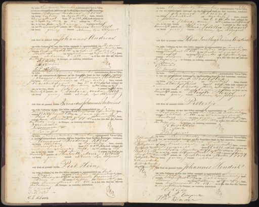 Op heden Een en twintig november Achttienhonderd Vier-en-Vijftig is voor ons ondergeteekende Ambtenaar van den Burgerlijken Stand der Stad Amsterdam verschenen: Adrianus Theodorus Boers. van beroep barbier oud zesen dertig Jaren, wonende Koningstraat Buurt O. No 238. welke heeft verklaard dat op Twintig dezer des na middags ten drie ure, in het huis, staande als hoven is geboren een kind van het mannelijke geslacht, uit Renrica ter Leest van beroep geen wonende als boven zijne Echtgenoot welk Kind zal genaamd worden Johannes Andreas van welke Verklaring wij deze Akte hebben opgemaakt in tegenwoordigheid van Hendricus Gerardus Goosen van beroep koperslager oud vijfentwintig Jaren, wonende Koningstraat. O. 241. en van Gerrit Pieter Holleder van beroep timmermaroud vijfentwintig Jaren, wonende als boven O. 238. en is deze Akte door ous, benevens den vader in de Getuigen, na voorlezing onderteekend. A:F: Boers. :2 JG H G Goosen Op heden Eenentwintig november Achttienhon is voor ons ondergeteekende Ambtenaar van den Burgerlijken Stand der Stad Amsterdam, verschenen Johannes Koning van beroep fabrikant oud veertig Jaren, wonende stelstueg Buurt G. No. 92.,welke heeft verklaard da Twintig dezer des na middags ten half twaalf ure, in het huis, staande alybaven, is geboren een kind van he vrouwelijke geslacht, uit Helena Dorothea Bangert van beroep geen wonende als boven: zyne Echtgenoot. welk kind aa geraamd van Helena DorotheaJohanna Cristina van welke Verklaring wij deze Akte hebben opgemaakt in tegenwoordigheid van Cornelis Komst van beroep vinkelier oud tweeendertig Jaren wonende Kozenstraat El 426. en van Pieter Louis Bangert van beroep kleeremaker oud vifentwintig Jaren wonende Spui. D 346, en is deze Akte door ons, beheven den vader en de Getuigen, na voorlezing onderteekend. J: Koning C Romsts Meg 1: L: Bangert tan november Achtienhonderd Wier- en-Vijtig, is voor ons ondergeteekende Ambtenaar van den Burgeriken Stand der Stad Amsterdam, verschenen: Johannes ernerus Cntonius Nieudens. van beroep Commissionuary oud Eenen dertig Jaren, wonende Ozachterburgwal, Buurt K. No. 433, welke heeft verklaard dat op negentiendezer des voor middags ten vyf ure, in het huis, staande als boven is geboren een sand van het mannelyke geslacht, uit Barbara van den Berg van beroep geen wonende als boven: zyne Echtgenoots welk Kind zal genaamd worden Bernardus Johannes Antonius van welke Verklaring wij deze Akte hebben opgemaakt in tegenwoordigheid van Jan Herman 2 van beroep inbaksverkooperoud vierentwintig Jaren, wonende VZachtnburgwal K. 429, en van Jan vunder Vliet van beroep geem oud tweeen vijftig Jaren, wonende tweede Rozendesstraat Ef 166, en is deze Akte door ous benevens den vader en de Getuigen, na voorlezing onderteekend. JPW. A. Meedens. Herman v 4l8 J van Ter Vliet Op heden Eenentwintig November Achttienhonderd Vier-en-Vijftig is voor ons ondergeteekende Ambtenaar van den Burgerlijken Stand der Stad Amsterdam, verschenen. endrik Hroelstra. van beroep Zeeman oud veertig Jaren, wonende Kleine kattenbyerstraat Buurt I. No 674, welke heeft verklaard dat pp Twintig dezer des voormiddags ten Acht ure, in het huis, staande als veboven 7 geboren een Kind van het vrouwelike geslacht, uit Kiaaske Fey van beroep geen wonende als boven: zyne Cechtgenoot welk Kind zal genaamd worden Pietertje. van welke Verklaring wij deze Akte hebben opgemaakt in tegenwoordigheid van Barend Vossema van beroep zeeman oud achtendertig en wonende als boven 666 en van Lianardus Biukers van beroep geeen oud achtenviftig Jaren wonende Rozengracht El1 102 en is Aere Akte door ons, beneven den Vader in de Getuigen, na voorlezing onderteekend. H troelstra l9 B vossema L Beepers Op heden Eenentwintig november Achttienhonderd Vier-en-Viftig is voor zie ondergeteekende Ambtenaar van den Burgerlijken Stand der Stad Amsterdam, verschenen: Hermanus Theodorus Koers. van beroep schilder oud Eenendertig Jaren, wonende Hazenstraat Buurt ff. No. 428, welke heeft verklaard dat op Twintig dezer des na middags ten El ure, in het huis, staande als poren is geboren een Kind van het mannelyke geslacht, uit Henriette Mariar Nietveld van beroep geen wonende als boven: zijne Echtgenoot vak Kidan grand vanu Piet Hein van welke Verklaring wij deze Akte hebben opgemaakt in tegenwoordigheid van Dirk Kagys van beroep schilder oud zeevenenzeventig Jaren, wonende Elandsgracht 99310, en van Cornelis franciscus koers, van beroep schilder oud zevenendertig Jaren, wonende Saurierstraat H. 425. en is deze Akte door ons, benevens den vaderen e Getuigen, na voorlezing onderteekend. H: lvers G D: Koers RG C F Koort Ditkindis door Johannes Hendrik Mathysen en va Geertruida Van der Voort by huwelijk alhier op heden ga Voltrokken Voor van hethunne ¶erkend. Amstd /4 december 1809 negen en Vijft 9 Op heden Eenentwintig November Achtienhonderd Vieren-Viitig 2 voor ons ondergeteekende Ambtenaar van den Burgerlijken Stand der Stad Amsterdam, verschenen: brik Cornelia Maria Lukin v aan beoopt vroedvrouw oud zevenendertig Jaren, wonende „der Looyersgracht Buurt GG No 433., welke heeft verklaard dat en haar byryn op negentien dezen des voor middags ten drie ure, in het huis, staande bethanienstraat. K. 159, is geboren een kind van het mannelyke geslacht, uit Geertruida van der Voort„ van beroep geen wonende als boesen id nter tign kind zal genaamd worden Johannes Hendrik van welke Verklaring wij deze Akte hebben opgemaakt in tegenwoordigheid van Siman petrus Jouprie, van beroep metselaar oud zesentwintig Jaren, wonende bethapierstraat 159en van Johannes Bloeme van beroep werkman oud vijfenvijftig Jaren, wonende Anjeliersgracht O0 454 en is deze Akte door ons, benevens de aangeefsteren de Getuigen, na voorlezing onderteekend. E M Lukis Heeg P Comprel JK Bloem