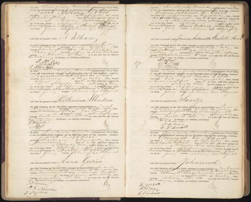 Op heden Eenentwintig November Jantiienhonderd Vier-en-Vijfttig is voor ong ondergeteekende Ambtenaar van den Burgerlijken Stand er Stad Ambterdam, verschenen Jacob Nathankj. Coves oudvierendertig Jaren, wonende van beroep geen Batavierstraat Buurt 1 NNo. 238, welke heeft verklaard, dat Heden des voormiddags ten twee ure, in het huis, staande als boven is geboren Bi van het mannelykgeslacht, uit Petie Mozes Sbruys van beroep geen wonende als boven zyne Echtgeroot welk kind aal genaand vorden Nathan van welke Verklaring vij deze Akte hebben opgemaakt in tegenwoordigheid van Sartog walf aal van beroep geen oud viftig Jaren, wonende gudenbyerstraat27 van Jacob Silva Roza van beroep, geen oud achtentwintig Jaren, wonende Marken N 185 en is deze Akte door ons, benevens den vaderen de Getuigen, na voorlezing onderteekend EnEs 19 J Silva Dd W Op heden Eenentwintig noventig Achttienhonderd Vier-enis voor ons ondergeteekende Ambtenaar van den Burgerlijken Stand der Stad Amsterdam, verschenen Antonie Johannes de Grool van beroep Commissiannair oud drieendertig Jaren, wonende oz Achterburgwal Buurt K. No. 474, welke heeft verklaard dat 8Eenen twintig dezer des voormiddags ten zes ure, in het huis, staande als boven is geboren een kind van he vrouwelyk geslacht, uit Anna Antonia Sieberg van beroep geen wonende als boven zyne Echtgenoot welk kind zal genaand wonen vanna Antoinetta Elisabeth Maria van welke Verklaring wij deze Akte hebben opgemaakt in tegenwoordigheid van Christiaan Johannes sieberg van beroep boekhonder oud dertig Jaren, wonende kerkersgracht N31 en van Johannes suberg van beroep kunsschilder oud Eenenviftig Jaren, wonende oz achterburgwal K 474 en is deze Akte door ons beneven den vaderzing de Getuigen, na voorlezing onderteekend. TP. dchroot. GJSieber Reg H6 Op heden Eenentwintig November Sehttienhonderd Vier-en-Vijtig, is voor ops ondergeteekende Ambtenaar van den Burgerlijken Stand der Stad Amsterdam,verschenen: Zeonardus Cornerius van der Duys van beroep concierge oud Eenendertig Jaren, wonende Buurt C. No. 349, welke heeft verklaard dat Spui op Twintig dezer des na middags ten tien ure, in het huis, staande als boven ge, is geboren een Kind van het vrauwelyk geslacht; uit Elena Frederica Willemina Ragens. van beroep geen wonende als boven: zyne Echtgenoot welk Kind zal genaamd wonden Willemina Alberdina. van welke Verklaring wij deze Akte hebben opgemaakt in tegenwoordigheid van Varot Hageman, van beroep kanspreker oud achtenviftig Jaren, wonende Inz achterburgwal f 256 en van Jan Kniysse van beroep boden oud Eenenviftig Jaren, wonende bantammerstraat N. 385, en is deze akte door ons, benevens den vader en de Getuigen, na voorlezing onderteekend. CC. vander Duijs. FJ J Hageman Reg Honyl Op heden Twee en twintig november Achttienhonderd Vieren-Vijftig, is voor ous ondergeteekende Ambtenaar van den Burgerlijken Stand der Stad Imsterkam, verschenen: Lijman Mieijer van der Velde van beroep kok. oud zevenendertig Jaren, wonende Landdwarsstraat Buurt C. No. 259,, welke heeft verklaard dat op Twintig dezer des namiddags ten vier ure, in het huis, staande als boeven is geboren een Kind van het vrouwelyke geslacht, uit Betje Samson Frank van beroep geen wonende, als boven zyne Echtgenoot welk Kind zal genaamd worden Saartje van welke Verklaring wij deze Akte hebben opgemaakt in tegenwoordigheid van Zsare van beroep gun oud zestig Jaren, de Vriies wonende uilenbierstraatK 143, en van Siman Jacob Diemant van beroep geen oud zevenendertig Jaren, wonende Marken. I. 10/3 en is deze Akte door ons, benevens ten Vaderan de Getuigen, na voorlezing onderteekend. H. M van der velde J: de Vries. R9 S: J: Liemmnt Op heden Een en twintig November Achtienhonderd Vieren-Vijtig is voor ons ondergeteekende Ambtenaar van den Burgerlijken Stand der Stad Amsterdam, verschenen: Jacob Bodaar. van beroep blikslager oud Eenendertig Jaren, wonende servitstug Buurt I. No. 189, wake heeft verklaard de oTwintig dezer des voor middags ten tien ure, in het huis, staande alsbovenY, is geboren een Kind van het vrouwelyke geslacht, uit Dirkje Winanges. van beroep geen wonende ils boven: zyne Echtgenoot welk Kind zal genaamd worden Anna Gesina. van welke Verklaring wij deze Akte hebben opgemaakt in tegenwoordigheid van Frederik Christiaan Nieman van beroep sjouwer oud drieendertig Jaren, wonende servitstug I. 185. en van Johannes Rijnders. van beroep sjouwer oud vierentwintig Jaren, wonende googerssteeg P. 315. en is deze Akte door ops, benevens den Vader m de Getuigen, na voorlezing onderteekend I Bodaar 49 F: C. Nieman J Rijnder Op heden I twintig november Achtienhonderd Vier-en-Vijtig is voor ons oudergeteekende Ambtenaar van den Burgerijken Stand der Sad Amsterdam, verschenen: Ooenraad Een Sande van beroep werkpan oud zesendertig Jaren, wonende konteleijdsche disstraat Buurt JI. No. 142., welke heeft verklaard dat op twintig dezer des na middags ten zeven ure, in het huis, staande als baven is geboren een kind van het mannelyke geslacht, uit Wilhelmina Catharina Vos. van beroep geen wonende als boven zyne Echtgenoot welk Kind zal genaamd worden Johannes. van welke Verklaring wij deze afte hebben opgemaakt in tegenwoordigheid van Jan Daniël Lipper van beroep metselaar oud vierenveertig Jaren wonende als hooen tl. 307. en van Cornelis Lamberts van beroep schilder oud zeventig Jaren, wonende als bovenS: 136 en is deze Akte door ons, benevens den vaderen de Getuigen, na voorlezing onderteekend. KTen San e JD Cippe C Lamstenrto