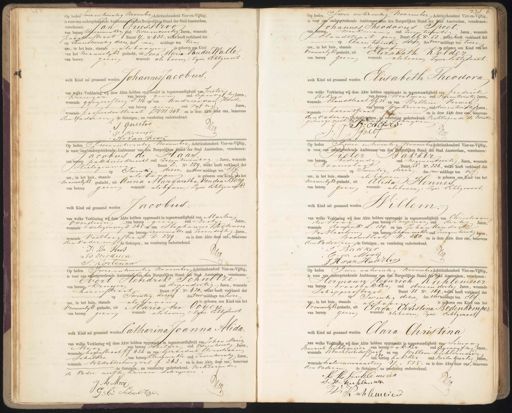 Op heden Twee en twintig November Achttienhonderd Vier-en-Vijftig is voor ons ondergeteekende Ambtenaar van den Burgerlijken Stand der Stad Amsterdam. verschenen: Jan Muiesstroi van beroep kleeremaker oud twee enveertig Jaren, wonende Jaardenstraat Buurt 4, No 432, wette heeft verklaard dat op Eenentwintig dezer des na middags ten tien ure, in het huis, staande als boven is geboren een Kind van het mannelijk geslacht, uit Lena Maria van der Walle van beroep geen wonende als boven: zine Echtgenoot vornden Johannes Jacobus. welk Kind zal get van welke Verklaring wij deze Akte hebben opgemaakt in tegenwoordigheid van Pieter kringer van beroep geen oud Eenenviftig Jaren, wonende govgerssteeg s 316 en van Andries van Hik van beroep geen oud vijftig Jaren wonende passeerderstraat HH 168. en is deze Alde abor ons, benevens den Vader en de Getuigen, na voorlezing onderteekend. J questro Plig P: Sirloegi Op heden Twee en twintig November Achttienhonderd Vier-en-Vijftig is voor ops ondergeteekende Ambtenaar van den Burgerlijken Stand der Stad Amsterdam, verschenen: Johannes Theodorus Sheet van beroep werkman oud zesentwintig Jaren, wonende Elandstraat gang Buurt GG No. 53, welke heeft verklaard dat op Eenen twintig dere des voormiddags ten twee ure, in het huis, staande als byven geboren een Kind van het vrouwelyke geslacht, uit Elizabeth Kolder van beroep geen wonende als boven zyne Echtgenoot welk Kind zal genaamd worden Elisabeth Theodora van welke Verklaring wij deze Akte hebben opgemaakt in tegenwoordigheid van vrederick van beroep werlman oud vierentwintig Jaren, Werkman on drie entwittigen wonende Elandstraat 9425, en van Willem Verweg dd harenstraatvannden J V2J: enders. an ee eet an den vader en Een der Gerogen, aa woorlezing onderteekend Verklarende de tweede getuigen fllt Veeg 7 As Van Hoor Op heden Tweeentwintig November Achtienhonderd Vieren-Vijtig is voor (ons)ondergeteekende Ambtenaar van den Burgerlijken Stand der Stad Amsterdam, verschenen Jacobus de Haas van beroep pakhuisknecht oud zesentwintig Jaren, wonende Huligenmeg Buurt D. No. 279, welke heeft verklaard, dat -op Twintig dezer des voormiddags ten Elf ure, in het huis, staande als hoven, is geboren een Kind van het mannelike geslacht, uit Anna Margaretha van den Berg van beroep geen wonende als blvem: zyne Echtgenoot. welk Kind zal genaamd worden Jacobus van welke Verklaring wij deze Akte hebben opgemaakt in tegenwoordigheid van Marten overduen van beroep geen oud zestig Jaren, wonende hierlegenwegD 241, en van Stephanus Kostenaar van beroep schoenmaker oud zesendertig Jaren, wonende Vaitbaagstraat D 279, en is deze Akte door ons, benevens den vader ing de Getuigen, na voorlezing onderteekend. I: De Hlaas 4149 B: Overduin I. ar Op heden Twee en twintig November chtienhonderd Vier-en-Vijtig is voor ons opdergeteekende Ambtenaar van den Burgerlijken Stand der Stad Amsterdam, verschenen: Pister Bakker. van beroep bediende oud negenenveertig Jaren, wonende Boomsloot Buurt N. No. 336, welke heeft verklaard dat op Twintig dezer des voormiddags ten vijf f is geboren, een Kind van he ure, in het huis, staande — als broven mannelyke geslacht, uit Alida Hennes van beroep geen wonende als boven: zyne Echtgenoot welk kind adl geraand vorden Willem. van welke Verklaring wij deze Akte hebben opgemaakt in tegenwoordigheid van Ewinchaan der Huay van beroep koopman oud dertig Jaren, wonende damruk L. 139. en van Johan Hendrik van Haarlem van beroep schoenmaker oud zevenentwintig Jaren wonende Boomsloot N. 380. en is deze akte door ons, benevens den vader en de Getuigen, na voorlezing onderteekend. J Bakker R9 C. de Morij J H van Haarlem Op heden Twee entwintig november Achtienhonderd Vier-en-Vijtig, is voor ons opdergeteekende Ambtenaar van den Burgerijken Stand ter Staad Amsterdam, verschenen: Evert Hendrik Schulize van beroep kruyer oud drieendertig Jaren, wonende harensttraat Buurt ff. No. 420, welke heeft verklaard dat op Twintig dezer des voor middags ten twee ure, in het huis, staande als haven is geboren een Kind van het vrouwelyk geslacht, uit Maria van Voije van beroep gien wonende als boven: zyne Echtgenoot welk Kind zal genaamd worden Catharina Joanna Alida van welke Verklaring wij deze Akte hebben opgemaakt in tegenwoordigheid van Johan Maria Ioog van beroep schilder oud vierentwintig Jaren, wonende hurenstraat f 424 en van Gerardus Christiaan Schultze, van beroep kleergmaker oud zesentwintig Jaren, wonende zachterburgwal ƒ 263, en is deze akte door ons, benevens de Getuigen, na voorlezing onderteekend. verklarende, de Vader niette kunnen schryven J M Mooij 19 G J:C: Schaltze. Op heden Twee en twintig November Achtienhonderd Vieren-Vijtig is voor ons ondergeteekende Ambtenaar van den Burgerlijken Stand der Stad Amsterdam, verschenen: Hermann Heinrich Kuhlemeier van beroep broadbakker oud drieen dertig Jaren, wonende schippersstraat Buurt U No. 169, welke heeft verklaard dat op Twintig dezer des voormiddags ten Elf ure, in het huis, staande als boven is geboren een Kind van het vrouwelyke geslacht, uit Clara Christina Bodenkemper van beroep geen wonende als boven zyne Echtgenoot welk kind aal getaamd worden Clara Christina van welke Verklaring wij deze Akte hebben opgemaakt in tegenwoordigheid van Siman Hemrich Kuhlemeur van beroep bakker oud Eenenviftig Jaren, wonende kbachtschedwstraat en van Willem Kichlemeur 2. 280 van beroep bakker oud vierenveertig Jaren, wonende halvenmaansteeg Y. 515. en is deze Akte door ond Benevens den vader en de Getuigen, na voorlezing onderteekend. H H Suklemeier E S: H: Keeseleman H Rukleueier