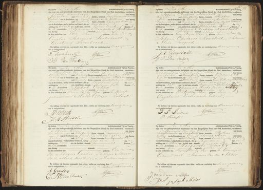 Op heden Zes Meiagt Achttienhonderd Vijfen-Veertig zijn voor ons ondergeteekende Ambtenaar van den Burgerlijken Stand der Stad Amsterdam, verschenen: trans Sweebroek van beroep Winkelier oud drie en zestig Jaren, wonende Korte princengracht 1d Grootvade van de Overledene, en Jacobus franciscu van Wattingen van beroep kanspreke oud zevenntwintig Jaren, wonende takotey N 10 bekend van de Overledene, welke hebben verklaard, dat op sier dene des- middags ten twaalf ure, in het huis, staande Vinkenstraat Kanton 4 No. 16, is overleden Johannes fvanculus Testerhoudt van beroep wonende aldaar in den ouderdom van twee Paar geboren Zui, zoon van Carolus Johannes Testerhoudt, en Geertruij Sweebroek. En hebben wij hiervan opgemaakt deze Akte, welke na voorlezing door Hiaaneven ons is onderteekend. K. Swabroes HJ Koenen S: Van Wattinge Op heden Zes Mer Achttienhonderd Vijfen-Veertig, E:: zijn voor onsondergeteekende Ambtenaar van den Burgerlijken Stand der Stad Amsterdam, verschenen: Johann Oberhard Ronstadt van beroep tingictie oud vijfenveertig Jaren, wonende Stofhuis van de Overledene, welke hebben verklaard, dat op Vierdeus des na middags ten zeven ure, in het huis, staande Ulfrechtsche straat Kanton 2 No. 3, is overleden Johann Oberhard Ronstadt van beroep wonende aldaar in den ouderdom van zijne Negen Jaar geboren hui, zoon van Johann Eberhard Ronstadt, en Johanna Alida Turgens, En hebben wij hiervan opgemaakt deze Akte, welke na voorlezing door de aangevien en ons is onderteekend. J. E. Konstadt. HJ. Koenen :I: Den Ouder — Op heden Z Mhii Achttienhonderd Vijf-en-Veertig, zijn voor ons ondergeteekende Ambtenaar van den Burgerlijken Stand der Stad Amsterdam, verschenen: Hendrik van den Bosch van beroep aanspreke oud zesenveertig Jaren, wonende Groote Castenbuuerst No7 bekend van de Overledene, en Johan Barthalomuus Strikker van beroep Als boven oud Tien zestig Jaren, wonende kleine Wettenburgenhaas Ngt heb van de Overledene, welke hebben verklaard, dat op vierder des na middags ten Elf ure, in het huis, staandeobunger dak Kanton 1, No. 3, is overleden Jacob Eken van beroep warmactur wonende aldaar in den ouderdom van drie en vyftig Jan geboren te Weesp. 9 gehuwd met Maria Latrina Bolwit En hebben wij hiervan opgemaakt deze Akte, welke na voorlezing door de aangevien ons is onderteekend. H J Koenen. H: VoBouk T:B: Strikken Op heden Zes Mei Achttienhonderd Vijfen-Veertig, bijn voor ons ondergeteekende Ambtenaar van den Burgerlijken Stand der Stad Amsterdam, verschenen: Dominicies Lambertus Luken van beroep aansprekes oud Negene veertig Jaren, wonende Nukstraat 3 324 bekende van de Overledene, en icker VrengeVer van beroepe geen oud tweeenveertig Jaren, wonende Groote Kattenburgershaa N 21 bekend van de Overledene, welke hebben verklaard, dat op drie deuyze des na middags ten vyf ure, in het huis, staande kepingracht hef van berdertigstanton No., is overleden Johanna Maria van der Steij van beroep gien wonende aldaar in den ouderdom van Een tachtig Suas geboren hui Ongehuwd verder niets bekend En hebben wij hiervan opgemaakt deze Akte, welke na voorlezing door de aangeneen ons is onderteekend. H.J Koenen. S L. Luken P: Kruege Op heden Zes cff Achttienhonderd Vijfen-Veertig, zijn voor ons ondergeteekende Ambtenaar van den Burgerlijken Stand der Stad Amsterdam, verschenen: Abram Gradee van beroep Hunsttandenmaker oud vifenveertig Jaren, wonende prunsengrach N 813. van de Overledene, en Cornelis Middelhoek van beroep barbier oud vyftig Jaren, wonende Riuweloogenhaar 181 van de Overledene, welke hebben verklaard, dat op Riesduus des voos middags ten twee ure, in hethuis, staande pronsengracht Kanton 2 No. B, is overleden; van beroep wonende in den ouderdom van geboren Een Joan van Abram Grader, in Maria Adriana Van den Maas, Welk kind aan ons als levelaaris aangegen En hebben wij hiervan opgemaakt deze Akte, welke na voorlezing door haanjeven ons is onderteekend. goodkeurende te danrhaling van dertien gedrekte woorden H Grader H JKoenen E Aliddelhoer Op heden Zisteg Achttienhonderd Vijfen-Veertig, zijn voor ons ondergeteekende Ambtenaar van den Burgerlijken Stand der Stad Amsterdam, verschenen: Joannes van den Akker van beroep Schuiten voordi oud achtveertig Jaren, wonende Sterfhuis Man van de Overledene, en Carel Jorpt Meier van beroep Zeeman oud Eenen veertig Jaren, wonende Ouden brugsteen W11 beken van de Overledene, welke hebben verklaard, dat op sien dius des na middags ten halftien ure, in het huis, staande, Engelshe steg Kanton 3. No. 25, is overleden Margarita Smit van beroep gien wonende aldaar in den ouderdom van Negenenveertig Jaar geboren te Groningen Gehuwd met Iounnes van den Akker En hebben wij hiervan opgemaakt deze Akte, welke na voorlezing door de aangezieen en ons is onderteekend. H.J. Koenen J. van den Akker Kar 1oseph Meier