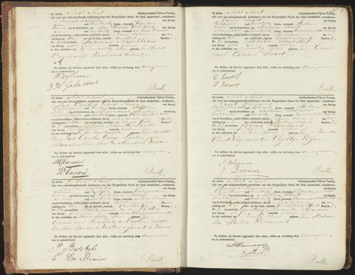 Op heden Acht April Achttienhonderd Vijfen-Veertig, zijn voor ons ondergeteekende Ambtenaar) van den Burgerlijken Stand der Stad Amsterdam, verschenen: Barend Kylewer van beroep geen oud vienen zeventig Jaren, wonende beseshun sekende van de Overledene, en Jan Hendrik Galasius van beroep geen oud vieren zeventig Jaren, wonende als booen bekende van de Overledene, welke hebben verklaard, dat op zeven dezi des na middags ten vier ure, in het huis, staande Amstel Kanton 1, No. 11895, is overleden Johanna Appelboom van beroep gun vr wonende aldari in den ouderdom van vyfentachtig Janr geboren te Hoorn Ongehuwd, Verder niets bekend En hebben wij hiervan opgemaakt deze Akte, welke na voorlezing door hiaangeven en ons is onderteekend. B. Fylewver J: H Galasins Deutzi Op heden Acht Apit Achttienhonderd Vijfen-Veertig zijn voor ons ondergeteekende Ambtenaar van den Burgerlijken Stand der Stad Amsterdam, verschenen: Casper Swint van beroep varkeprager oud zevenen zestig Jaren, wonende Stuthuis Man van de Overledene, en Serenman Swart van beroep Schoenmaker oud zevenveertig Jaren, wonende Vinkenstraat 183 zoon van de Overledene, welke hebben verklaard, dat op ses dezer des na middags ten Een ure, in het huis, staande Anzilierstraat Kanton 4: No. 99, is overleden Jacoba Boekstal van beroep geen wonende aldaar in den ouderdom van zeventig Jaar geboren hui, Gehuwd met Casper Swart. En hebben wij hiervan opgemaakt deze Akte, welke na voorlezing door de aangeven en„ ons is onderteekend. C. Swart I: Swart Der Op heden Acht Aput Achttienhonderd Vijfen-Veertig, zijn voor ons ondergeteekende Ambtenaar van den Burgerlijken Stand der Stad Amsterdam, verschenen: Zul Charles George Sandre van beroep Commissionan oud veertig7 Jaren, wonende, stuken Vaeder van de Overledene, en pJeanDanil Sandre van beroep kantoorbediende oud zevenveertig Jaren, wonende Otgrantspar N 33 oom van de Overledene, welke hebben verklaard, dat op zes deze, des voos middags ten half viie ure, in het huis, staande geldenscte kade Kanton 1 No. 5, is overleden Adelaide Seannette Sandre van beroep wonende aldaar in den ouderdom van ten Jaar Negen maarden geboren hier, dochter Van Luc Charlis George Sandre,en. Petronella Alida Sara van Medenbach Warkee En hebben wij hiervan opgemaakt deze Akte, welke na voorlezing door de aangeveren ons is onderteekend. LGandre Deutz D Landré Acht AApul zijn voor ons ondergeteekende Ambtenaar van den Burgerlijken Stand der Stad Amsterdam, verschenen: n Evert Weyrmars van beroep inkelknecht oud vijfenveertig Jaren, wonende Stuthuis Vader van de Overledene, en Johannes Doornaar van beroep boekkender oud zesendertig Jaren, wonende Vysendam 325 bekend van de Overledene, welke hebben verklaard, dat op Zeven dun des voor middags ten Zeven ure, in het huis, staande egetienacht Kanton 25 No. 102, is overleden Frans Weyrmars van beroep wonende aldan in den ouderdom van Vier Jaar geboren hui zoon van Evert Weysmars, en Engeltje Visser.- En hebben wij hiervan opgemaakt deze Akte, welke na voorlezing door de aangevee ons is onderteekend. E: Weyrmars Deu t J: Doornaar Acht April Achttienhonderd Vijf en-Veertg, zijn voor ons) ondergeteekende Ambtenaar van den Burgerlijken Stand der Stad Amsterdam, verschenen: Paulus Bortels van beroep bediende oud zevenndertig Jaren, wonende puilingarthuis bekende van de Overledene, en Cornelis de Bruin van beroep als boven oud zevenentwintig Jaren, wonende als bovenbekende van de Overledene, welke hebben verklaard, dat op zyg dezer des na middags ten tien ure, in hethuis, staandeOvertzonp Kanton„ No. 220, is overleden Wilhelmina van der Vasien van beroep geen wonende Gweede Weteringdwarsstraat 1062 in den ouderdom van twee en zestig Jaar geboren hui„ Gehuwd met Hendrik Musler, dochter Van wylen Ian van de Vasten, en Jannetje van duuren En hebben wij hiervan opgemaakt deze Akte, welke na voorlezing door de aangeven ons is onderteekend. P Bartels te De Bruin Deutz: Op heden Acht Aprl Achttienhonderd Vijfen-Veertig, zijn voor ons ondergeteekende Ambtenaar van den Burgerlijken Stand der Stad Amsterdam, verschenen: Hendrik Binnegurs van beroep Commitsionarr oud veerendertig Jaren, wonende O2 voorbrrgwar N 131 Jaan van de Overledene, en Anzong Sloot van beroep Ambtenar oud achtndereeg Jaren, wonende brouwersgracht W 137 bekend van de Overledene, welke hebben verklaard, dat op Zes dezig des na middags ten Een ure, in het huis, staande Utrechtsche straat Kanton 2. No. 91, is overleden Geertruij Maria van Reynen van beroep gen wonende aldaar in den ouderdom van zeventig Jaar geboren hui Widum van Pieter Wennegers En hebben wij hiervan opgemaakt deze Akte, welke na voorlezing door Eliranginenenn ons is onderteekend. HWennegers A„ Sloot Duits