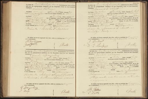 Op heden den Zevenentwintigsten December Achttienhonderd Drie en-Veertig zijn voor ons ondergeteekende Ambtenaar van den Burgerlijken Stand der Stad Amsterdam verschenen: Barend Kylenier van beroep geen oud tweeenzeventig Jaren, wonende Onde Aannen han Amstel behene van de na te noemen Overledene, en San Smit van beroep zien oud zevennzestig Jaren, wonende als baven bekende van de Overledene, welke hebben verklaard, dat op den Vyfen twintigsten duier des zoad middags ten elf ure, in het huis staande Smit Kanton 1, No. 4895 is overleden Catharina Ciisabeth Everhavdt van beroep gen wonende als boven in den ouderdom van Achtentacrtig Jaren eboren alhier Weduuw van Jacobus Dekker En hebben wij hiervan opgemaakt deze Akte, welke na voorlezing door de aangedoend ons is onderteekend. B. Kylerver Jan Smit Leutz. WVoo 124 Op heden den zevenetwintigsten December Achttienhonderd Drie-en-Veertig, zijn voor ons ondergeteekende Ambtenaar van den Burgerlijken Stand der Stad Amsterdam, verschenen: Joannes de Bast van beroep winkelier oud vierendertig Jaren, wonende ten Sterf huin Vader van de na te noemen Overledene, en Diedericus Everharduns Leupen van beroep aanspreker oud zevennveertig Jaren, wonende Cent roore dwarsstraat 132 bekende van de Overledene, welke hebben verklaard, dat op den Vieren twintigsten der des vanr middags ten half elfn ure, in het huis, Alida de Bast Laden A, N is oredete staande Roodingracht van beroep wonende als boven in den ouderdom van vier dagen Jaren, geboren alhier dochter van Joannes de Bast in Aaltje Vonk En hebben wij hiervan opgemaakt deze Akte, welke na voorlezing door de aangeven en ons is onderteekend, geed kenne de de doorheleg van droo gedrukte waarden J: De Bast Deutze D: C: Leuker Op heden den Zevenen twintigsten Decembr Achttienhonderd Drie-en-Veertig zijn voor ons ondergeteekende Ambtenaar van den Burgerlijken Stand der Stad Amsterdam, Verschenen: Cornelis Spanjerberg van beroep timmerman oud zes en vyftig Jaren, wonende ten stufhegin Gebuur van de na te noemen Overledene, en Johanns Krap van beroep aen baage oud zivenntwintig Jaren, wonende Eid Aentraag 29 bekende van de Overledene, welke hebben verklaard, dat op den vieren twintigsten deer des na middags ten drie ure, in het huis, staande kleine Oostenburgerstraat Kanton 1, No. 38, is overleden Catharina Maria Hedema van beroep wonende als boven in den ouderdom van vier Jaren, geboren alhier slochter van Johann August Fredrick Hlideme en Kathavina Maria Drieves En hebben wij hiervan opgemaakt deze Akte, welke na voorlezing door deaan vvn ons is onderteekend. C Spangerberg I. Wrap. Dentz. Op heden den evenistigsntigdten Deeembig Achttienhonderd Drie-en-Veertig zijn voor ons ondergeteekende Ambtenaar van den Burgerlijken Stand der Stad Amsterdam, verschenen: Barteld Roosma van beroep helbebendin oud Veertig Jaren, wonende Zeedst van de na te noemen Overledene, en Caril 1 94 Denis van beroep houtwerkir oud achtenvyftig Jaren, wonende kleins dattentuegenhuiBe van de Overledene, welke hebben verklaard, dat op den Vieren twintigsten drui des na middags ten Een ure, in het huis staande Leeduge Kanton No. 99, is overleden geboren Ein Zoon van heroep wonende in den ouderden van Jaren, Van Barteld Roosma en Iacomina Leeweina Steijnmerk, wies kind aan om als levenlaar t aangegeven. En hebben wij hiervan opgemaakt deze Akte, welke na voorlezing door de aangevenen ons is onderteekend. goed honmedle de Hoorheliy van Achttien aedvertign wnend B. Roosma Deutz. C Demi