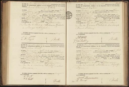 Op heden den Zevenen twintigsten December Achttienhonderd Drie- en-Veertig zijn, , voor ons ondergeteekende Ambtenaar van den Burgerlijken Stand der Stad Amsterdam, verschenen: Jacob Emannel Gobits van beroep gien oud zevenenzestig Jaren, wonende martien NL Soomvan de na te noemen Overledene, en Zwid Mejeo Missel van beroep geen oud zegenntwintig Jaren, wonende hout straat W5 Oom van de Overledene, welke hebben verklaard, dat op den Zes en twintigsten deus des na middags ten twee ure, in het huis, staande orte housstraat Kanton 1, No. 5, is overleden, Meijer Moses Gobiks van beroep wonende als bouen in den ouderdom van Een twaalfde Jaren, geboren alhier Zoon van Moses Salomon Gobits en Iansje Mossel: En hebben wij hiervan opgemaakt deze Akte, welke na voorlezing door dianig dee ons is onderteekend. 906e L: H: Mossel Deutz. WtZ 127 Op heden den Zevenen twintigsten decembir Achttienhonderd Drie- en-Veertig, zijn voor ons ondergeteekende Ambtenaar van den Burgerlijken Stand der Stad Amsterdam, verschenen: Dirk Keyzer van beroep barbir oud drieendertig Jaren, wonende Graans streekB 43 bekende van de na te noemen Overledene, en Johannes Jacobus Pan Balkom van beroep timmerman oud drieentwintig Jaren, wonende als berun 88 gebuwe van de Overledene, welke hebben verklaard, dat op den zes en twintigsten deer des vand middags ten zefien ure, in het huis, staande groote bekkentraat Kanton 4,N. 43, is overleden Hendrik Jan Lourins Kieskamp van beroep wonende als boven in den ouderdom van Een derde Jaren geboren alhier Zon van Gezina Elisabeth Kieskamp Wonende als boven En hebben wij hiervan opgemaakt deze Akte, welke na voorlezing door de aangeven en ons is onderteekend. D Keyzer DDeutz. J van Balkon Op heden den Zevenentwintigsten December Achttienhonderd Drie-en-Veertig zijn voor ons ondergeteekende Ambtenaar van den Burgerlijken Stand der Stad Amsterdam, verschenen; Anthon Kort van beroep timmerman oud Eenen veertig Jaren, wonende ten Sftuthuur Vadrg van de na te noemen Overledene, en Mbrecht Ferdinand Kort van beroep schoenmaker oud drieentwintig Jaren, wonende lana Genlsche deansstraat N191 heef van de Overledene, welke hebben verklaard, dat op den Zes entwintigsten duus des na middags ten zeven ure, in het huis staande langeleidsche dianstrante Kanton Z, No. 181, is overleden Anthon Frederik Hor, van beroep wonende als boven in den ouderdom van zeven kwart Jaren geboren alhier 7 Zoon van Anthon Kork, en Anna Wierman En hebben wij hiervan opgemaakt deze Akte, welke na voorlezing door diaangeveene ons is onderteekend. A: Korff A F: Korff Deutz. Op heden den zevenen twintigsten December Achttienhonderd Drie-en-Veertig, zijn voor ons ondergeteekende Ambtenaar van den Burgerlijken Stand der Stad Amsterdam verschenen: Dirk Bosman van beroep timmerman oud zevenndertig Jaren, wonende ten stuk huis Padur van de na te noemen Overledene, en Evers Evens van beroep metselaar oud vijfenveertig Jaren, wonende Wusper tlem W 32 bekend van de Overledene, welke hebben verklaard, dat op den dierentwintigsten deen des voor middags ten zes ure, in het huis, staande Groote Oogtenbuurgisstraat Kanton 1, No. 44, is overleden Dirk Bosman van beroep wonende als braen in den ouderdom van twee dere Jaren. geboren alhier „ zoon van Dirk Bosman en Wintje Wijne. En hebben wij hiervan opgemaakt deze Akte, welke na voorlezing door de aangevien„ ons is onderteekend. Dirk Posman F Cros Deurz.