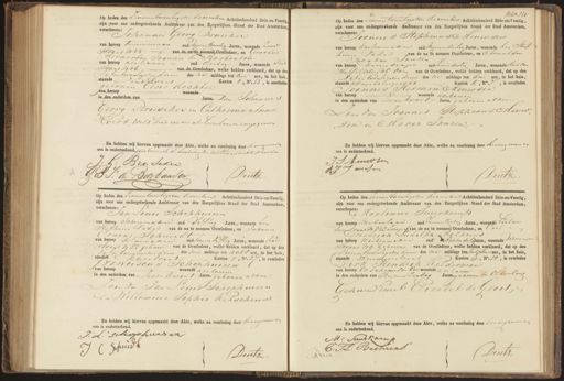 Op heden den Zevenentwintigsten Decembeer Achttienhonderd Drie en-Veertig zijn fvoor ons ondergeteekende Ambtenaar van den Burgerlijken Stand der Stad Amsterdam verschenen: Johannes Giorg Bruscker van beroep timmerman oud negenentwintig Jaren, wonende Zand straat BB van de na te noemen Overledene, en Gerardus Bernardus Ioannes de Barbanson van beroep als boven oud dertig Jaren, wonende stuk Itaes N16 van de Overledene, welke hebben verklaard, dat op den vijtentwintigsten deen des na middags ten tien ure, in het huis staande Jaren saat Kanton 1, No. 73, is overleden geboren Eene dochter van herhen wonende in den ouderdem van Jaren van Johannes Georg Bruseker en Catharina Anna Evers, welk kind aan ons als levenlaas en aangegeven En hebben wij hiervan opgemaakt deze Akte, welke na voorlezing door de zangen ons is onderteekend. goedkeurende de doorhalve van achttien gesrockte Woorlen J: L: Braseker G P J: de Berbansor Deutz. WB 13. Op heden den Zevenen twintigsten December Achttienhonderd Drie-en-Veertig zijn voor ons ondergeteekende Ambtenaar van den Burgerlijken Stand der Stad Amsterdam verschenen: Joannes Stephanus Meuwsen van beroep kastenmaker oud negenndertig Jaren, wonende ten Stuke huus Fadis van de na te noemen Overledene, en Arnoldus Jacobus Iansen van beroep koandrager oud zevendertig Jaren, wonende dut van Saseltstee W dom van de Overledene, welke hebben verklaard, dat op den Vyfen twintigsten deeer des na middags ten drie ure, in het huis, staande vangeliengracht Kanton 4e, No. 7, is overleden Joannes Herman Meuwsen van beroep wonende als boven in den ouderdom van Zlsen kwant Jaren, geboren alhier Zoon van Joannes Stephanus Meuw„ „sen en Maria Jansen.— En hebben wij hiervan opgemaakt deze Akte, welke na voorlezing door Heaang even en ons is onderteekend. J S Meuwsen dJ Jvensen Deutz. Op heden den Zevenentwintigsten december Achttienhonderd Drie-en-Veertig zijn voor ons ondergeteekende Ambtenaar van den Burgerlijken Stand der Stad Amsterdam, verschenen: Jan Louis Schophuizen van beroep schaenmaker oud vyftig Jaren, wonende ten Slufhmun Valis van de na te noemen Overledene, en Tohann Conrad Schmidt van beroep kleinnaker oud tweeen vyftig Jaren, wonende Kai straat B 25 gebuur van de Overledene, welke hebben verklaard, dat op den ten twintigsten dens des na middags ten acht ure, in het huis, staande gestraat Kanton 1, No. 27, is overleden franciscus Schophuisen van beroep wonende als boven in den ouderdom van Zeven kwant Jaren, geboren alhier Ivan van Jan Louis Schophuisen En Willemina Sophia Kekschande En hebben wij hiervan opgemaakt deze Akte, welke na voorlezing door de aangeveid en ons is onderteekend. J. L. Schophuis en 6 J C Shuw Deitz Op heden den zesen twintigsten december Achttienhonderd Drie-en-Veertig, zijn voor ons ondergeteekende Ambtenaar van den Burgerlijken Stand der Stad Amsterdam, verschenen: Martinus Suuerkamp van beroep metsehaar oud zeven zestig Jaren, wonende Gelan tienstraat N 232 zwaser van de na te noemen Overledene, en Cart Griedrich Ludalsch. Bachrens van beroep kastenmaker oud teachtendertig Jaren, wonende Welsinge straat n9 gebuum van de Overledene, welke hebben verklaard, dat op den Dieren twintigsten deer des na middags ten half vand ure, in het huis, staande Wieringenheek Kanton 3, No. 10, is overleden Dirk Hendrik Helderman van beroep opschekw van dee wonende als boven in den ouderdom van Negenen zestig Jaren, geboren te Oldenburg Gehuwd met Elisabet de Groot, En hebben wij hiervan opgemaakt deze Akte, welke na voorlezing door de aangevien en ons is onderteekend. M: Suskamp E: JL: Beeprens Deulz 13:„