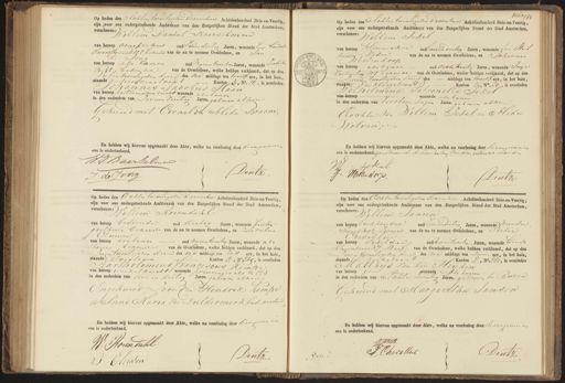 Op heden den Achten twintigsten December Achttienhonderd Drie en-Veertig, zijn fvoor ons ondergeteekende Ambtenaar van den Burgerlijken Stand der Stad Amsterdam; verschenen:) Willem Daniel Baerselman van beroep aanspreker oud Vierendertig Jaren, wonende lange Eerdut dwanssraar 195 bekene van de na te noemen Overledene, en Jan di Jong van beroep als boven oud negenen twintig Jaren, wonende Lutich In 35 bekende van de Overledene, welke hebben verklaard, dat op den Vif en twinligsten deer des na middags ten twaalf ure, in het huis, staandehudenstraat Kanton, 3, No. 14, is overleden Johannes Jacobus Haan van beroep klastenmaken knecht wonende Alsbarien in den ouderdom van Zevene Veertig Jaren, geboren alhier Gehuwd met Cornelia Ablida Braam. En hebben wij hiervan opgemaakt deze Akte, welke na voorlezing door de aangevieree ens is onderteekend. W:D: Baerselmur Deutz. I: de Jong Witor133 Op heden den Achten twintigsten Decembeer Achttienhonderd Drie- en-Veertig, zijn voor ons ondergeteekende Ambtenaar van den Burgerlijken Stand der Stad Amsterdam. verschenen: Willem Tekel van beroep kleermaker oud tweeendertig Jaren, wonende ten stuk Iunin Vader van de na te noemen Overledene, en Johannes Westendorp. van beroep als boven oud achten twintig Jaren, wonende Sonje Eetenttien Wd Eekende van de Overledene, welke hebben verklaard, dat op den Zevenen twintigsten denrl des middags ten twaalf ure, in het huis, staat de Doekboogstraal Kanton 34, No 20, is overleden Wilhelmina Petronella Tekel van beroep wonende als boven in den ouderdom van veertien dagen Jaren, geboren alhier Dochtee van Willem Tekel en Alida Wolven.— En hebben wij hiervan opgemaakt deze Akte, welke na voorlezing door de aangeven in ons is onderteekend. goedkerrende de door haling van drie gedracht nedenden tekel 7 J. Westendorp. Deutz. Op heden den Acht en twintigsten December Achttienhonderd Drie en Veertig, zijn voor ons ondergeteekende Ambtenaar van den Burgerlijken Stand der Stad Amsterdam, verschenen: Willem Rosendahl van beroep bediende oud dertig Jaren, wonende buiten genhuis bekende van de na te noemen Overledene, en Jacobus Cenven van beroep als boven oud negenntwintig Jaren, wonende als boven bekend van de Overledene, welke hebben verklaard, dat op den Zesen twintigsten der des na middags ten zes ure, in het huis, Saande Eevertoan Kanton 4, No 229, is overleden Bartholomeus Fanciscus Kemhe van beroep winkelknicht wonende prinsengracht n 583 in den ouderdom van dien en dertig Jaren geboren alhier Ongehuwd Zoon van Hendrik Kempe en Anna Maria Van Duldermerk, beide aonlend En hebben wij hiervan opgemaakt deze Akte, welke na voorlezing door de aangeven en ons is onderteekend 11: Rosendahl Deutz. J Cuuwen Op heden den Achten twintigsten december Achttienhonderd Drie en Verrtig zijn voor ons ondergeteekende Ambtenaar van den Burgerlijken Stand der Stad Amsterdam verschenen: Willem Iansen van beroep boekhouder oud zevenndertig Jaren, wonende Noordu Swaal 392 zwagis van de na te noemen Overledene, en Pieter Chevallier van beroep schildir oud zegenentwintig Jaren, wonende Gouds Eleemstran Wy Reyf van de Overledene, welke hebben verklaard, dat op den Zesen twintigsten deeer des na middags ten zeven ure, in het huis staande Kukstraat Kanton 2, No 280, is overleden Matthys van der Heyden van beroep geen wonende Als bonun in den ouderdom van Achtenzeventig Jaren, geboren te Buren Gehuwd met Margarelha Jansen En hebben wij hiervan opgemaakt deze Akte, welke na voorlezing door de aangevees en ons is onderteekend. WJansen. P: Cheralur. Deutz