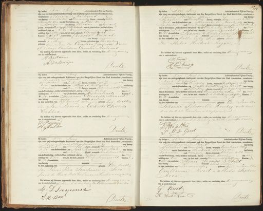 Op heden Drie Juni Achttienhonderd Vijfen-Veertig, zijn voor ons ondergeteekende Ambtenaar van den Burgerlijken Stand der Stad Amsterdam. verschenen: Adrianus Baitiaans van beroep aanspreker oud vierenveertig Jaren, wonende tioletten straat Woom van de Overledene, en Prie de Bruijn van beroep koetsier oud nyenveertig Jaren, wonende Anpelransto N119 bekende van de Overledene, welke hebben verklaard, dat op „ Een deuy des voor middags ten half twnal ure, in het huis staande bloempacht Kanton 4 NNo. 98, is overleden Fredrik Wiese of vange udenouderdem da Vier weken wonende aldaar van beroep geboren zui zoon van Christian Criedrich Wiese of vange Overleden in Cornelia Bastiaans En hebben wij hiervan opgemaakt deze Akte, welke na voorlezing door de aangevenen ons is onderteekend. A Bartiaans A De Bruijn Deutz. Op heden Drie Junij Achttienhonderd Vijfen-Veer zijn voor ons ondergeteekende Ambtenaar van den Burgerlijken Stand der Stad Amsterdam, verschenen: Carsten Wilhelm Thone van beroep kakslaar oud vienenvyftig Jaren, wonende boommarkt N 265 Heet van de Overledene, en Hendrik tenTwintg 12e van beroep, tpotheker oud drieenveertig Jaren, wonende prommstraat 327 Nup van de Overledene, welke hebben verklaard, dat op Eendertig Mii des Voor middags ten zes ure, in het huis, staande twintegracht n Kanton 4 No. 565, is overleden Jeanne Madelaine Birdier van beroep geen wonende aldaar in den ouderdom van Acht en zestig Jaar geboren hier Weduw van Pieter Hendrik Bazijn; En hebben wij hiervan opgemaakt deze Akte, welke na voorlezing door de aangeviegen ons is onderteekend. C:W: Mönd H Een Brinkge Deutz Juny Achttienhonderd Vijfen-Veertig, zijn voor ons ondergeteekende Ambtenaar van den Bargerlijken Stand der Stad Amsterdam, verschenen: Hendrik Benard van beroep aanspreks oud zesentwintig Jaren, wonende Kopte primingracht dom van de Overledene, en Hendrik Miiller van beroep kmper oud drieen dertig Jaren, wonende sinkenstraat W178 beneen van de Overledene, welke hebben verklaard, dat op twee dezer des na middags ten vier ure, in het huis, staande bonkenstraat Kanton 1 No. 159, is overleden Suianna Elisabeth Benard van beroep wonende aldaar in den ouderdom van Vyf kwart Jaan geboren hui dochter van Jan Benard, en Guibertu Elisabeth Eebbes.En hebben wij hiervan opgemaakt deze Akte, welke na voorlezing door de aengeveren ons is onderteekend. JJ Benaris HMuller Deutz Op heden Drie Junij Achttienhonderd Vijfen-Veertig, zijn voor ons ondergeteekende Ambtenaar van den Burgerlijken Stand der Stad Amsterdam, verschenen: DirkBahstra van beroep Schippens knicht oud Eenn zestig Jaren, wonende Vagtharen Nito van de Overledene, en hieker Mattheng de Groot van beroep aansprekes oud vijfenviftig Jaren, wonende Gpaote Kakenburgenhan N2 van de Overledene, welke hebben verklaard, dat op Een en dertig Mei des voor middags ten Zes ure, in het huis, staande op de Kattenburger Jachthann Kanton 1., No. 14, is overleden: van beroep wonende geboren Een zoon van in den ouderdom van Johanna Petronella Hombag, welk kundd aan ons als leveslaar is aangegeven, En hebben wij hiervan opgemaakt deze Akte, welke na voorlezing door de hangeven en ons is onderteekend. goedkeurende de doorhalig van Veertien gedriet woorden D Bvakstra P M: De Groot Deutz Achtienhonderd Vijf en-Veertig, zijn voor ons ondergeteekende Ambtenaar van den Burgerlijken Stand der Stad Amsterdam, verschenen: zion David Sonehoure van beroep muzijkant oud zeventig Jaren, wonende looyerburgergracht N 20 van de Overledene, en Jien Benedictie Bik van beroep geen oud zestig Jaren, wonende houtstraat W41 van de Overledene, welke hebben verklaard, dat op Reden des voor middags ten Vier ure, in hethuis, staande Vlooijenburgergracht Kanton 1, No. 20, is overleden — wonende— van beroep in den ouderdem aan geboren Eene dochte Van Louis Lion Jonepouse en Sara Iaac de Hars, Welkkinel aan ons als levenlaas is aangegeven En hebben wij hiervan opgemaakt deze Akte, welke na voorlezing door de hangeven en ons is onderteekend. goedkeurende de doorhaling van Veertien gedrichte woordin H: D. Sonenouse L.B. Bok Deutz. Op heden Drie Juni Achttienhonderd Vijfen-Veertig, zijn voor ons ondergeteekende Ambtenaar van den Burgerlijken Stand der Stad Amsterdam, verschenen: uulanme Biet van beroep Hetslaar oud tweeendertig Jaren, wonende iinstraat Vyfig Sader van de Overledene, en Hendrik Wouterson van beroep Opherman oud achtendertig Jaren wonende klsbaren N 154 renu. van de Overledene, welke hebben verklaard, dat op Twee duur des na middags ten tien ure, in het huis, staande Kornengracht by Eentegang Kanton 3. No. 1555, is overleden Henri Saques Briet van beroep wonende als de ouder in den onderdom van Zesmaandig geboren hui Jaan Van Guillaume Briet en Alida Sophia Boon En hebben wij hiervan opgemaakt deze Akte, welke na voorlezing door de aangevers en ons is onderteekend. G: Briet H. Wouderson Deutz