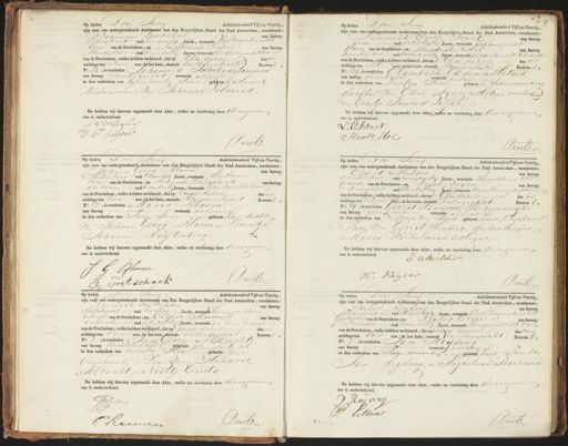 Op heden Drie Juni Achttienhonderd Vijfen-Veertig, zijn voor ons ondergeteekende Ambtenaar van den Burgerlijken Stand der Stad Amsterdam, verschenen: Johannes Vinkebas van beroep Fabrykant oud zevenveertig Jaren, wonende Voetboogstraat 115 buur van de Overledene, en Jan Frederik Keyter van beroep Winkelier oud zevenndertig Jaren, wonende OZachterbagwalk 26 behord van de Overledene, welke hebben verklaard, dat op Een dezer desin middags ten zeven ure, in het huis, staande Voetboogstraat Kanton 3 No. 13, ss overleden Johannes Jacobus Sanmen van beroep Smidiknecht, wonende aldaar in den ouderdom van vijfen zeventig Jaar geburen te Marreck Weduwenaar van Johanna PolmansEn hebben wij hiervan opgemaakt deze Akte, welke na voorlezing door de aangeveren ons is onderteekend. J Vinkelo J F Cuysen Deutz Opheden Drie Junij Achttienhonderd Vijfen-Veertig, zijn voor ons ondergeteekende Ambtenaar van den Burgerlijken Stand der Stad Amsterdam, verschenen: Lammert Claasse Swart van beroep geen oud achtenzestig Jaren, wonende gekkengracht Oom van de Overledene, en Hendrik Mol van beroep aanspreker oud achtenveertig Jaren, wonende bikkurstraat 1156 berende van de Overledene, welke hebben verklaard, dat op Een dezie des no middags ten elf uren in het huis, staande Neeenden derte Kanton 3, No. 140, is overleden Elisabeth Casen Metus van beroep dienst gode wonende aldaar in den ouderdom van Veertien Jane geboren te Schiermonnskoop dochter van Edse Jann Meters overleden en Grietje JoukesVisser; En hebben wij hiervan opgemaakt deze Akte, welke na voorlezing door de aangevenen ons is onderteekend. L.CSwart Hendr dol Der Op heden Achttienhonderd Vijfen-Veertig, zijn voor ons ondergeteekende Ambtenaar van den Burgerlijken Stand der Stad Amsterdam, verschenen: Johann Georg Bloem van beroep Metselaan oud tweeendertig Jaren, wonende stufhuis Vader van de Overledene, en Hendrik pitgeheek van beroep als baven oud achtentwintig Jaren, wonende Cozenstraat B4 Eeku van de Overledene, welke hebben verklaard, dat op twee dezer des na middags ten twee ure, in het huis, staande tappierstraat Kanton, No. 77, is overleden Maria Bloem van beroep wonende aldaar in den ouderdom van Zeven Jaar geboren hier dochter Van Johann Georg Broem en Vrouwtje Johanna Ruijtenberg En hebben wij hiervan opgemaakt deze Akte, welke na voorlezing door de aangeveng ons is onderteekend. J G Bloem Deutz. witscheek Op heden Drie Junij Achttienhonderd Vijfen-Veertig, zijn voor ons ondergeteekende Ambtenaar van den Burgerlijken Stand der Stad Amsterdam, verschenen: Eldert Mulder van beroep aanmeker oud tweeenveertig Jaren, wonende Spugelstraat N135 bekende van de Overledene, en, harel Keyser van beroep kruijer oud vien vyftig Jaren, wonende Kromellenboogsten Wlbekend van de Overledene, welke hebben verklaard, datop Een dezer des na middags ten Zeven Jare, in het huis, staande palmgracht Kanton 4. No. 70, is overleden Gerrit Hendrik Siekenmeuer van beroep gien wonende, aldaar in den ouderdom van Zeventien Jaar geboren hun, Ongehuwd Zoon van Gerrit Hendrik Siekenmeyer en Maria Wilhelmina Meijer, — En hebben wij hiervan opgemaakt deze Akte, welke na voorlezing door dezengevenen ons is onderteekend. E: Mulder K- Keijsen Deutz Op heden Drie Junij Achttienhonderd Vijfen-Veertig, zijn voor ons ondergeteekende Ambtenaay van den Burgerlijken Stand der Stad Amsterdam, verschenen: rederik van al van beroep Tuphoost oud dertig Jaren, wonende binnen gasthuis bekende van de Overledene, en Casper Reeman van beroep bediende oud vyfn vyftig Jaren, wonende als boven bekende van de Overledene, welke hebben verklaard, dat op twee dezer des na middags ten Vier ure, in hethuis, staande achten Grigrsvat Kanton 1 No. 1, is overleden Jan George ASbrecht van beroep kastenmaker wonende klerenslaats No in den ouderdom van twintig Jaar geboren hierEngehuwd, Joon Van, Hendrik Albrecht, en Neertje Gerrits En hebben wij hiervan opgemaakt deze Akte, welke na voorlezing door de aangeveneg ons is onderteekend. G Zalen 1577 Deutz. C Reeman Op heden Drie Junij Achttienhonderd Vifen-Veertg, zijn voor ons ondergeteekende Ambtenaar van den Burgerlijken Stand der Stad Amsterdam, verschenen: Pieter Reyding van beroep schoenmaker oud twieen zestig Jaren, wonende Oude logenstraast 35 nostvadrr van de Overledene, en Pieker Eekma van beroep Teeman oud tweeendertig Jaren, wonende rozingracht 2 576 Oom van de Overledene, welke hebben verklaard, dat op twee dezer des vaor middags ten vier ure, in het huis, staande Vinjeliengracht Kanton 4 No., is overleden Jan Reiding van beroep wonende aldaar in den ouderdom van zwenmaandengeboren hur zoon van Jan Reyding, en Magdalena Beekman En hebben wij hiervan opgemaakt deze Akte, welke na voorlezing door de hangenee ons is onderteekend. P Reijorr Pietma Diutz :