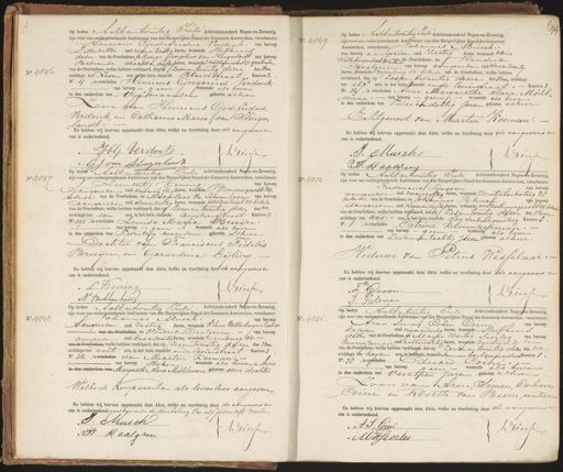 1 x Op heden Acht en twintig Juli Achttienhonderd Negen-en-Zeventig zijn voor ons ondergeteekende Ambtenaar van den Burgerlijken Stand der Gemeente Amsterdam, verschenen Henricus Godeeridus Verdonk. van beroep Letterzetter oud negen entwintig Jaren, wonende sterfhuis vader van de Overledene, en George Josephus van Slingerlandt van beroep Bediende oud acht en vijftig aren, wonende rechtboomsloot 17. groot vader van de Overledene, welke hebben verklaard, dat op zevenentwintig dezer des voor middags ten Zeven ure, in het huis, staande Bloedstraat Kanton 3. No. 4, is overleden Henricus Gregorius Verdonk van beroep - geeen wonende als boven in den ouderdom van vijfmaanden geboren alhier Zoon van Henricus Godefridus, Verdonk, en Catharina Maria van Slinger, landt En hebben wij hiervan opgemaakt deze Akte, welke na voorlezing door de aangeversen ons is onderteekend. 6 Ibl. verdonk vDriessen 1 „0 J v.Un. lenzesleneW 4849 9W Op heden Achtentwintig Juli Achttienhonderd Negen-en-Zeventig zijn voor ons ondergeteekende Ambtenaar van den Burgerlijken Stand der Gemeente Amsterdam, verschenen: Johannes Musch. van beroep aanspreker oud zestig Jaren wonende klan van de Overledene, en Hendrik Wittenburgerstraat 40 bekende Gaalgreen van beroep aanspreker oud drieen zeventig Jaren, wonende rapenburg 83. bekende van de Overledene, welke hebben verklaard, dat opzesen twintig dezer des voor middags ten elf ure, in het huis, staande ande Looierstraat Kanton 3 No. 36, is overleden Anne Margarethe Clara Möhl. „mann van beroep geen wonende als boven in den ouderdom van twee en dertig jaren geboren alhier. Echtgenoot van Marten Koeman. En hebben wij hiervan opgemaakt deze Akte, welke na voorlezing door de aangevers en ons is onderteekend. uscht P: MMa Dreessen J No. 4847 Op heden Acht entwintig Juli Achttienhonderd Negen-en-Zeventig, zijn voor ons ondergeteekende Ambtenaar van den Burgerlijken Stand der Gemeente Amsterdam, verschenen A Leendert Koning. van beroep n Zanspreker oud drieenvyftig Jaren, wonende Nrouwers gracht 214. bekende van de Overledene, en Naesolaas van Schoonhoven van beroep aanspreker oud drieenzestig Jaren, wonende Westerstraat 55 bekende — van de Overledene, welke hebben verklaard, dat op zeven en twintig dezer des na middags ten een ure, in het huis, staande Anjeliersstraat Kanton 4 No. 195, is overleden Louisa Maria Bruijn van beroep — geeen wonende als boven in den ouderdom van Twintig maanden geboren alhier Dochter van Franciscus Fidelis Bruijn, en Gerardina Eijling.En hebben wij hier van opgemaaat deze akte, welke na voorlezing door de aangevers en ons is onderteekend. L Koning Dreessen. . - . . . N van Schoonhoven. No. 4850 Op heden Achtentwintig Juli Achttienhonderd Negenten-zeventig zijn voor ons ondergeteekende Ambtenaar van den Burgerlijken Stand der Gemeente Amsterdam, verschenen redericus Goosen van beroep aanspreker oud zesenvijftig Jaren, wonende Hleintjehoeksteeg 28 bekende van de Overledene, en Johannes Pyleman van beroep aanspreker oud negen envyftig Jaren, wonende oostenburgergracht 84 bekend van de Overledene, welke hebben verklaard, dat opzesentwintig dezer des voor middags ten zes. - ure, in het huis, staande Vredenbirgersteeg Kanton 3 No. 1, is overleden Catrina Klumperman: van beroep — geen wonende als boven. in den ouderdom van zesen en tachtig jaren sboren alhier. D Weduwe van Petrus Wesselaar. En hebben wij hiervan opgemaakt deze Akte, welke na voorlezing door de aangevers en ons is onderteekend. t Doven 1 ierten leman J„ Inler No. 4848. Op heden Achtentwintig Juli Achttienhonderd Hegen-en-Zeventig zijn voor ons ondergeteekende Ambtenaar van den Burgerlijken Stand der Gemeente Amsterdam, verschenen Johannes Musch. van beroep 6 O Aanspreker oud zestig Jaren, wonende Kleine wittenburgerstraat 40 -van de Overledene en Hendrik Daalgreen. van beroep aanspreker oud drie enzeventig Jaren, wonende rapenburg 83. van de Overledene, welke hebben verklaard, dat op zesen twintig dezer des voor middags ten acht ure, in het huis, staande oude Looierstraat Kanton 3 No. 36, is overleden van Marten Koeman. — van beroep stoker wonende als boven en Anne in den ouderdem van Margarethe, clara Möhlmann geboren eene dochter Welke de Komparanten als levenloos aangeven En hebben wij hiervan opgemaakt deze Akte, welke na voorlezing door de aangevers en ons is onderteekend goedkeurende de doorhaling van elf gedrukte woorden „1 J: Musch Driessen H Waalezeen No. 4851. Op heden Achtentwintig Juli Achttienhonderd Negenten-Zeventig zijn voor ons ondergeteekende Ambtenaar van den Burgerlijken Stand der Gemeente Amsterdam, verschenen: tran Simon Cohen Corni van beroep kapper oud negenendertig Jaren, wonende sterfhuis vader van de Overledene, en Meyer Hartog Sierles van beroep Commissionmain oud achtendertig Jaren, wonende koestraat 30. bom van de Overledene, welke hebben verklaard, dat op zes en en twintig dezer des na middags ten negen ure, in het huis, staande Binnen bantammerstraat kanton 1 No. 28, is overleden duard Corni van beroep geeen wonende als boven in den ouderdom van veertien jaren geboren alhier zoon van Aron, Simon, Cohen Corni en Rosette van Beem, overleden En hebben wij hiervan opgemaakt deze Akte, welke na voorlezing door de aangevers en ons is onderteekend. AI. Cou Driessen MHierles