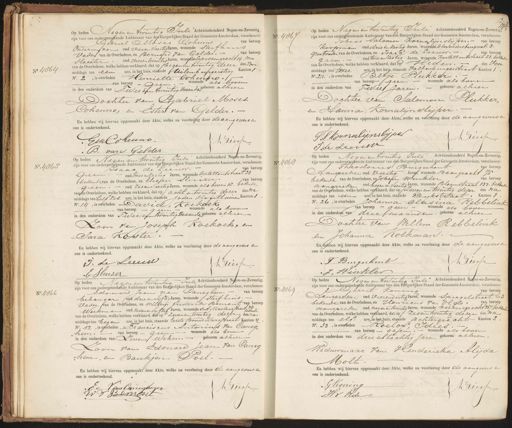 No. 4865 Op heden Negenentwintig Juli Achttienhonderd Negen-en-Zeventig, zijn voor ons ondergeteekende Ambtenaar van den Burgerlijken Stand der Gemeente Amsterdam, verschenen: ssaac de Leeuw. van beroep 49. Geeen. oud tweeenzestig Jaren, wonende korteHoutstraat 23 bekende van de Overledene, en Eliazer Sluizer van beroep geeen. oud zesenveertig Jaren, wonende als boven 18. bekende 1 van de Overledene, welke hebben verklaard, dat op achtentwintig dezer des na middags ten half zes ure, in het huis, staande Joden Houttuiner Kanton 1 No. 14, is overleden David, Koekoek van beroep — geen wonende als boven in den ouderdom van Twee en twintig maanden geboren alhier zoon van Joseph Koekoek, en Sara Koster. En hebben wij hiervan opgemaakt deze Akte, welke na voorlezing door de aangevers en ons is onderteekend. de Leeuw I CDreesse. uizer fo. 4868 1 Op heden Negen entwintig Juli Achttienhonderd Negen-en-Zeventig zijn voor ons ondergeteekende Ambtenaar van den Burgerlijken Stand der Gemeente Amsterdam, verschenen: Theodorus Burgerhout van beroep Aanspreker oud veertig Jaren, wonende Baangracht 75 van beroep bekende van de Overledene, en Johan Winkler Jaren, wonende Bloemstraat 133. bekende oud negen en Veertig aanspreker van de Overledene, welke hebben verklaard, dat op Zeven en twintig dezer des na middags ten eeen ure, in het huis, staande Dykstraat. Kanton 7 No. 26, is overleden Johanna Clasina Rebbelink van beroep - geen wonende als boven in den ouderdom van drie maanden geboren alhier Dochter van Willem Rebbelink en Johanna Kolkman. En hebben wij hiervan opgemaakt deze Akte, welke na voorlezing door de aangeversen ons is onderteekend. T. Burgerhout Zreesse kler. No. 4866 Op heden Negen en twintig Juli Achttienhonderd Negen-en-Zeventig, zijn voor ons ondergeteekende Ambtenaar van den Burgerlijken Stand der Gemeente Amsterdam, verschenen Edonard Jean van Lancqhem. van beroep behangeroud drie envijftig Jaren, wonende sterfhuis. vader van de Overledene, en willem Frederik Bemont van beroep Werkman oud zevenenvyftig Jaren, wonende suit Nicolaasstraat, 24 bekende van de Overledene, welke hebben verklaard, dat op zeven en twintig dezer des na middags ten negen ure, in het huis, staande Eerste Boomdwarsstraat Kanton 4 No. 12, is overleden Franciscus Antonius van Cancq„ hem. van beroep geen wonende als boven in den ouderdom van Zeven weken geboren alhier zoon van Edouari Jean van Cancq „hem, en Baukjen Poel- En hebben wij hiervan opgemaakt deze Akte, welke na voorlezing door de aangevers en ons is onderteekend. Ed Van Conrighen Dieessen WT „gement