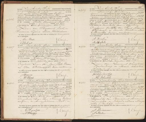 in den ouderdom van Eenendertig Jaren geboren alhier Ongehuwd: dochter van Frans Alestander Tambach, en Louisa Christina Maria Mientjes beiden overleden En hebben wij hiervan opgemaakt deze Akte, welke na voorlezing door de aangevers en ons is onderteekend, J: Brchken 1„ b Diesten B Slaghek 1 No. 4817. 0 1 P:J Last Op heden zes en twintig Juli Achttienhonderd Negen-en-Zeventig zijn voor ons ondergeteekende Ambtenaar van den Burgerlijken Stand der Gemeente Amsterdam, verschenen van beroep Jan Pieter Daam. 2 Aanspreker oud achtenveertig Jaren, wonende noordermarkt 34.- Heef van de Overledene, en klaas koop. van beroep aanspreker oud drieentwintig Jaren, wonende Noorderkerkstraat 16 bekende van de Overledene, welke hebben verklaard, dat op ifen twintig dezer des voor middags ten vier ure, in het huis, staande Laurierstraat Kanton 3 No. 104, is overleden Adam, Daam. van beroep geen wonende als boven in den ouderdom van Een en zeventig jaren geboren alhier Ongehuwd zoon van Jan Pieter. Daam en Ida Stellenwerf, beiden overleden En hebben wij hiervan opgemaakt deze Akte, welke na voorlezing door de aangevers en ons is onderteekend. J Daam o ELriessen oop No. 4820 Achttienhonderd Negen-en-Zeventig Op heden zesentwintig Iuli. zijn voor ons ondergeteekende Ambtenaar van den Burgerlijken Stand der Gemeente Amsterdam, verschenen Harmanus Christiaan Voordenberg. van beroep metselaar oud vierenventigaren, wonende sterfhins vader van de Overledene, en Antoniss Gerardus Debacker van beroep aanspreker oud Eenendertig Jaren, wonende Lindengracht 88 bekend van de Overletene, welke hebben verklaard, dat op vijfentwintig dezer des na middags ten een ure, in het huis, staande Elandsstraat Kanton 3. No. 61., is overleden Gerhardus Franciscus Voor den, berg. van beroep geen wonende als boven in den ouderdom van zestien maanden geboren alhier Zoon van Hermanus Christiaan Voordenberg. en Maria Christina Serz. En hebben wij hiervan opgemaakt deze Akte, welke na voorlezing door de aangeversen ons is onderteekend. HC Voor den Een . . . ... CDriessen AG Debacher No. 4818 1 Op heden zesen twintig Juli Achttienhonderd Negen-en-Zeventig „ zyn voor ons ondergeteekende Ambtenaar van den Burgerlijken Stand der Gemeente Amsterdam, verschenen van beroep Gerhard Heintges Aanspreker oud Eenenzeventig Jaren, wonende Egelantiersgracht 130. bekende van de Overledene, en Albertus reintges van beroep Beeldhouwer oud zesendertig Jaren, wonende Warmoesstraat 118 bekende van de Overledene, welke hebben verklaard, dat op vierentwintig dezer des na middags ten tie ure, in het huis, staande alhier in Kanton 1 No. -, is overleden Johannes Willebrordus, Verbooms van beroep werkman wonende kleine Wittenburgerstraat in den ouderdom van zeven en twintig jaren geboren alhier 7o Ongehuwd zoon van Theunis Verbooms overleden, en Annan Juliana Poot. En hebben wij hiervan opgemaakt deze Akte, welke na voorlezing door de aangevers en ons is onderteekend goedkeurende de doorhaling van vyf gedruktewoorden „G Heintges Driecsen A. Heintges No. 4821 Op heden Zesentwintig Juli Achttienhonderd Negen-en-Zeventig zijn voor ons ondergeteekende Ambtenaar van den Burgerlijken Stand der Gemeente Amsterdam, verschenen Johannes Drieman. van beroep 3 Aanspreker oud tweeenviftig Jaren, wonende Langestraat 47 bekende van de Overledene, en Johannes van Schoonhoven van beroep aanspreker oud Eenendertig Jaren, wonendeBBinnen Wieringerstraat bekende van de Overledene, welke hebben verklaard, dat op vijfentwintig dezer des na middags ten acht ure, in het huis, staande anzak. - Kanton 4 1 „ No. 27, is overleden Bernardina Peliite Maria zuijks van beroep geen wonende als boven in den ouderdom van Tienweken geboren alhier Dochter van Bernardus Adrianus Duijks en Josepha Maria Marga, „retha Buhrs. En hebben wij hiervan opgemaakt deze Akte, welke na voorlezing door de aangeveis en ons is onderteekend. J Drieman Driessen J. v Schumken x