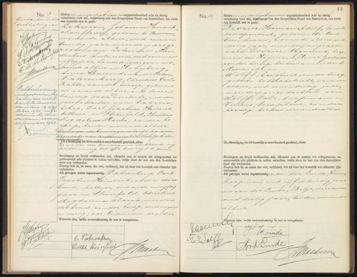 3 Echtscheiding. uitgesprokur bij vanmis der rectl. bank te Amster- dam dan 1906. tober 1961, inge schreven te am- sterdam, Leden 25. annari 1962. 6 Uel Heden eenen dertig tugentig negentienhonderd acht en dertig verschenen voor mij, Ambtenaar van den Burgerlijken Stand van Amsterdam, ten einde een huwelijk aan te gaan: Lohman, Johannes Hendrik chanffeur, geboren te Bussum wonende alhier, oud zeven en twintig jaar, meerderjarige drikus Antonius, oud zeven en zoon van: Lohman, Hen¬ vijftig jaar, handels reiziger, wo niende alhier en Hooijberg Anna Barendma, overleden, en Fahrenkrug, Christine Carla „ Kahte, zonder beroep, geboren „en wonende alhier, oud twee en twintig jaar Duitsche, meerder jarige dochter van: Pahren, krug, Carl Jonchuur Hemrich kellner en Steinfeld, Christine Mag dalena Maria, zonder be roep, beiden wonende alhier De des brindegemsheeft bij au thentseke rpte toestemming tot dit huwelijk ver De afkondiging tot dit huwelijk is onverhinderd geschied, alhier. 8 De vader des bruidegoms verklaarde toestemming tot dit huwelijk te geven, Bruidegom en bruid verklaarden mij, elkander aan te nemen tot echtgenooten en getrouwelijk alle plichten te zullen vervullen, welke door de wet aan den huwelijken staat zijn verbonden. Daarop heb ik, in naam der wet, verklaard, dat zij door het huwelijk aan elkander zijn verbonden. Als getuigen waren tegenwoordig: Sahrenking, Cart Joachim Hemrich, vader der bruid, kellner, oud acht en vijftig jaar en Stemfeld, Christine Magdalena Maria, moeder der bruid, zonder beroep, oudnegen in veertig jaar, beiden wonende alhier. Waarvan akte, welke overeenkomstig de wet is voorgelezen. No. 24 Heden eenendertig Augustus negentienhonderd acht en dertig verschenen voor mij, Ambtenaar van den Burgerlijken Stand van Amsterdam, ten einde een huwelijk aan te gaan: Devries, Herman Adolf, handels„ correspondent, geboren te Oud Vroenhoven, wonende alhier, oud dertig jaar, meerderjarige zoon van: Devries, Slignumd, koop„ man en Heijmans, Elvire Gerbrude zonder beroep, beiden wonende te Maartricht Wolff, Engene, zonder beroep, geboren te Maastricht, wonende alhier, oud eenendertig jaar, meerderjarige dochter van: Wolff, Sali, koopman en Vissers, Seraphine, zonder beroep, beiden wonende alhier. De afkondiging tot dit huwelijk is onverhinderd geschied, alhier. Bruidegom en bruid verklaarden mij, elkander aan te nemen tot echtgenooten en getrouwelijk alle plichten te zullen vervullen, welke door de wet aan den huwelijken staat zijn verbonden. Daarop heb ik, in naam der wet, verklaard, dat zij door het huwelijk aan elkander zijn verbonden. Als getuigen waren tegenwoordig: van der Linde Herman, koopman, oud vijf er twintig jaar en van der Linde, Betje, secretaresoe, oud dertig jaar, beiden wor — alhier. porvan akte, welke overeenkomstig de wet is voorgenegen. Joet erf Sop b. Tahrensr 634 x A A Edd Stempeld 4 Maatici Nram tte. welke overeenbmetig de voer is voorncherop Larmli vC 17 - J. Id. pinde H. Wolff
