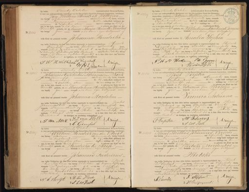 Egelantiersstraat No 159 welke heeft verklaard dat ORE op achttien dezer des voormiddags ten Een ure, in het huis, staande als bovenzrgt is geboren een Kind. van het Vrouwelijk geslacht, uit Wilhelmina Geertruida Jurgens van beroep geen wonende als boven: zyne Echtgenoot welk kind aal genaamd worden Amalia Vophia van welke Verklaring wij deze Akte hebben opgemaakt in tegenwoordigheid van Hendrik bggers van beroep schilder oud vierendertig Jaren wonendeMolenpad 22 en van Hermanus van Wijk van beroep Metselaar oud negenentwintig Jaren wonende Korte Leidschedwarsstraat 163 en is deze akte door ous, benevens Den vaderen de Getuigen, na voorteiing onderteekend P M vd Huk7/0 C91 Driess gers 3 H van Wijk No. 11805 Op heden Twintig Octber Achttienhonderd Desen-en-Tachtig, is voor ons ondergeteekende Ambtenaar van den Burgerlijken Stand der Gemeente Amsterdam, verschenen: Johannes Gysbertus Adrianus van Bork, van beroep Timmerman oud zesen veertig Jaren, wonende Laurierstraat No. 27, welke theeft verklaard dat op achttien dezer des na middags ten zes ure, in het huis, staande als boven, is geboren een Kind van het vouwelijk geslacht, uit Magdalena Hendrika Schwarze van beroep geen wonende als boven: zijne Echtgenoot welk Kind uit genaamd worden Johanna Magdalena van welke Verklaring wij deze Akte hebben opgemaakt in tegenwoordigheid van Jacobus Johannesslell van beroep geen oud Tweeendestig Jaren, wonende Luurierstraat 19 en van Casper Cimpel van beroep Poelier oud zesentwintig Jaren, wonende Lingel S54 en is deze Akte door ons, benevens Den Vaderen de Getuigen, na voorlezing onderteekend. J van Bork 2 J.J. van Hel Dreessen 3 C Gimpel No. 11811 Op heden Twintig October Achttienhonderd Zeven-en-Tachtig is voor ons ondergeteekende Ambtenaar van den Burgerlijken Stand der Gemeente Amsterdam, verschenen: Susse Terptra van beroep Kerkman oud Eenendertig Jaren, wonende Egelantiersstraat No. 84, welke heeft verklaard da op zeventien dezer des middags ten Twaalf ure, in het huis, staande als byoen, is geboren een Kind van het vrouwelijk geslacht; uit Adriana van Weelden. van beroep geen wonende als boven: zijne Echtgenoot welk Kind zal genaamd worden Peronica Adriana van welke Verklaring wij deze Akte hebben opgemaakt in tegenwoordigheid van Henrd Behrens van beroep winkelier oud Veertig Jaren, wonende Anjeliersstraat 75 en van Sybrand ter koele van beroep werkman oud dertig Jaren, wonende Guidsbliemstraat 30 en is deze akte door ons, benevens en Vaderen de Getuigen, na voorlezing onderteekend 2 H Betrens Dreessen S Terpstra Cter Kalle No. 11807 Op heden Twintig Oenten Achttienhonderd Zeven-en-Tachtig is voor ons ondergeteekende Ambtenaar van den Burgerlijken Stand der Gemeente Amsterdam, verschenen: Willem Hendrik van der Vlugt- oud zevenendertig Jaren/ wonende van beroep Wekman Anjeliersstraat No. 19, welke heeft verklaard dat op negentien dezer des vooormiddags ten Vijf ure, in het huis, staande als boven is geboren een Kind van het kannelijk geslacht, uit Hendrika ter Koele van beroep geen wonende als boven, zijne Echtgenoot welk Kind zal genaamd worden Johannes Fredericus. van welke Verklaring wij deze Akte hebben opgemaakt in tegenwoordigheid van Dirk ter Koele van beroep schilder oud negenen vyftig Jaren, wonende Lindengracht 93 - en van Sijhand ter Koele van beroep,werkman oud dertig Jaren, wonendeGuuas bloemstraat 30 en is deze Akte door ons, benevens Len Vaderen de Getuigen, na voorlezing onderteekend. 2 D ter Kroeke Driessen v d Vluyt 3S ter Kelle No. 11813 Op heden Twintig October Achttienhonderd teven-en-Tachtig, is voor ons ondergeteekende Ambtenaar van den Burgerlijken Stand der Gemeente Amsterdam, verschenen: Karel Nicolaas Johannes, Vermie van beroep voerman oud vijfendertig Jaren, wonende No155, welke heeft verklaard dat Laurierstraat des vomiddags ten Een achttien dezer— ure, in het huis, staande als boven, is geboren een Kind van het Vrouwelik geslacht, uit Nietske Noordenbos van beroep geen wonende als bovene zijne Echtgenoot welk kind zal genaamd worden Wietske van welke Verklaring wij deze Akte hebben opgemaakt in tegenwoordigheid van Karel Pliphout van beroep voerman oud vijfendertig Jaren, wonende Pieter Jacobstraat 10 - en van AHermanus Ruijmgacht, van beroep voerman oud negenendertig Jaren. wonendeNassaukade 386. —en is deze Akte door ous, benevens Den Vaderen de Getuigen, na voorlezing onderteekend. Driessen 2 K Sty (wert Notermie 3. H Ruijngraat.