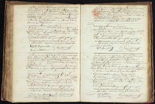 en Dertienden dy de Waard Septembervan het Jaar Achttien honderd dertien ten twaalfen op den midag ACTE van Overlijden van Hendrik Byderwieder overleden den twaalfden dezer tentien ure, des avords. d drie kwaat Jaren, wonende en overleden koote blekerspas buiten roampoort, van beroep 64 Jun 57 geboren te Amsterdam, zoon van Barend Hendrik Bijderwiede, en Anna sen„ driea van Dinteren „ Op de verklaring van bovengeweede Vader van de overledene, oud twee en twintig Jaren, wonende als boven 8,dan beroep Molenaars knegt en van Wouter van Dinteren Grood vader van de overledene, oud zeven en Veertig Jaren, wonende al. boven n 22 van beroep schuijtenvoerder Na mijne voorlezing geteekend door de gemelde getuigen Bevestigde ingevolge de Wet, door mij ondergeteekend erzit ten jande Adjunct-Maire, Ambtenaar van den Burgerlijken Stand. J:B: H. Byderweede ten San de W. v dinteren Den Dertienden dag der Maand September an net Jaar Achttien honderd dertien ten twaalfe, op de middag. eTEiN Overlijden van Maria veertruda Schouten verleden, den twaalfden dezer ten Een tie, des nogts an twee en Een half Jaren, wonende en overeder aan derstolen de spoor by de, van beroep- Uetreekse poort & 108e Cant 9 geboren te amsterdam, dogter van Hendrik Schouten en Alida ezina Binhout. Op de verklaing van bovengemelde Vader van de overledene, oud Vyftig Jaren, wonende abs boven „ van beroep Molenaarsbaas en van Willem Binhout Oom van de overledene, oud Eenen vijftig Jaren, wonende Warmoesstraat n 77. van beroep PinnenPietersbaas Na dijne voorlezing geteekend door de gemelde getuigen. Bevestigd) ingevolge de Wet, door mij ondergeteekende serrit ten lande Adjunct-Maire, Ambtenaar van den Burgerlijken Stand. F Schouten Wm Benhou „ ten Sande Den Dertienden dag der MaandeSeptember van het Jaar Achttien honderd dertien ten Twaalfse, op den middag. ACTE van Overlijden van Anna Margaretha van Mauris „ overleden den twaalfden dezerten twee ue, des nagts oud drie Jaren, wonende en overleden op het water N20 Cantn 4, van beroep geboren te Amsterdam, dogter van Justus van Manrik en Jeannewa Cathatina de Haas Op de vidag van boven gemelde d vader van de overledene, oud Een er Veertig Jaren, wonende als boven van broep Koopman en van Lutger Hoijman keef van de overledene, oud negenendertig Jaren, wonende lingel bij blaauwbuligwal n 320. van berop Makelaar Na mijhe voorlezing geteekend door de gemelde getuigen. Bevestigd, ingevolge de wae door mij ondergeteekende Gerrit ten ande Hqunct-Maire, Ambtenaar van den Burgerlijken Stand. Jistut van MarrkGansande Rutgerstoijmen Den Dertienden dag der Maand September van het Jaar Achttien- honderd dertien ten twaalf ue, op den metg, ACTE van Overlijden van Cornelis Schouten overleden den zlfden dezer ten Elf ure, des morgens oud twe en veertig Jaren, wonende en overleden Nieuwe Lojerstraat Autters hofje, n, van beroep antv 3 eboren en Amsterdam, gehuwd met Meijntje ter Wierik: zoon van wylen Ferdinand schuuten en Johanna Maria In de winkel op de verklaring van Nicolaas Ketelhoed bekende van de overledene, oud Een en Veertig Jaren, wonende Nieuwe Logerstraat 42— van beroep Aanspreker— tn van Hendrik Clausing bekende van de overledene, oud Een en veertig Jaren, wonende als boven n 34 van beroep een Na mijne voorlang geekend door de gemelde getuigen Bevestigd, ingevolge de Wet, door mij ondergeteekende Gerrit ten Lande Adjunct-Maire, Ambtenaar van den Burgerlijken Stand. Ns. Ketelhou ten Sande H: Clanving