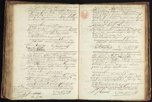 overleden den vyftienden dezer ten vier ure, des middege oud zeventig Jaren, wonende en overleden Utrechtsedwarg straat n 69 Santo 3, van beroep geboren te 6 Huissem gehuwd met Everardus Schut dogter va wylen Pieter Huijsman en Oetje Martensen. Op de verklaring van bovengemelde man van de overledene, oud vier en zeventig Jaren, wonende als boven , van beroep Sjouerman en van Anthonie terntz bekenden van de overledene, oud sen en twintig Jaren, wonende als boven n 74 van beroep zadelmaker koogt Na mijne voorzing geteekend door de gemelde toede getuigen alzo de renste versdoarden niet te kunnen schrijven. Bevestigde ingevolge de Wet, door mij ondergeteekende Gerrit ten dvar Jan de Adunct-Maire, Ambtenaar van den Burgerlijken Stand. de Du Sande Veeft Sotrat. C. Gerritz Den sertienden dag der Maand September van het Jaar Achttien honderd dertien ten glff ure voor den viidag ACTE van Overlijden van Aaltje Kout overleden den vijftienden dezer ten tweeure, des middag oud twee Jaren, wonende en overleden Oostenburgergragt „