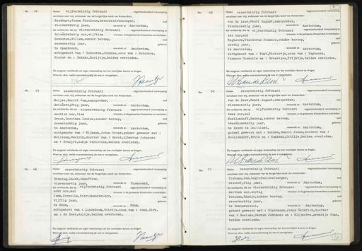 geboren tweeënzeventig jaar, te Essen in Duitsland,, wonende te Amsterdam, gehuwd geweest met : Gulden, Daniel Johan,dochter van 1 Moellenhoff, Fritz en : Kunhenn, Ottilie,beiden overleden. De aangever verklaarde uit eigen wetenschap van het overlijden kennis te dragen. Waarvan akte welke overeenkomstig de wet is voorgelezen. Guaui van de Aor No. 48 Heden zesentwintig februari negentienhonderd vierenzestig, verscheen voor mij, ambtenaar van de burgerlijke stand van Amsterdam: Bruning, Jacob,chauffeur, oud wonende te Purmerend, vierendertig jaar, die verklaarde, dat op vijfentwintig februari negentienhonderd vierenzestig te acht uur,nul minuten, in de gemeente Amsterdam is overleden. Jonk, Cornelis,fabrieksarbeider,