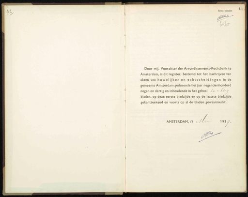 Stadsarchief Amsterdam, archieftoegang 5009, Archief van de Burgerlijke stand, inventarisnummer 6565, Huwelijken en echtscheidingen, Akten, Registers van huwelijksakten en echtscheidingsakten, deel 42
