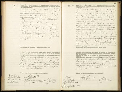 No. 47 Heden zes Decembir negentienhonderd negenendertig verschenen voor mij, Ambtenaar van den Burgerlijken Stand van Amsterdam, ten einde een huwelijk aan te gaan: Piets Hendrik Willem Frederik, ruiteninzetter, geboren en wonende alhier, oud zeven entwintig jaar, meerderjarige zoon van Piets, Antoon, oud - vijfenzeventig jaar, zonder beroep, wonende alhier en: van Putten, Frederika, overleden en Nonnekens Petronella, zonder beroep, geboren en wonende allier,- oud vijfen dertig jaar, meerderjarige. dochter van: Nonnekens; Herman Berghart, overleden en: Swart, Catharina Hendrina, zonder beroep, wonende alhier. De vader zes bruide goms verklaarde mij toestemming tot dit huwelijk te geven De afkondiging tot dit huwelijk is onverhinderd geschied, alhier Bruidegom en bruid verklaarden mij, elkander aan te nemen tot echtgenooten en getrouwelijk alle plichten te zullen vervullen, welke door de wet aan den huwelijken staat zijn verbonden. Daarop heb ik, in naam der wet, verklaard, dat zij door het huwelijk aan elkander zijn verbonden. Als getuigen waren tegenwoordig: Piets, Adrianus Johannes, broeder des bruidegoms chauffeur, oud tweeën vyftig jaar, wonende alhier en Non- nekens Abraham, broeder der bruid, boekhouder, oud negen en dertig jaar, wonende te Haarlem Waarvan akte, welke overeenkomstig de wet is voorgelezen. No. 48 25 Heden zes December negentienhonderd negen en dertig verschenen voor mij, Ambtenaar van den Burgerlijken Stand van Amsterdam, ten einge een huwelijk aan te gaan: Roorda, Renze, brievenbesteller geboren en wonende alhier, oud dertig jaar, van echt gescheiden echtgenoot van van Gaalen, Egberdina, meerderjarige zoon van Roorda, Renze, overleden en: Timmer, Cornelia, zonder beroep, wonende alhier en van Gaalen, Egberdina zonder beroep, geboren en wonende alhier, oud negen en twintig jaar, van echt gescheiden echtgenoote van: Roorda Renze, meerderjarige dochter van: van Gaalen, Jan, oud negenenvyftig jaar —, koopman en: Mante. Cornelia, ou acht en vijftig jaar, zonder beroep, beiden wonende alhier. De ouders der bruid verklaarden mij toestemming tot dit huwelijk te geven, Het vorig huwelijk tus- Twerd alhier vol schen bruidegom en bruid trokken op acht entwintig Mei negentienhonderd een en dertig De afkondiging tot dit huwelijk is onverhinderd geschied, alhier Bruidegom en bruid verklaarden mij, elkander aan te nemen tot echtgenooten en getrouwelijk alle plichten te zullen vervullen, welke door de wet aan den huwelijken staat zijn verbonden. Daarop heb ik, in naam der wet, verklaard, dat zij door het huwelijk aan elkander zijn verbonden. Als getuigen waren tegenwoordig: van Gaalen, Cornelis Hendrikus, broeder der bruid, kantoor bediende, oud een en dertig jaar en Roorda, Bertus, broeder des bruidegoms, winkelbediende oud drie en twintig jaar, beiden wo nende alhier. Waarvan akte, welke overeenkomstig de wet is voorgelezen. Peet A P. W. V. Piets I Nonnekens Diegeent J Oerteeg Aets Olefgeg B Roorda B. Roort J Oerteeg. C van Gaalen J Van Gaalen 3 Mante