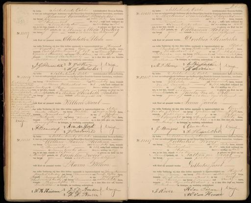 No. 12127 Op heden Achtentwintig Oetober Achttienhonderd Zeven-en-Tachtig, is voor ons ondergeteekende Ambtenaar van den Burgerlijken Stand der Gemeente Amsterdam, verschenen: Johannes Gerardus Bruseker van beroep Timmerman oud achten dertig Jaren, wonende HoutmanKade No. 103, welke heeft verklaard dat op zesentwintig deeer des voormiddags ten Zes ure, in het huis, staande als broen is geboren een Kind van het vrouwelik geslacht, uit Maria Alida Versteeg van beroep geen wonende als boven; zijne Echtgenoot welk Kind zal genaamd worden Elisabeth Alida van welke Verklaring wij deze Akte hebben opgemaakt in tegenwoordigheid van Hermanus Versteeg van beroep geen oud achtenviftig Jaren, wonende Oude Zydsvoorburgwal 293 en van Theodorus Johannes Gerardus Brusker van beroep Htandelaar oud veertig Jaren, wonende Frans Halsshaat 67 en is deze Akte door ons, benevens Den Vaderen de Getuigen, na voorlezing onderteekend. J G Bruseker H Verttin Driesen 3 H JG Bruscker No. 12133 W.811 Op heden Achtentwintig October Achttienhonderd Zeven-en-Tachtig 3 is voor ons ondergeteekende Ambtenaar van den Burgerlijken Stand der Gemeente Amsterdam, verschenen: Martinus Franciscus Thomasvan beroep Timmerman oud Eenen dertig Jaren, wonende Tuinstraat No. 49, welke heeft verklaard dat op Zevenentwintig dezer des na middags ten acht ure, in het huis, staande als boven,, is geboren een Kind van het houwelijk geslacht, uit Catharina Hobijn van beroep geen wonende als boven, zijne Echtgenoot welk Kind zal genaamd worden Dorothea Hendrika van welke Verklaring wij deze Akte hebben opgemaakt in tegenwoordigheid van Elder Brinkdupke van beroep Kistenmaker oud vijfen dertig Jaren wonende Westerstraat 26 en van Hendricus Severin van beroep Schoenmaker oud Zevenen dertig Jaren, wonende Tuinstraat 58 en is deze Akte door ons, Benevens Ten Vaderen de Getuigen, na voorlezing onderteekend. 2 Een Brinkdupke. M. F. Thomag Driessen H severin No. 12120 Dit kind is door Willem Karel Petri en Maria Elirabeth in Bakker, volgens uit treksel uit het Huwelijks register. der Gemeente Haarlem bij huwelyk aldaar tusschen hen voltrok ken op 22 Augustus 1800 negen en tachtig voor het hunne erkend. en tachtig. Amsterdam 29 Augustus 1800 negen Driessen Op heden Achtentwintig October Achttienhonderd Zeven-en-Tachtig, is voor ons ondergeteekende Ambtenaar van den Burgerlijken Stand der Gemeente Amsterdam, verschenen: Francina Baasdorp. van beroep vroedvrouw oud vierendertig Jaren, wonende Nieuwe Willemstraat No. 6, welke heeft verklaard dat 1d „in haar bijzijn op Heden des voor middags ten Twee ure, in het huis, staande Lindengracht 284 is geboren een Kind van het Aannelijk geslacht, uit Maria Elizabeth Bakker r van beroep geen wonende Lindengracht 284 rlam rar trok welk Kind zal genaamd worden Willem Karel stus chter an welke Verklaring wij deze Akte hebben opgemaakt in tegenwoordigheid van ulonie enBiesterveld van beroep Kkruier oud Vijftig Jaren, van der Horst van beroep Winkelier oud negenen Veertig Jaren, wonende Boomstraat 7 en van Johannes negen wonende Prinsenstraat 20 en is deze Akte door ons, benevens De aangeefsteren de Getuigen, na voorlezing onderteekend. F Baasdorp 2. A van der Horst Drcessen 3 J Biesterveld No. 12135 Op heden Achtentwintig Oetbir Achttienhonderd Zeten-en-Tachtig, is voor ons ondergeteekende Ambtenaar van den Burgerlijken Stand der Gemeente Amsterdam, verschenen Gerardus Bongers van beroep Schilder oud negenendertig Jaren, wonende Van der Duimstraat No. 18, welke heeft verklaard dat op Heden des vermiddags ten Een ure, in het huis, staande als boven is geboren een Kind van het Vrouwelijk geslacht, uit Jacoba van der Pol van beroep geen wonende als boven zijne Echtgenoot welk Kind zal genaamd worden Anna Jacoba van welke Verklaring wij deze Akte hebben opgemaakt in tegenwoordigheid van Gerrit van der Maas van beroep werkman oud Tweeenvijftig Jaren, wonende, Gebed zonder End 6 en van Johannes Heijnricks van beroep steenhouwer oud dertig Jaren, wonende Egelantiersstraat 236 en is deze Akte door ons, benevens DenVaderen de Getuigen, na voorlezing onderteekend. G. Bongers E Gaander Maar Dreessen 3 S HenuChs No. 12131 Op heden Achten twintig October Achttienhonderd Zeven-en-Tachtig is voor ons ondergeteekende Ambtenaar van den Burgerlijken Stand der Gemeente Amsterdam, verschenen: Willem Harm Heidema van beroep Timmerman oud vierendertig Jaren, wonende Marnixstraat No. 263, welke heeft verklaard dat op Zevenen twintig dezer des voormiddags ten Vijf ure, in het huis, staande als boven is geboren een Kind van het kannelijk geslacht, uit Cornelia Zwier van beroep geen wonende als boven zijne Echtgenoot welk Kind zal genaamd worden Harm Willem van welke Verklaring wij deze Akte hebben opgemaakt in tegenwoordigheid van Johanjjes Francisca Josephus Amsen,, van beroep Timmerman oud zevenen vijftig Jaren, wonende Begijnenhofstegg 3 en van Heimanus Hendricus Amsen, van beroep Timmerman oud achtentwintig Jaren, wonende Begijnenhofsteeg 10 en is deze Akte door ons, benevens DenVaderen de Getuigen, na voorlezing onderteekend. Driessen W H Heidema 2 J: F: H Amsen n H 3 R.R. Amsen No. 12137 Op heden. Achtentwintig Ctober Achttienhonderd Zesven-en-Tachtig , is voor ons ondergeteekende Ambtenaar van den Burgerlijken Stand der Gemeente Amsterdam, verschenen: Lubbertus Weven van beroep werkman oud Eenen dertig Jaren, wonende Barentsz straat No. 56, welke heeft verklaard dat op Heden des voormiddags ten acht ure, in het huis, staande als boven is geboren een Kind van het Mannelijkgeslacht, uit Aaljen van Drag van beroep geen wonende als boven, zijne Echtgenoot welk Kind zal genaamd worden Lubbertus Jacob. van welke Verklaring wij deze Akte hebben opgemaakt in tegenwoordigheid van Hendrik van Jareen van beroep werkman oud drieenzestig Jaren wonende Eerste Lindendwarsstraat 2 en van Willem van Henne van beroep Zeeman oud veertig Jaren wonende van Heemskerlkstraat1 en is deze Akte door ons, benevens sen vaderen de Getuigen, na voorlezing onderte