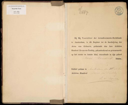 Stadsarchief Amsterdam, archieftoegang 5009, Archief van de Burgerlijke stand, inventarisnummer 830, Geboorten, Akten, Registers van geboorteakten, 1887, deel 11