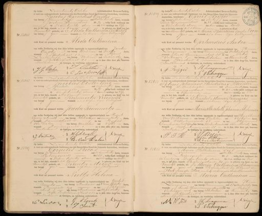 No. 12043 Op heden Zesentwintig October Achttienhonderd Zeven-en-Tachtig, is voor ons ondergeteekende Ambtenaar van den Burgerlijken Stand der Gemeente Amsterdam, verschenen: Jacobus Gerardus Instee van beroep Diamantslijker oud achtentwintig Jaren, wonende Jacob van Lennepstraat No. 29, welke heeft verklaard dat op zesentwintig dezer des voormiddags ten Vijf ure, in het huis, staande als boven is geboren, een Kind van het vrouwelik geslacht, uit Alida Catharina Lucherhof. van beroep geen wonende als boven zijne Echtgenoot welk Kind zal genaamd worden Alida Catharina van welke Verklaring wij deze Akte hebben opgemaakt in tegenwoordigheid van Jacobus Onstee van beroep werkman oud zestig Jaren, wonende Slootstraat 12 en van Garel Luckerhof van beroep werkman oud zesenzestig Jaren, wonende Bilderdijkstraat 81 en is deze Akte door ons, benevens Denvaderen de Getuigen, na voorlezing onderteekend. J. G. Onster 2I Onstee Driessen 3 C Lweserh No. 12049 Op heden zesentwintig October Achttienhonderd Zeven-en-Tachtig 5 is voor ons ondergeteekende Ambtenaar van den Burgerlijken Stand der Gemeente Amsterdam, verschenen: Gerrit Rrijger 50: 4 van beroep Metselaar oud dertig Jaren, wonende Tweede Spaarndammerstraat No. 33/wekke heeft verklaard dat op vierentwintig dezer des voor middags ten achturen ure, in het huis, staande als boven is geboren een Kind van het Mannelijk geslacht, uit Anna Francina van der Voorn van beroep geen wonende als bouwe zijne Echtgenoot, welk Kind zal genaamd worden Gerhardus Anton van welke Verklaring wij deze Akte hebben opgemaakt in tegenwoordigheid van Herman Zwagerman van beroep Timmerman oud achtentwintig Jaren, wonende Eerste Spaarndammerstraat 25 en van Petert verbruggen van beroep Mletselaar oud Eenendertig Jaren wonende Koestraat 6 en is deze Akte door ons, benevens Den Vaderen de Getuigen, na voorlezing onderteekend. A Kijger 2 H Zwagerman Driessen 3 Verbruggen No. 12045 Op heden Zesentwintig October Achttienhonderd Zeven-en-Tachtig, is voor ons ondergeteekende Ambtenaar van den Burgerlijken Stand der Gemeente Amsterdam, verschenen Jacobus Oosterling van beroep Binkelier oud vijfenderttig Jaren, wonende Caureergracht No 14, welke heeft verklaard dat op Vierentwintig dezer des voormiddags ten Vif ure, in het huis, staande als boven is geboren een Kind van het Vrouwelijk geslacht, uit Kommertje Vreeswyk van beroep geen wonende als boven zine Echtgenoot welk Kind zal genaamd worden Jacoba Kommertje van welke Verklaring wij deze Akte hebben opgemaakt in tegenwoordigheid van Hendrik Georg Arnold van beroep slikslager oud Tweeenveertig Jaren wonende Laureerstraat 5 en van Benerdus van Dalen van beroep winkeleer oud vijftig Jaren, wonende Laurengracht 1 en is deze Akte door ons, benevens Den Videren de Getuigen, na voorlezing onderteekend. 2 H Getrnoli Driessen 1J. Oosterlin 3 B. Voor Dalen No. 12051 Op heden Zesentwintig October Achttienhonderd Deten-en-Tachtig is voor ons ondergeteekende Ambtenaar van den Burgerlijken Stand der Gemeente Amsterdam, verschenen: Petrus Johannes Hendricus Warnier van beroep Meubelmaker oud EenenVeertig Jaren, wonende Saenrdapnstraat No. 42, welke heeft verklaard dat op vijfentwintig, zezer des voormiddags ten Vier ure, in het huis, staande als boven, is geboren een Kind van het vouwelijk geslacht, uit Cuzabet Maria Frangois van beroep geen wonende als bovene zijne Echtgenoot welk Kind zal genaamd worden Maria Elisabeth Johanna Alnhonsio van welke Verklaring wij deze Akte hebben opgemaakt in tegenwoordigheid van Pelrus Johanne van Velthooven van beroep winkelier oud vijftig Jaren wonende Wittenburgergracht 35 en van Hendricus Ceervlus van Velthoover van beroep Kantoorbediende oud drieentwintig Jaren, wonende Wittenburgergracht 35 en is deze Akte door ons, benevens ZenVaderen de Getuigen, na voorlezing onderteekend. Driessen Warnier P J H P:J. van Vlthoon 3H6. O. thaoren No. 12047 Op heden Zesen twintig October Achttienhonderd Zeven-en-Tachtig is voor ons ondergeteekende Ambtenaar van den Burgerlijken Stand der Gemeente Amsterdam, verschenen Cornelis Lucas van beroep steenhouwer oud zesen dertig Jaren, wonende Linbaansgracht No 268, welke heeft verklaard dat op Drie en twintig dezer des voormiddags ten acht ure, in het huis, staande als boven is geboren een Kind van het vouwelijk geslacht, uit Teuntje Meijel van beroep geen wonende als boven zijne Echtgenoot welk Kind zal genaamd worden Neeltje Helena van welke Verklaring wij deze Akte hebben opgemaakt in tegenwoordigheid van Gijsbert Barends van beroep steenhouwer oud vierentwintig Jaren, wonende Rouengracht 194 en van Johannes Smit van beroep steenhouwer oud vijfndertig Jaren, wonende Korte Leidschedwarsstraat 283 en is deze Akte door ons, benevens Den Vasteren de Getuigen, na voorlezing onderteekend. Aeessen Borends 14 Lucob J. J Smit No. 12053 Op heden Zesen twintig Octber Achttienhonderd Zeven-en-Tachtig is voor ons ondergeteekende Ambtenaar van den Burgerlijken Stand der Gemeente Amsterdam, verschenen Maria Wilhelmina Tei van beroep Vroidvrouw oud achten Veertig Jaren, wonende Loviersgracht No. 5, welke heeft verklaard dat in haar bijzijn op Drieen twintig dezer des na middags ten zes ure, in het huis, staande Passeerderstraat 63 is geboren een zjnd van het Vrouwelijk geslacht, uit Maria Catharina Schuurman van beroep, geen wonende Passeerderstraat 63. Echtgenoot van Dirk van der Star, van berop verker van den Hlandel, wonende als de moeder afwerend. welk Kind zal genaamd worden Maria Catharina van welke Verklaring wij deze Akte hebben opgemaakt in tegenwoordigheid van Heimen Zwagerman van beroep Timmerman oud Achtentwintig Jaren, wonende Eerste Shaarndammerstraat 25en van Peter Verbruggen van beroep illetselaar oud Eenendertig Jaren wonende Boestraat6 en is deze Akte door ous, benevens Deaangegsteren de Getuigen, na voorlezing onderteekend Driessen NK W Tee 2 H Zwayerman 3 S Verbruggen