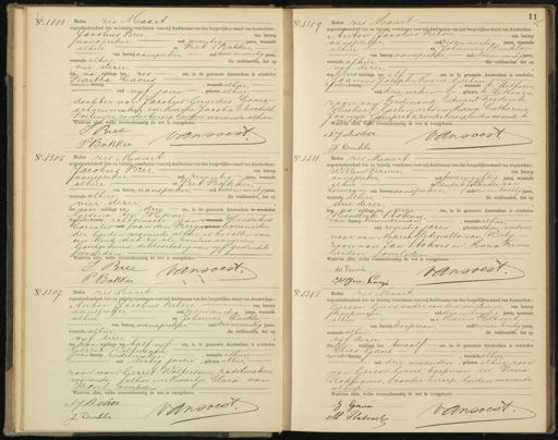 dochter van Jacobus Gerardus Caous, schoenmaker en Maria Jacob a Elisabeth Poelenjee zonder beroep, beiden wonende alhier Waarvan akte, welke overeenkomstig de wet is voorgelezen. mee vansoest VV P Bakker No. 1309 Heden zes Maart negentienhonderd drie en twintig verschenen voor mij Ambtenaar van den burgerlijken stand van Amsterdam; Anton JJacobus Belser, van beroep aanspreker, oud zes en veertig jaren, wonende en Johannes Dinkla, alhier. van beroep aanspreker oud drie en veertig Jaren, wonende alhier. die verklaarden, dat op — vijf dezer dennamiddags ten elf ure, in de gemeente Amsterdam is overleden Joannes Joseph Marie Geelen zonderderden oud drie weken, geboren te Uithoorn wonende te Uithoorn, zoon van Ferdinand Eduard Frederik Hubert Geelen, arts en Maria Catharina Joanna Gompertz, zonder beroep beiden wonende te uit Waarvan akte, welke bvereenkomstig de wet is voorgelezen. vansoest. AAJ Beter. No. 1303. Heden zzes Maart negentienhonderd drie en twintig verschenen voor mij Ambtenaar van den burgerlijken stand van Amsterdam: van beroep Jacobus Bee, Jaanspreker, oud zeventig jaren, wonende en Piet Bakker aihier van beroep aanspreker, oud twee en veertig Jaren, wonende alhier, die verklaarden, dat op vier dezer des voor middags ten drie ure, in de gemeente Amsterdam is overleden Gesina ten Holve zonder beroep, echtgenoote van, wonende Hendrikus Cornelis oud van den Berg, geboren boerenarbei„ der, beiden wonende alhier, is bevallen van een kind dat zij als levenloos aangeven, Goedgekeurd de doorhaling van vijf gedrukte woorden Waarvan akte, welke overeenkomstig de wet is voorgelezen.- vansoest. J Briel P Bakker