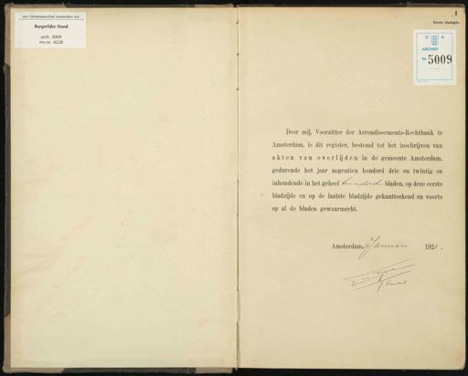 Stadsarchief Amsterdam, archieftoegang 5009, Archief van de Burgerlijke stand, inventarisnummer 4228, Overlijdens, Akten, Registers van overlijdensakten, 1923, deel 3