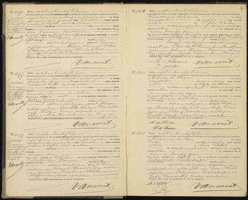 No. 1195. „ is door Renvooien de doorhaling van vijf en twintig gedruk te woorden goedgekeurd. Vansoest Heden acht en twintig Februari negentienhonderd drie en twintig verschenen veor mij Ambtenaar van den burgerlijken stand van Amsterdam; ingeschreven een uittreksel uit het register van beroep overlijden der gemeente oud Castricum jaren, wonende „waaruit blijkt, dat en aldaar jaren.
