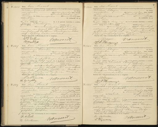 No. 1255 Heden twee Maart negentienhonderd drie en twintig verschenen voor mij Ambtenaar van den burgerlijken stand van Amsterdam: Willem Frederik Willems, van beroep aanspreker, oud vier en zeventig jaren, wonende en Hendrik Johannes van afhier hoevezijn, van beroep aanspreker, oud een en tachtig jaren, wonende alhier. — die verklaarden. dat op een dezer des na middags ten zeven ure, in de gemeente Amsterdam is overleden Lansje Steenbergen,— zonderdgroep, , wonende alhier, oud een en zeventig jaren, geboren te Deventer, weduwe van Gerrit Jan Meenhorst, dochter van Johannes Lutherus Steenbergen en Antonia van Nijburg, beiden overleden. Waarvan akte, welke overeenkomstig de wet is voorgelezen. W F: Willems Vansoest H Jvene Leveen 1261. Heden drie Maart negentienhonderd drie en twintig gerschenen voor mij Ambtenaar van den burgerlijken stand van Amsterdam Willem Schagen, van beroep aanspreker, oud zesen veertig jaren, wonende alhier en Hendrik Antonius Pendavingh van beroep aanspreker, oud zevenenvijftig jaren, wonende alhier. die verklaarden, dat op twee dezer des na middags ten drie ure, in de gemeente Amsterdam is overleden Cornelis van bagelen, van beroep bankwerker, wonende alhier oud een en veertig jaren, geboren te Nieuwkuijk, echtgenoot van Alida Jacoba Rogenhop van echt gescheiden echtgenoot van Cecilia Agnes Mertens zoon van Cornelis van Eggelen en Tiliana. van der Ten, beiden overleden. Waarvan akte, welke overeenkomstig de wet is voorgelezen vansoest WVshorgen H.A Dina No. 1257 Heden twee Maart negentienhonderd drie en twintig verschenen voor mij Ambtenaar van den burgerlijken stand van Amsterdam: van beroep Paulus van Francker,— aanspreker, oud een enzeventig jaren, wonende alhier en Hendrik Spiegelberg,van beroep aanspreker oud achtenvijftig jaren wonende alhier die verklaarden, dat op zeven en twintig Februari laatstleden des voor middags ten half vijf ure, in de gemeente Amsterdam is overleden ietje Maria van der Meulen , wonende alhier tzinde bertin oud drie en tachtig jaren geboren te Harlingen, weduwe van Jan Hartsuiker, eerder weduwe van Pieter WVestra dochter van Baukevan der Meulen en Trijntje van Kampen,beiden overleden. Waarvan akte, welke overeenkomstig de wet is voorgelezen. vansoest P. v Ranoxn H Spiegelber No. 1263 Heden drie Maart negentienhonderd drie en twintig verschenen voor mij Ambtenaar van den burgerlijken stand van Amsterdam; Willem Schagen, van beroep aanspreker, oud zes en veertig jaren, wonende en Hendrik Antonius alhier. Pendavinghvan beroep aanspreker, oud zevenenvijftig jaren wonende alhier — die verklaarden, dat op — — twee dezer des na middags ten ten Jare, in de gemeente, Amsterdam is overleden Woudina Elisabeth Struylaart, zonder beroep,, wonende alhier oudnegen maanden, geboren alhier, dochter van Egbert Struijlaart, werkman en Maria Woudina Elisabeth Muilenburg, zonder beroep, beiden wonende alhier. Waarvan akte, welke overeenkomstig de wet is voorgelezen. vonoest WWSchorgen H. A Pendavingh. No. 1259 Heden drie Maart negentienhonderd drie en twintig verschenen voor mij Ambtenaar van den burgerlijken stand van Amsterdam, Cornelis Antonius Snel, van beroep aanspreker, oud twee en veertig jaren, wonende en Hendricus Holleman, alhier. van beroep aanspreker, oud vijf en veertig jaren wonende alhier. die verklaarden, dat op zeven en twintig Februari laatstleden, des vpor middags, ten vijf ure, in de gemeente Amsterdam is overleden Anna Adriana/ Snieder zonder beroep, echtgenoote van wonende Andries van Deijl oud schauffeur, beiden geboren wonende alhier, is bevallen van een kind dat zij als levenloos aangeven Goedgekeurd de doorhaling van vijf gedrukte woorden. Waarvan akte, welke overeenkomstig de wet is voorgelezen. Snel vansoest H Holleman No. 1265 Heden vijf maart negentienhonderd drie en twintig verschenen voor mij Ambtenaar van den burgerlijken stand van Amsterdam, Emanvel Agsteribbe, van beroep 2 venter oud vier en twintig jaren, wonende alhier en Simon Wijnschenk oud vijff enzestig jaren van beroep bode, wonende alhier die verklaarden, dat op — drie dezer des md middags ten elf ure, in de gemeente Amsterdam is overleden Simon Samson stern, wonende alhier tzonderderoepoud zes enzestig jaren, geboren te Kampen, echtgenoot van Rebekka Cracau, zoon van Timson Jacob Stern en BetjeHendel Vos eiden overleden.Waarvan akte, welke overeenkomstig de wet is voorgelezen. Vansoest En. Agsterehbe S. Wymenen