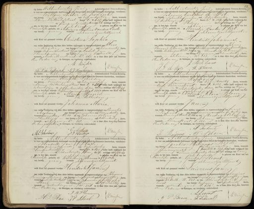 Driessen 3 G Op heden Achtentwintig Juni Achttienhonderd Twee en-Zeventig, is voor ons opdergeteekende Ambtenaar van den Burgerlijken Sand der Gengente Amsterdam, verschenen: Johannes Gerardus de Wit van beroep Lchachtenmaker oud zesentwintig Jaren, wonende Buurt W No. 224, welke heeft verklaard dat Pachtergracht zn gbodeng o0 n ntn op Hieden, des voor middags ten vijf wre, in het huis, staande hannelijke geslacht, uit Marretje vander Vliet. van berolg geen wonende alebooen zijne Echtgenoot.- welk kind zal getaamd worden Hendrik Johannes. van welke Verklaring wij deze Akte hebben opgemaakt in tegenwoordigheid van Johans Bernard Kleene van beroep schuitenvoerderoud zevenentwintig Jaren, wonende Achtergracht W. 224, en van Hendrik Kleenen van beroep koopman oud drieendertig Jaren wonende Calsboven, W. 223, en is deze Akte door ate beneven, den vader en de betuigen, na voorlezing onderteekend. J B Kleene Driessen Z de Wet H. Kleene. Op heden Echtentwintig Curii. Achttienhonderd Twee-en-Zeventig is voor ons ondergeteekende Ambtenaar van den Burgerlijken Stand der Gemeente Amsterdam, verschenen: Maria Elisateth Schride 1 van beroep vroedvrouw oud zesenveertig Jaren, wonende Kleine Wittenburgerstraat Buurt t No 254. welke heeft verklaard dat in haarbijzijn opvijfentwintig dezer des voormid dags ten halfvijf ure, in het huis, staande Niguliendimmer Grachtjet. 831,is geboren een Kind van het rouwelijke geslacht, uit Maria Henpis, van beroepgeen wonende te Rotterdam welk Kind zal genaamd worden Johanna Maria van welke Verklaring wij deze Akte hebben opgemaakt in tegenwoordigheid van Cornelis