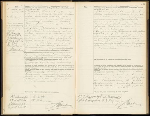 H Kroope C J A Möller JDentaan O:J A Voet A L „ PC de Boom JMMarten Heden eenendertig December negentienhonderd veertig Kraake, Hendrikus Spoorweg verschenen voor mij, Ambtenaar van den Burgerlijken Stand van Amsterdam, ten einde een huwelijk aan te gaan: arbeider, geboren te Zwalle wonende alhier oud zes en twintig Jaar. meerderjarige zoon van: Kraake Dammert, overleden. en Duitman Janna, zonder beroep, wonende te Ewolle, en Moller, Christina Johanna Agatha, zonder beroep, geboren alhier, wonende te Huizen oud een en twintig jaar, meerderjarige dochter van: Möller, Ferdinand Carel, arbeider, en: Voet Christina Johanna Agalha, oud vijf en vijf: tig jaar. zonder beroep, beiden wonende alhier. Dom des bruis derden bruwd hebben 9 uit huwelijk verlee herzzieke akten. De moeder id verklaarden mij toestemming tot dit huwelijk te geven. De afkondiging tot dit huwelijk is onverhinderd geschied, alhier en le Huizen en te Hilversuen De vader der bruid heeft toestemming verleend bij authentieke akte Bruidegom en bruid verklaarden mij, elkander aan te nemen tot echtgenooten en getrouwelijk alle plichten te zullen vervullen, welke door de wet aan den huwelijken staat zijn verbonden. Daarop heb ik, in naam der wet, verklaard, dat zij door het huwelijk aan elkander zijn verbonden. Als getuigen waren tegenwoordig: Koterij, Louis koopman, oud negen en veertig jaar. en: de Boom, Pieter Centen reiziger, oud vier en vijftig jaar beiden wonende alhier Waarvan akte, welke overeenkomstig de wet is voorgelezen. No. 16 Heden eenendertig December negentienhonderd veertig. verschenen voor mij, Ambtenaar van den Burgerlijken Stand van Amsterdam, ten einde een huwelijk aan te gaan: Hartwijk, Johannes Jacobus, kellner, geboren te 's Gravenhage, wo¬ nende alhier, oud een en zestig jaar. weduwnaar van, Hanshande, Gerarda, meerderjarige zoon van: Harswijk, Albert, en: van Hees, Maria Catharina Christina beiden overleden, en, Koopmans, Johanna Idolphina sophia, confectie kleedingnaaister geboren en wonende alhier oud zes en veertig jaar, weduwe van: Maas, Johannes Nicasius Marie meerder jarige dochter van: Koopmans Harmen, en: Pelsma, Trijntje beiden overleden. De afkondiging tot dit huwelijk is onverhinderd geschied, alhier Bruidegom en bruid verklaarden mij, elkander aan te nemen tot echtgenooten en getrouwelijk alle plichten te zullen vervullen, welke door de wet aan den huwelijken staat zijn verbonden. Daarop heb ik, in naam der wet, verklaard, dat zij door het huwelijk aan elkander zijn verbonden. Als getuigen waren tegenwoordig: Koopmans Anna Wilhelmina, Zuster der bruid naaister, oud twee en vijftig faar en: Koopmans Hendrika Geertrinda, Zuster der bruid zonder beroep, oud vijftig jaar beiden wonende alhier Waarvan akte, welke overeenkomstig de wet is voorgelezen. 6 L Exeen H. Kraake D0 E JA Möller J de Bo 1 Duitman tMaatene C. J. A Voet J: Hartryh D. Hoopman J. A. L Koopmans J G. Koopmeers Naakiecen