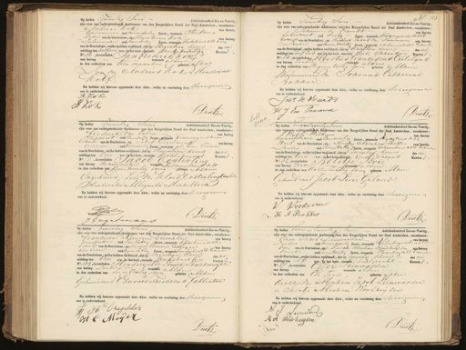 Op heden Twintig Jann Achttienhonderd Zes en-Veertig zijn voor ons ondergeteekende Ambtenaar van den Burgerlijken Stand der Stad Amsterdam, verschenen: Andries Kok van beroep tommerman oud tweeendertig Jaren, wonende stukking Vader van de Overledene, en Harmanus Kok van beroep Lalenmaker oud vierendertig Jaren, wonende dykstraat 412 boon van de Overledene, welke hebben verklaard, dat op negentien dezer des na middags ten half een ure, in het huis, saande tiereneeentestig Kanton 1 No. 16 weouiden worende aldaar Jan Frederik Kok van beroep— in den ouderdom van tien maanden geboren alhier oor van Andries Kok en Hendrina Kolf En hebben wij hiervan opgemaakt deze Akte, welke na voorlezing door deze geven ons is onderteekend. A. Kol A Kok Deui Op heden Twintig Juni Achttienhonderd Zesen-Veertg, zijn voor ons ondergeteekende Ambtenaar van) den Burgerlijken Stand der Stad Amsterdam, verschenen: Johannes de guendt van beroep fabrikant oud dertig Jaren, wonende srinsengrachtt N 108 bekende van de Overledene, en Hendrik Jacob van Sommenn van beroep 1 zonder oud tweeen veertig Jaren, wonende als boven W 101 btanile van de Overledene, welke hebben verklaard, dat opachttien derr des na middags ten half zes ure, in het huis, staande Oude Schans Kanton 1 No. 23, is overleden Albertus Franciscus Canelyns van beroep zonder wonende aldaar in den ouderdom van Negenen zestig Jaren geboren Alhier Weduwenaar van Johanna Catharina Bakker. En hebben wij hiervan opgemaakt deze Akte, welke na voorlezing door de aangever in ons is onderteekend. Joz=s de Vrierde H J van Tomminck Deutz 1 7 Op heden Twint zijn voor ons ondergeteekende Ambtenaar van den Burgerlijken Stand der Stad Amsterdam, verschenen: Frederik van Lalm van beroep Iuphoort oud Een dertig Jaren, wonende binnengasthuis bekende van de Overledene, en Iozes Gagelmans van beroep bediende oud tweeenveertig Jaren, wonende als boven bekende van de Overledene, welke hebben verklaard, dat op negentien deuii des na middags ten vies ure, in het huis, staande Rchterburgwal Kanton 1 No., is overleden Jacob Costering van beroep schonmaker, wongnnde Lins annestraat N 30 in den ouderdom van vieren twintig jaren geboren Alhier Ongehuwd, zoon van Klaas Oosterling Ooerleden Hendirika Allegonda Merkelbach En hebben wij hiervan opgemaakt deze Akte, welke na voorlezing door de aangever en ons is onderteekend. GJul C Deutz J Gagetmans tweentwintig zijn voorpas ondergeteekende Ambtenaar van den Burgerlijken Stand der Stad Amsterdam, verschenen: Wolp voorkem van beroep diamantslatie oud Eenen veertig Jaren, wonende Ryksteaat 1 62 nerf van de Overledene, en Hartoj Abraham Partje van beroep Landir oud drieen vyftig Jaren, wonende betaventrand 3124 bekende van de Overledene, welke hebben verklaard, dat op twintig ders des na middags ten tien ure, in het huis staande Oud Schans Kanton 1, No. 42, is overleden Blieije Levie van beroep zonder wonende aldaar in den ouderdom van achtentwintig jaren geboren Alhur Oehuwd met Jacob Levie Geleerd En hebben wij hiervan opgemaakt deze Akte, welke na voorlezing door de aangeven ons is onderteekend. W: Wookever „ H A Parsser Dent op heden twintig Juni Achttienhonderd Zes-en-Veertig, zijn voor ons ondergeteekende) Ambtenaar van den Burgerlijken Stand der Stad Amsterdam, verschenen: Franciscus Raverius Dreschler van beroep danspreker oud vienen Vaftig Jaren, wonende Kigkstraat 11 112 bekende van de Overledene, en Harmers Coenraad Meyjervan beroep als boven oud negenenvyftig Jaren, wonende voorLeghoost 7k bekenden van de Overledene, welke hebben verklaard, dat op negenigen den des na middags ten vier ure, in hethuis, staande Kerfstraat Kanton 2 No. 149, is overleden Renderijela Louisa Linckmeijer van beroep zouder wonende Aldaar in den onderdom van Zes en veertig jaren geboren Nomuii Gehuwd met Eduvard Theodorus Jallenten En hebben wij hiervan opgemaakt deze Akte, welke na voorlezing door de aangevere ons is onderteekend. H H Orejcler H C Meyer Dutz Op heden tweeen twintig Juni Achtienhonderd Zesen-Veertg, zijn voor ons ondergeteekende Ambtenaar van den Burgerlijken Stand der Stad Amsterdam, verschenen: Ciron Jacob Leeuworden van beroep zonder oud tweienventig Jaren, wonende vlilenburgerstraat 85 oon van de Overledene, en Mareds Abraham Woudhuijten van beroep mid oud zevenentwintig Jaren, wonende Vloogenburg N 38 bekende van de Overledene, welke hebben verklaard, dat op twintig den des na middags ten elf ure, te het huis, staande houtgracht Kanton 1. No. 2, is overleden Eyter eenwarden van beroep wonende aldus in den ouderdom van Een jaar geboren alhier dochter Van Abraham Jacob Leeuwarden En Sientje Abraham Boudhrij ter En hebben wij hiervan opgemaakt deze Akte, wolke na voorlezing door de vangevegen ong is onderteekend. P:J Leeuwerde M A Woudhuysen Dert