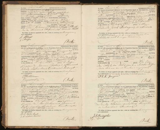 Op heden Twee Mer Achttienhonderd Zes-en-Veertig, zijn voor ons ondergeteekende Ambtenaar van den Bargerlijken Stand der Stad Amsterdam, verschenen: Abraham Albregt van beroep schilder oud drieendertig Jaren, wonende paffeerdid Straat 257 Depper van de Overledene, en Gerrit Molin van beroep med oud Vyfnocuten Jaren, wonende Kantenstaal W80 buur van de Overledene, welke hebben, verklaard, dat op tan dezer des na middags ten half vif ure, in het huis, staande Sartenstraat Kanton 3, No. 34, is overleden Hendrik Hofman van beroep kuipen knecht wonende alsaar in den ouderdem van veertig Jaren geboren alhier, Gehuwd met Anna Maria Albregt Jaan van Hermanus Hofman n Wijl Hendrica Kavel En hebben wij hiervan opgemaakt deze Akte, welke na voorlezing door de aangeven ons is onderteekend. A Albregt G Molyn Deutz Op heden Twee Mei Achttienhonderd Zesen-Veertig zijn voor ons ondergeteekende Ambtenaar van den Burgerlijken Stand der Stad Amsterdam, verschenen: Abraham Rodriguir du Mercado van beroep zonder oud tweenviftig Jaren, wonende Keskstraat W3 Jarn van de Overledene, en Jicob Cveiia an beroep diermaker oud dertig Jalen, wonende als boven W 27 Kleinzoon van de Overledene, welke hebben verklaard, dat op Een dezel des na middags ten elf Jare, in het huis, staande Weesperstraat Kanton 1. No. 36, is overleden Grazia Strael Hicardo van beroep Donk wonende Aldari in den ouderdom van zesentachtig Jaen geboren Ahue Weduw van Jacob Rodriquez du Mercado En hebben wij hiervan opgemaakt deze Akte, welke na voorlezing door: ons is onderteekend Verklaren de de aangevien wegens dus Sabbath niet te mogen schunn.- Deutje twee Mei Achttienhonderd Zes-en-Veertig zijn voor ons ondergeteekende Ambtenaar van den Burgerlijken Stand der Stad Amsterdam, verschenen: Pieter Kolterman van beroep zonder oud diieendertig Jaren, wonende in den graaht N9 bekende van de Overledene, en Jan Jaqugret van beroep banketbakaes oud egenntwintig Jaren, wonende botermankt 37 bekende van de Overledene, welke hebken verklaard, datop Een derse des no middags ten half vijf ure an het huis, sande Kaserne Ovanje Hessamdonh No, is overleden Aletta Ciasina Angenita Kloek, van beroep — 1 wonende Aldaar in den ouderdom van veertien deken geboren te Losser. Dochtir van Johannes Theodorus Harmanus Kloek„ Sophia Anna Geertruida verburgt En hebben wij hiervan opgemaakt deze Akte, welke na voorlezing door de aangevenen ons is onderteekend. P Holterman Jaguemit Deutz Op heden twee MMei Achtienhonderd Zes en-Veertg, zijn voor ons ondergeteekende Ambtenaar van den Burgerlijken Stand der Stad Amsterdam, verschenen: Eyk van Wildermg van beroep Tjouwari oud achtentwintig Jaren, wonende tanuntraat 16 van de Overledene, en Jan Erst Karel Jurgen van beroep Sjouwer oud zes endertig Jaren, wonende als boven, gang 1 van de Overledene, welke hebben verklaard, dat op reden des voor middags ten vier ure, in het huis, staande Caurierstraat Kanton 4 No. 6, is overleden — van beroep wonende in den ouderou geboren Een loop Van Ryk van Wildernis, en Jacoba Visser Wilk kind aan ons als tevenlaar es eengegeven En hebben wij hiervan opgemaakt deze Akte, welke na voorlezing door een dee vanschend ons is onderteekend Verklarende de andere niet te kunnen shindend de doorhaling van veertien gedrukte woorden, goedkeuren I: E: K: Jurgen Dutzo. — Op heden twee Mei Achttienhonderd Zes en-Veertig, zijn voor ons, ondergeteekende Ambtenaar van den Burgerlijken Stand der Stad Amsterdam, verschenen: Partholomeus Joannes lylenbroek van beroep beblardmaker oud veertig Jaren, wonende Sterfhuis Vader van de Overledene, en Johen Wilhelm Schiskermer van beroep schoenmaker oud vierentwintig Jaren, wonende hot Jansbraat 1138 bekende van de Overledene, welke hebben verklaard, dat op vertig centst des na middags ten zes ure, in hethuis, staande, binnen amstelvanton 2 No. 79, is overleden Theodora Cornelia Maria Elytenbroek van beroep wonende Aldaa in den ouderdom van Een Jaar geboren afthui dochter van Bartholomius Joannes Uytenbroek Magdalena Geertruyde Jacoba Welserduk En hebben wij hiervan opgemaakt deze Akte, welke na voorlezing door de aangeven en ons is onderteekend. B: T: Hytentraok I. W. Schimstermer Deutz: Op heden twee Mui Achtienhonderd zesen-Veetig, zijn voor ons ondergeteekende Ambtenaar van den Burgerlijken Stand der Stad Amsterdam, verschenen: Johannes Anthuny Handfelder van beroep Werkman oud zesentijtig Jaren, wovende stughuis tide van de Overledene, en Frederik Joeree van beroep Vinker oud Een dertig Jaren, wonende Weteringstraas ng bekende van de Overledene, welke hebben verklaard, dat op een dezisdes voor middags ten acht ure, in het huis, saande Neuwe meynstraat Kanton 3 No. 10 is overleden Frans Hendrik Handfelder van beroep wonende Ardaad in den ouderdom van Negen maanden geboren Alhus Iaan van Johannes Anthony Handfelder en Bardina Sandrok En hebben wij hiervan opgemaakt deze Akte, welke na voorlezing door de aangevenen ons is onderteekend. J: A: Hundselder Gourl . Deutz.