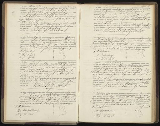 M. A yzer JhW. Op heden Zes Juny Achttienhonderd Twee en-Zestig is voor ons ondergeteekende Ambtenaar van den Burgerlijken Staad der Stad Amsterdam, verschenen: Johannes Petrus Bonnenn. van beroepsjouwer oud acht endertig Jaren, wonende bloemstraat Barnt 22, No. 187. en Catharina Adriana Gaukstert, geen beroep, oud achten dertig Jaren, wonende bloemstraat DD1.190 welke oud hebben verklaart bij deze te erkennen een kind van het Vrouwelyke geslacht, geboren op drie entwintig Maart 1800 negen en vyftig in de ze Gemeente ingeschreven in het Geboorte Register No 2 f.o 133 Vouder den naam van Anna Margaretha als Kind van Catharina Adriana Gaukstert van welke Verklaring wij deze Akte hebben opgemaakt, in tegenwoordigheid van Maxamiliaan Boekelkamp van beroep schuitenvoerder oud twee en veertig Jaren, wonende Eerste Kopendustraat E4, 83 en van franciuus Gerardus Hermanns Kok van beroep yzerdraager oud Vyfentwintig Jaren, wonende bloemsraat D8 /187. En is deze akte door ons, benevens den Eersten Komparant en de Getuigen, na voorlezing, onderteekend kunnende de tweede Komparant nietschryven, J P. Poknesen Een M: Boekelkanp 92 VK Op heden Zes Juny Achtienhonderd Twee en Zestig is voor ons ondergeteekende Ambtenaar vanden Burgerlijken Staud der Stad Amsterdam, verschenen: Johannes Petrus Bohnenn, van beroep sjouwer oud achtendertig Jaren, wonende bloemstraat Buurt 28 No. 187. en Catharina Adriana Gaukstert, geen beroep, oud achtendertig Jaren, bloemstraat DD 190 wonende welke ons hebben verklaard bij deze te erkennen gen kind van het Mannelike geslacht, geboren op Een April 1800 zesenvyftig in de ze Gemeente ingeschreven in het Geboorte Register No 2fo 183 oude den naam van Petrus Johannes als Kind van latharina Gaukstert van welke Verklaring wij deze Akte hebben opgemaakt, in tegenwoordigheid van Nrimiliaar Boekelkamp van beroep schuiteevoerder oud tweeenveertig Jaren, wonende Eerste Rozendestraat El 83 en van francischt Gerardus Hermanus Kok van beroep ijzerdraaier oud Vyfentwintig Jaren, wonende blomstraat DD 187. En is dete akte door ond benevens den Eersten Komparant, en de Getuigen, na voorlezing, onderteekend kunnende de tweede Komparant nietschryven J: I Bohnenn M: Boekelkamp 19 F G H Kok Op heden Zes Achttienhonderd Zweeendertig, d h a verschenen: Johannes Peirus Sohnenn van beroep Ljauwer oud achtendertig Jaren, wonende Bloemstraat Buurt D8 No. 187 en Catharina Adriana Gaukstert, geen beroep, oud achtendertig Jaren, wonende bloemstraat DD 190. welke ops chebberg verklaard bij deze te erkennen een kind van het Mannelijk geslacht, geboren op Twee Augustus 1800, lenentesti in de ze Gemeente ingeschreven in het Sehoorte Negister No 5 f.o 10 Vonder den naam van Johannes Petrus de Kind van Catharina Adriana Gaukstert. van welke Verklaring wij deze Akte hebben opgemaakt, in tegenwoordigheid van Marimbaar Fekelkamp van beroep schuitenvoerder oud twee en veertig Jaren, wonende Eerste Hozendastraat El. 83. en van francischs Gerardus Hermanus Kok, van beroep yzer draager oud Vyfentwintig Jaren, wonende bloemstraat D0/ 187. En is deze Akte door ond benevens den Eersten omparant en de Getuigen, na voorlezing, onderteekend kunnende de tweede komparant nietschryven J P. Bohnenn M: Boekelkamp CG e FG H Kok