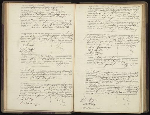 Op heden Achttien October Achttienhonderd Twee enZestig, is voor ons ondergeteekende Ambtenaar van den Burgerlijken Stand der Stad Amsterdam, verschenen: Klaas Beuker van beroep marinier oud Eenendertig Jaren, wonende te Helvaeksluis Buart 6 en Johanna Catharina Wasselioud dertig Jaren, geen beroep, wonende prinsengracht W. 717 welke oud hebben verklaard bij deze te erkennen een kind van het Vrouwelyke geslacht, geboren op negentien february 1800 Eenentestig in de ze Gemeente100 ingeschreven in het Geboorte Register No 2 f15 oude den naam van Elisabeth Clasina de Kind van Johanna Catharina Warsilli van welke Verklaring wij deze Akte hebben opgemaakt, in tegenwoordigheid van Adolf Huyter van beroep timmerman oud zevenenvyftig Jaren, wonende kanriegstraat ff 77. en van Andries Bernardus Verfst van beroep schilder oud tweeenzestig Jaren, wonende Kozenstraat El 447. En is deze Akte door op benevens de Komparanten. en de Getuigen, na voorlezing, onderteekend K Beuver 6 19 J C Warsili A Huyser MW 24 Op heden Drieentwintig October Achttienhonderd Twee en-Zestig, is voor ons ondergeteekende Ambtenaar vn den Burgerlijken Stand der Stad Amsterdam, verschenen Wilhelmus Filippus Linnekampvan beroep koper gieter oud vierentwintig Jaren, wonende klwchtenburgerstraat Buurt N No. 290. en Maria Magdalena Tieken, geen beroep. oud twee en twintig Jaren, wonende als boven welke ons hebben verklaard bij deze te erkennen een kind van het nauwelyke geslacht, geboren op Een february 1800 Een en zestig in deze Gemeente ingeschreven in het Geboorte Register No 1 fo 435 onder den naam van Wilhelmus Frederik, als Kind van Maria Magdalina Tieken van welke Verklaring wij deze Akte hebben opgemaakt, in tegenwoordigheid van Antonie Johannes Tieke van beroep goudsmid oud Vyfen veertig Jaren, wonende KlWittenbijstraat F 269 en van Johannas Grieven van beroep kopergieter oud Eenenveertig Jaren, wonende als bovem P 287. En is deze Akte door ond, benevens den Eersten komparant en de Getuigen, na voorlezing, ponderteekend kunnende de tweede Comparant niet schryven W F Linnekamp 6 A. J. Tieke E9 J Greever 2 Op heden Eenen twintig October Achtienhonderd Dreeenzestig, is voor ons ondergeteekende Ambtenaar van den Burgerlijken Stand der Stad Amsterdam, verschenen: Alsje Wassink. van beroep geen oud negen en veertig Jaren wonende Sindenstraat Buur pNNo. 703. welke oud heeft verklaard bij deze te erkennen een kind van hetrouwelijke geslacht, geboren op Twee entwintig January 1800 Vier en dertig in de - Gemeente Doesborghingenchteven in het Geboorte- Register aldaar ouder den naam van Jansjen als Kind van Glsker Wassink van welke Verklaring wij deze Akte hebben opgemaakt, in tegenwoordigheid van franciscu kotweg van beroep vroodbakker oud Vyfenveertig Jaren, wonende piester Jacobstraat A. 208.- en van Shristian Diedich van beroep als boven oud vyftig Jaren, wonende als boven a. 208. En is deze Aate door de benevens te en de Getuigen, na voorlezing; onderteekend. Verklarende de Komparant niet te kunnen schryven goedgekeurd de doorhaling van twee gedrukte woord I Sot Wey. 1 l19 C Driul Op heden Drieentwintig Oetaler Achtienhonderd Dwee-en-zetig, is voor ons oudergeteekende Ambtenaar van den Burgerlijken Stand der Stad Amsterdam, verschenen: Dirk Mreijer van beroep slijter oud zevenenveertig Jaren, — wonende navoorburgwal Buur 9 No 95. welke op hueft verklaad bij deze te erkennen een kind van het Vrouwelijke geslacht, geboren op drie Mei 1800 drie endertig in de Ze Gemeente ingeschreven in het Geboorte-Register 41 f: D101 ouder den naam van Wilhelmina Fredrika als Kind van Wilhelmina Nolting: - Zynde de moeder Willemina Fredrika Nolting den zestien September 1800 vier en vyftig alhier overleden van welke Verklaring wij deze Akte hebben opgemaakt in tegenwoordigheid van Willem Conneman van beroep bediende oud tweeendertig Jaren, wonende Ozachterbywal B 34 en van Henrich olff van beroep geen oud Eenenzestig Jaren, wonende byde hoogerstraat GG 464, En is deze afte door ons, benevens deKomparant. en de Getuigen, na voorlezing onderteekend 6 D. Meijer 19 Tervolg W: Lourenan