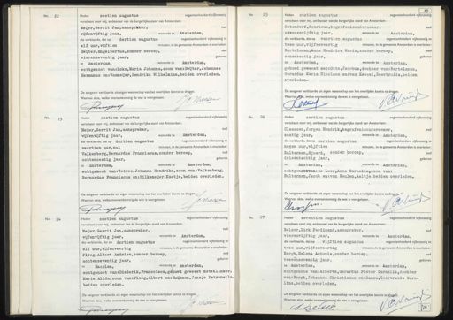 No. 22. Heden zestien augustus negentienhonderd vijfenzestig verscheen voor mij, ambtenaar van de burgerlijke stand van Amsterdam: o Meijer, Gerrit Jan,aansprkker, vijfenvijftig jaar, wonende te Amsterdam, die verklaarde, dat op dertien augustus negentienhonderd vijfenzestig te