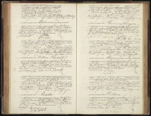 Op hedennegen entwintig sentemberecndtienhonderd Vier-en-Zestig, is voor ons ondergettekende Ambtenaar van den Burgeijken Stand der HAmsterdam, verschenen Cornelis Hendrikus van To van beroep derecteur oud veertig Jaren, wonende hauriergracht, Buurt 1 No 305, welke heeft verklaard dat op Achtentwintig dezer des voor middags ten Vier ure, in het huis staande als boven is geboren een Kind, van het hunnelijke geslacht, uit Anna Engelberta Catharina Willenborg van beroep geen wonende als bovenzine Echtgenoot, welk Kind zal genaamd worden Aljihonsus Joannes. van welke Verklaring wij deze Akte hebben opgemaakt in tegenwoordigheid van Anthanius Hensmans van beroep winkelier oud zevenenviftig Jaren, wonende Nieuwmarkt K 264 en van Gerardus Johannes franciscus Grijer van beroep poortier oud drieendertig Jaren, orende, Chauriergracht ff 310. - en is deze Acte door afs, benerens den vaderen de Getuigen, zawoorlezing onderteekend J CH Van Tor 19 x J JF Grijer 1 Op heden negenentwintig September Achttienhonderd Vier-en-Zestig, is voor ons ondergeteekende Ambtenaar Van den Burgerlijken Stand der Stad Amsterdam, verschenen: Johann Heenrich Wilhelm Baptist Schneider van beroep kleereaker oud achtendertig Jaren, wonende St Nicolaarstraat. - Buurt H. No. 423., welke heeft verklaard dat op Zevenentwintig dezer des namiddags ten zes po in het huis, staande als boven is geboren een kind van het rouwelyke geslacht, uit Gerridina Hannessen. van beroep geen wonende als boven zine Echtgenoot. 1 welk Kind zal genaamd worden ermina Gerarda van welke Verklaring wij deze Akte hebben opgemaakt in tegenwoordigheid te Gerardus boep, van beroep akhuisknecht oud Eehendertig Jaren, wonende Noorderstraat da4sten ven Hendrik Johannes geenhuyzeng van beroep kleeremaker oud veertig Jaren wonende Suikerbakkerssteeg H. 527, en is deze Akte door Kut, berovens den Vader in de Getuigen, na worlezing onderteekend, Peg Zo/ H: W B Schneurr V Van Geer hui VO Op heden Negenentwintig Septemberntienhonderd Vier-en-Zestig is voor oud ondergeteekende Ambtenaar van den Burgerlijken Stand, der Stad Amsterdam, verschenen Charles François VViertz. van beroep bediende oud vifendertig Jaren, wonende Bloemstraat Buurt DD No. 320, welke heeft verklaard dat op negenentwintig dezere voormiddags tenhalftien ure, in het huis, staande Lalsboven is geboren een kind van het hannelyke geslacht, uit Armiliatatharina Elisabeth zoman van beroep geen wonende als boven; zyne Echtgenoot. welk kind zal genaamd worden Willem Hendrik van welke Verklaring wij deze akte hebben opgemaakt in tegenwoordigheid van Wilhelmus Henricus Wiertz van beroep knoenmaker oud drieentwintig Jaren, wonende Lauriersstraat El5t van Franciicus Douwer. van beroep schuifenvoerder oud drieentwintig Jaren, wonende, als boven ff 105, en is deze akte door ous benevens den Vvader en de Getuigen, na voorlezing onderteekend C Seewrent WH Wiertz F Dourl tig Op heden Dertig September Achtienhonderd VierenZestig is voor ons ondergeteekende Ambtenaar van den Burgerlijken Stand der Stad Amsterdam, verschenen: Joannes Franciscus Peeters van beroep bediende oud achtenvijftig Jaren, wonende Lindengracht Buurt 7ep No. 381, wekke heeft verklaard dat op achtentwintig dezer des na middags ten halftes ure, in het huis, staande als boven geboren een kind van het — Mannelyk geslacht, uit Christina Sara Westenberg van beroep gien wonende,als boven, zijne Echtgenoot.- welk Kind zal genaamd worden Aloysius Joannes Franciscus van welke Verklaring wij deze akte hebben opgemaakt in tegenwoordigheid van Girrit Kahr van beroep winkelier oud zesenzestig Jaren, wonende bindengracht pp 1060 van Frederik van dertindin van beroep choenmaker oud vierentwintig Jaren wonendeEgelantiersstraat Nn 200.- en is deze Akte door ons huterene den vader en de Getuigen, na voorlezing onderteekend. 9 F.F. Peeters G: Kut tig Z0 randestinden Op heden negenentwintig Sentember Achttienhonderd Vieren-Zestig, is voor ons ondergeteekende Ambtenaar van den Burgerlijken Stand A Stad Amsterdam, verschenen Mozes Samuel Slot. van beroep winkelier oud negenendertig Jaren, wonende Jadenbreedstraat Bt 19 No. 259, vdet heef verslaard dat op achtentwintig dezer des middags ten twaalf ure, in het huis, staande als bbovens geboren een Kind van het Vrouwelijke geslacht, uit Geertruida Praag¬ van beroep geen wonende als bovens zyne Echtgenoot. welk Kind zal genaamd worden Bosette. van werke Verklaring wij deze Akte hebben opgemaakt in tegenwoordigheid van Wolf Mozes Kampier van beroep dam, slijper oud vierenviftig Jaren, wonende Jodenbreedstraat 9.259 en van Marcus Meyer Mejuist van beroep bankehbakker oud tweeenvijftig Jaren, 177 wonende Chalsteeg A. 211 en is deze Akte door ons, benevens den Vader en de Getuigen, na voorlezing onderteekend. Muslel 9 WV.M Lampee tig Mo M: Menst Op heden Dertig September Achttienhonderd VierenZestig is voor ons opdergeteekende Ambtenaar van den Burgerlijken Stand der Stad Amsterdam, verschenen: Willem Scheepmaker van beroep scheepstimmerman oud vierenveertig Jaren, wonende haarlemmerplein Buurt U4 No. 803, wenke heeft verklaard dat op negenentwintig dezer des namiddags ten tien ure, in het huis, staande als boven is geboren een kind van het „ Mannelijke geslacht nt Dina Marthing van beroep geen wonende als boven, zijne Echtgenoot. welk Kind zal genaamd worden Willem van welke Verklaring wij deze Akte hebben opgemaakt in tegenwoordigheid van EverJacobus Abelaar van beroep apper oud vifenverrtig Jaren, wonende nieuwmarkt.376, en van Jacob Cornelis kaan van beroep werkman oud dertig Jaren, wonende,Willemsstraat 99.634, en is deze Akte door op, benevens den Vader en de Getugen, na voorleiidg onderteekend. W schiepmaker E: J: Abelaar O Keg J Kaan