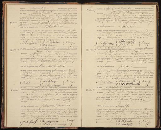 No. 14551 Op heden Achtentwintig December Achttienhonderd Zeven-en-Tachtig, is voor ons ondergeteekende Ambtenaar van den Burgerlijken Stand der Gemeente Amsterdam, verschenen: Pieter van Enter van beroep Bedinde oud vierenveertig Jaren, wonende Saenridamstraat No. 19, welke heeft verklaard dat in zijne woningen zes entwintig dezer des voor middags ten negen ure in het huis, staande als boven19 is geboren een kind van het Mannelijk geslacht, uit Maria Elisabeth Rremer van beroep geen wonende te sGravenhage, Echtgenoot van Jacobus Nicolaas Gerharz, van berop Murieant, wonende als de moeder welk kind zal genaamd worden Wilhelmus van welke Verklaring wij deze Akte hebben opgemaakt in tegenwoordigheid van Jacobus Nicolaas Gerharz van beroep Muriekant oud Drieentwintig Jaren, wonende Samredamstraat 19 en van Hendrik Antoon Traas van beroep Muriekant oud drieentwintig Jaren, wonende Boomstraat 59 en is deze Akte door ons benevens Den aangeveren de Getuigen, na voorlezing onderteekend 1 us Mantiter 2 J. N. Gerharz Dreessen 3 H. Frocv Bd No. 14557 Op heden Achtentwintig December Achttienhonderd Zeven-en-Tachtig, is voor ons ondergeteekende Ambtenaar van den Burgerlijken Stand der Gemeente Amsterdam, verschenen: Jan Hesseling van beroep Loodgieter oud Eenenveertig Jaren, wonende Wolvenstraat No. 5, welke heeft verklaard dat op Vifentwintig dezer des na middags ten negen ure, in het huis, staande als booen is geboren een Kind van het Mannelijk geslacht, uit Francina Johanna Barrelmeijer van beroep geen wonende als boven: zijne Echtgenoot welk Kind zal genaamd worden Adriaan van welke Verklaring wij deze Akte hebben opgemaakt in tegenwoordigheid van Guardus Haselager van beroep Schuitenwerder oud zesen veertig Jaren wonende Singel 332 en van Jacobus Begker van beroep Koopman oud drieenveertig Jaren wonende Binnenkant 25 en is deze Akte door ans, benevens LinVaderen de Getuigen, na voorlezing onderteekend. J. Hesseling LVtvanlagaf Dreessen J Beeken No. 14553. Op heden Achtentwintig December Achttienhonderd Zeven-en-Tachtig is voor ons ondergeteekende Ambtenaar van den Burgerlijken Stand der Gemeente Amsterdam, verschenen: i Jan Lok van beroep Getselaar oud Tweeenveertig Jaren, wonende Nieuwe Loodersdwarsstraat No. 13, welke heeft verklaard dat op Zevenentwintigs dezer des na middags ten zeven is geboren een Kind van het ure, in het huis, staande als boven houwelijk geslacht, uit Johanna Elisabeth Teunissen van beroep geen wonende als boven, zijne Echtgenoot- welk Kind zal genaamd worden Cornelia Engelina van welke Verklaring wij deze Akte hebben opgemaakt in tegenwoordigheid van Barend Knuppe van beroep stoker oud Tweeen dertig Jaren, wonende te Nieuwer Amstel en van Jan Frederik Rappange van beroep Metselaar oudzestig Jaren, wonende Nieuwe Looiersstraat 39 en is deze Akte door ons, benevens DenVaderen de Getuigen, na voorlezing onderteekend. Driessen 2 B Kmuppe JJ: LoR 37 f1 /2 DWng No. 14559 Op heden Achtentwintig December Achttienhonderd Zeven-en-Tachtig is voor ons ondergeteekende Ambtenaar van den Burgerlijken Stand der Gemeente Amsterdam, verschenen: Hendrikus van Bouw van beroep Ambtenaar oud achtendertig Jaren, wonende Quellijnstraat No 153, welke heeft verklaard dat op Vijfentwintig deren des na middags ten Een ure, in het huis, staande als bovens is geboren een Kind van het — Vrouwelijk geslacht, uit Aleida Arnolda Druijf. van beroep geen wonende als bouw zijne Echtgenoot welk Kind zal genaamd worden Jansje van welke Verklaring wij deze Akte hebben opgemaakt in tegenwoordigheid van Harmanu van der Pol van beroep werkman oud achtenvyftig Jaren wonende Prinsengracht 362 en van Cornelis Bultus Hermanus Cante van beroep Bediende oud negenentwintig Jaren wonende Albert Cuijpstraat 19 en is deze Akte door ons, benevens Den Vaderen de Getuigen, na voorlezing onderteekend. HWouw 2 H vander Po Driessen CBH Cante No. 14555 Op heden Achtentwintig December Achttienhonderd Zeven-en-Tachtig, is voor ons ondergeteekende Ambtenaar van den Burgerlijken Stand der Gemeente Amsterdam, verschenen: Johannes de Greep van beroep TTimmerman oud zevenendertig Jaren, wonende erdinand Bolstraat fo. 78, welke heeft verklaard dat op zesen twintig dezer des voor middags ten negen is geboren een Kind van het ure, in het huis, staande als boven Mannelijk geslacht, uit. Anna Maria Seunissen van beroep geen wonende als boven zijne Echtgeniot welk Kind zal genaamd worden Johannes Gerardus van welke verklaring wij deze Akte hebben opgemaakt in tegenwoordigheid van Wilhelmus van Wijngaarden van beroep Timmerman oud dertig Jaren, wonendeAlbert Cuijpstraat 58 en van Pieter Gerrit Remmers van beroep Timmerman oud achtentwintig Jaren, wonende Gooert Flinckstraat 266 en is deze Akte door ons, benevens Den Vaderen de Getuigen, na voorlezing onderteekend. Driessen 2 M.v. Wisngaarden J de Greif P: G Srammeli No. 14561 Op heden Achtentwintig December Achttienhonderd Zeven-en-Tachtig is voor ons ondergeteekende Ambtenaar van den Burgerlijken Stand der Gemeente Amsterdam, verschenen: acob Swaayer van beroep rotter oud zes en Veertig Jaren, wonende Anjeliersstraat No. 163, welke heeft verklaard da op zevenentwintig dezer des na middags ten Vier ure, in het huis, staande als boven is geboren een Kind van het Vrouwelijk geslacht, uit Maria Gerritse van beroep geen wonende als boven zijne Echtgenoot welk Kind zal genaamd worden Engeltje van welke Verklaring wij deze Akte hebben opgemaakt in tegenwoordigheid van Hendrik Bernardus Gerritse van beroep Diamantslijker oud vierentwintig Jaren wonendeTuinstraat 153 en van Thomes van Wijk van beroep geen oud drie enzeventig Jaren, wonende Tuinstraat 196 en is deze Akte door ons, benevens —de Getuigen, na voorlezing onderteekend. De Vader verklaarde niet te kunnen schrijven 2 H. B Gerritse Dreessen 3 T: van Wyk